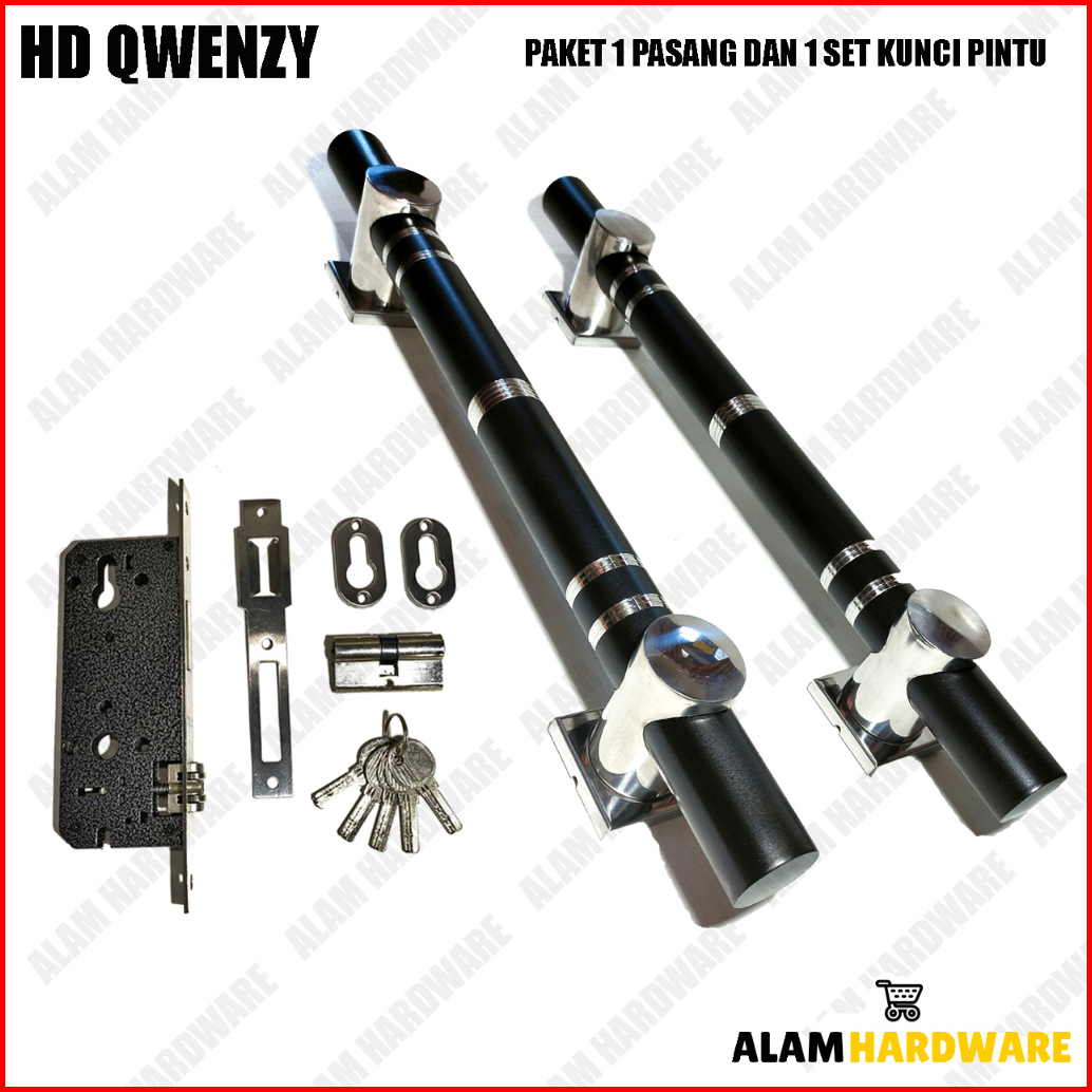 Paket 1 Pasang Dan 1 Bodykunci Alam Hardware Type Qwenzy Hitam 35 Cm 45 Cm Dan 60 Cm Handle Pintu Rumah Tarikan Pintu