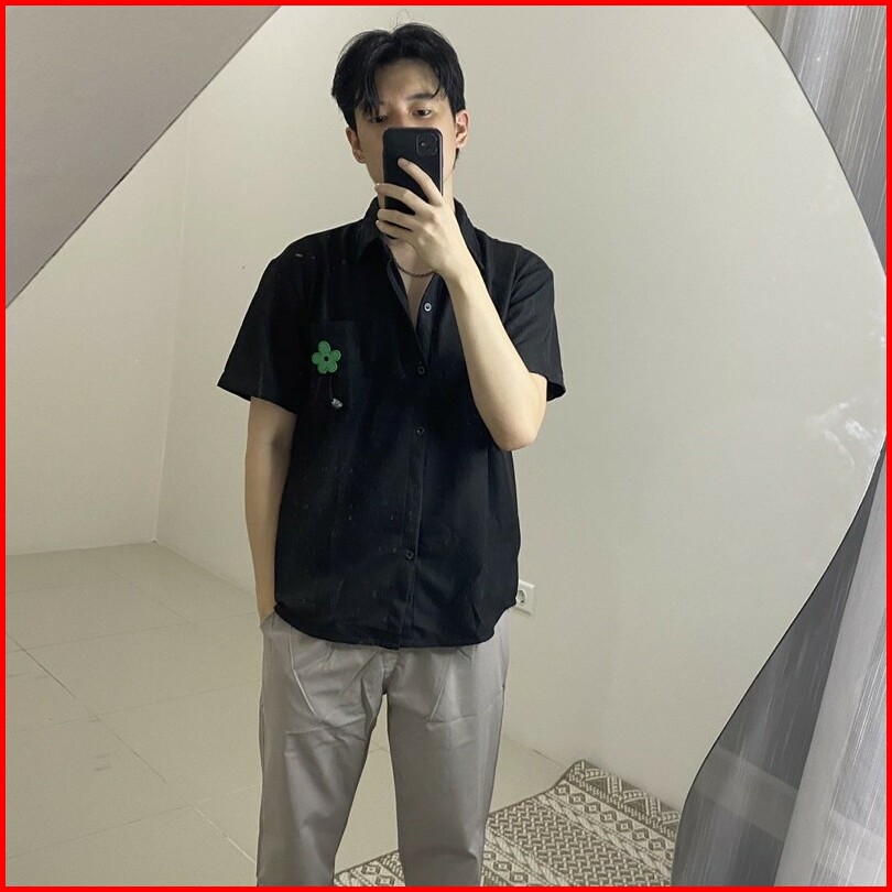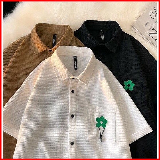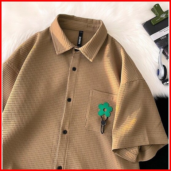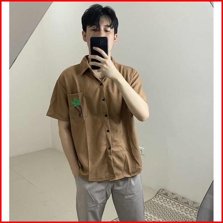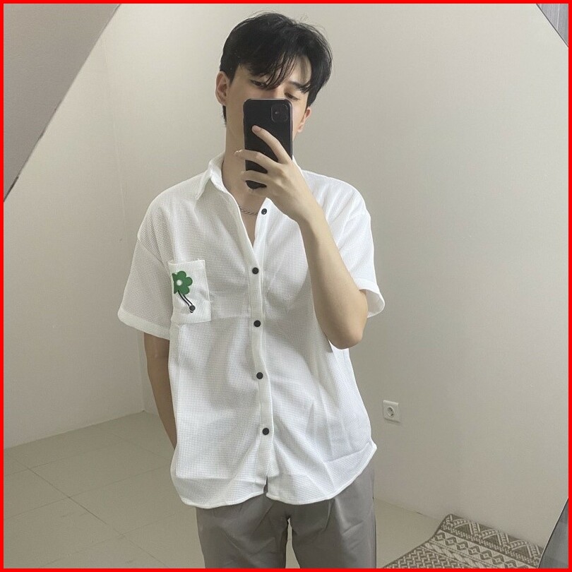 Oversize Waffle Fabric Japanese Korean Style Casual Shirt In White Brown And Black Color - Kemeja Casual Kasual Kemeja L