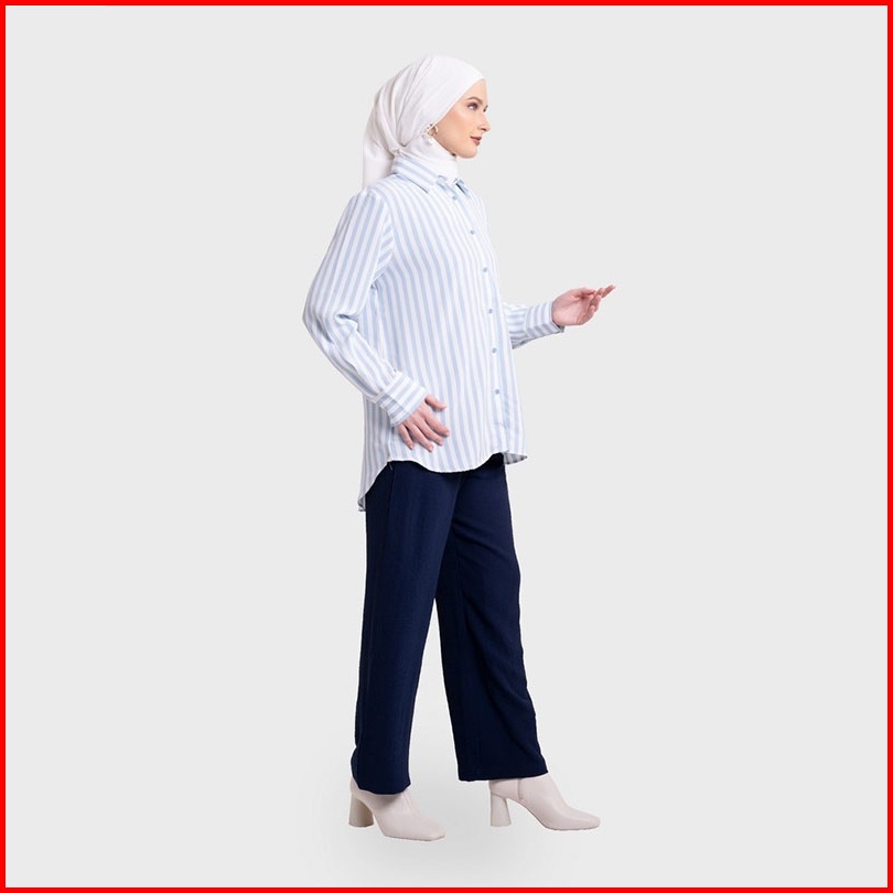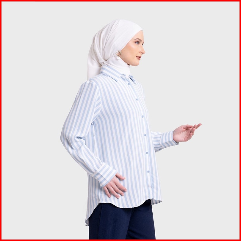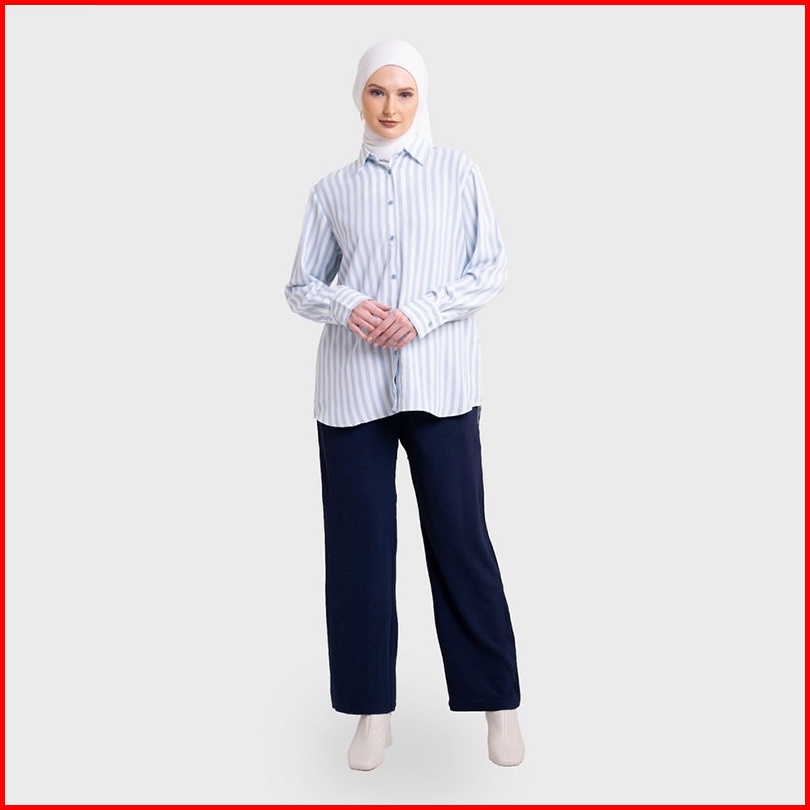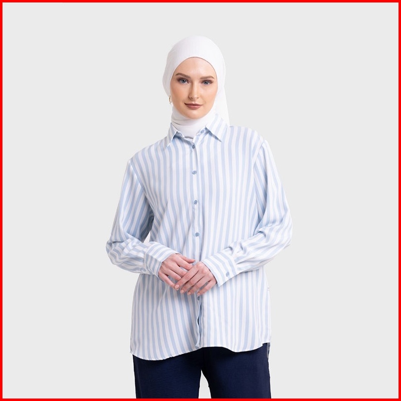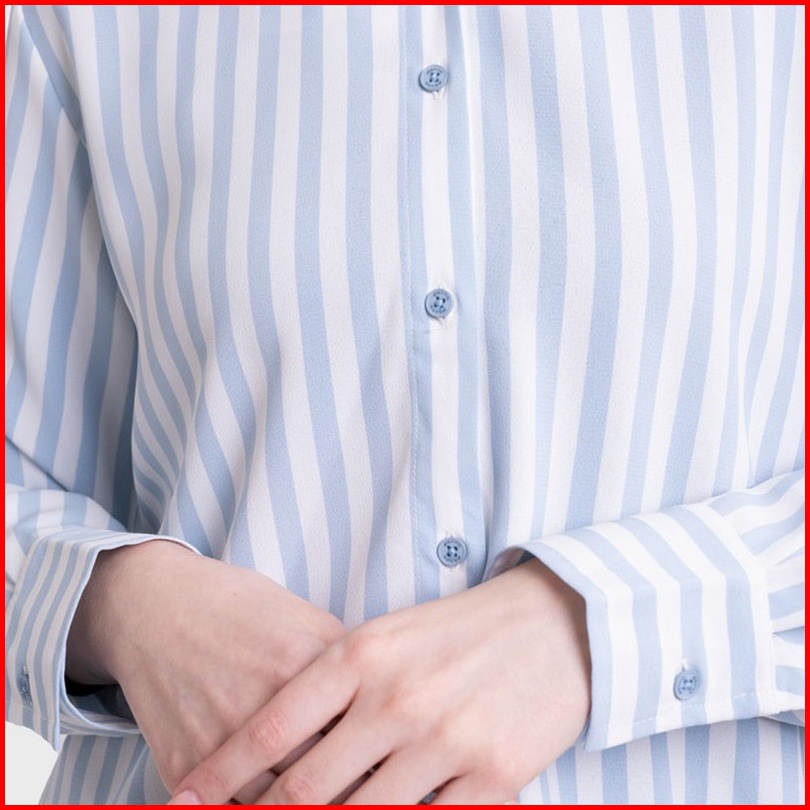 Hanna Kemeja Blouse Stripe Wanita Lengan Panjang Oversize Shirt Josepnine Long Sleeve Satin Atasan Formal Women Tekstur