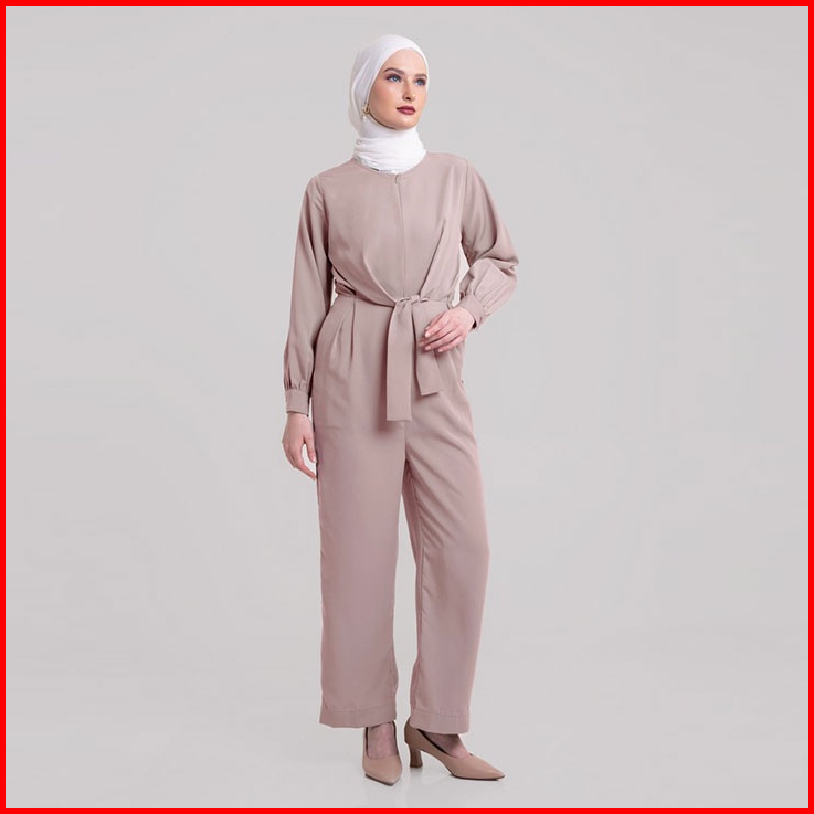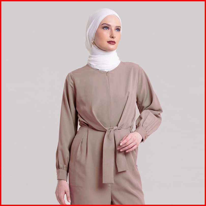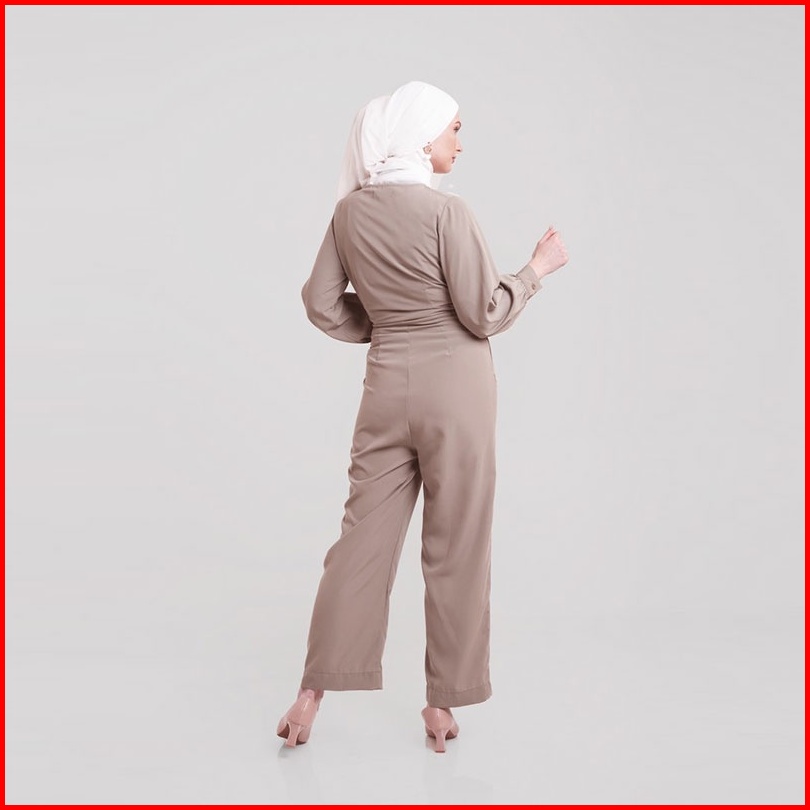 Hanna Jumpsuit With Flaps Kyrie Hijab Busui Friendly Baju Terusan One Set Perempuan Coklat 020123