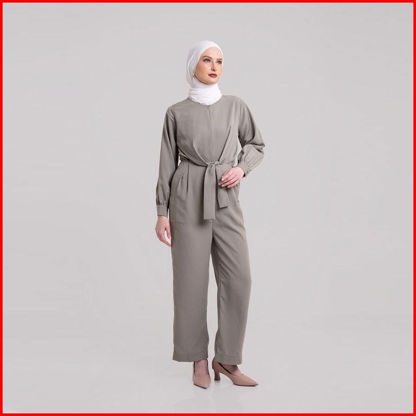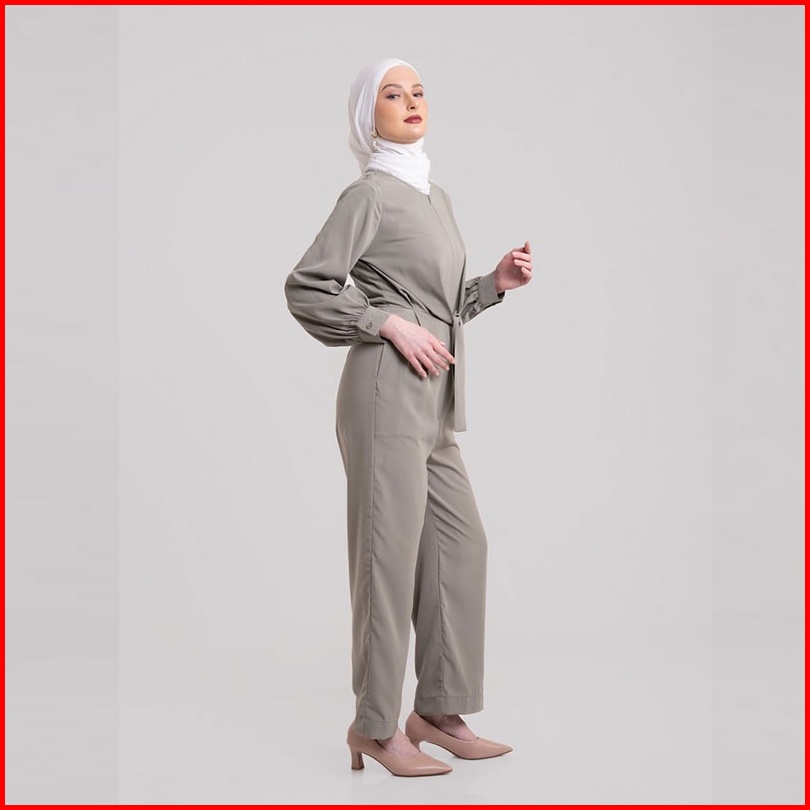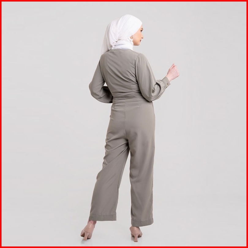 Hanna Jumpsuit Kyrie Hijab Lengan Panjang Busui Friendly With Hidden Zipper Overall Muslimah Hijau 010123