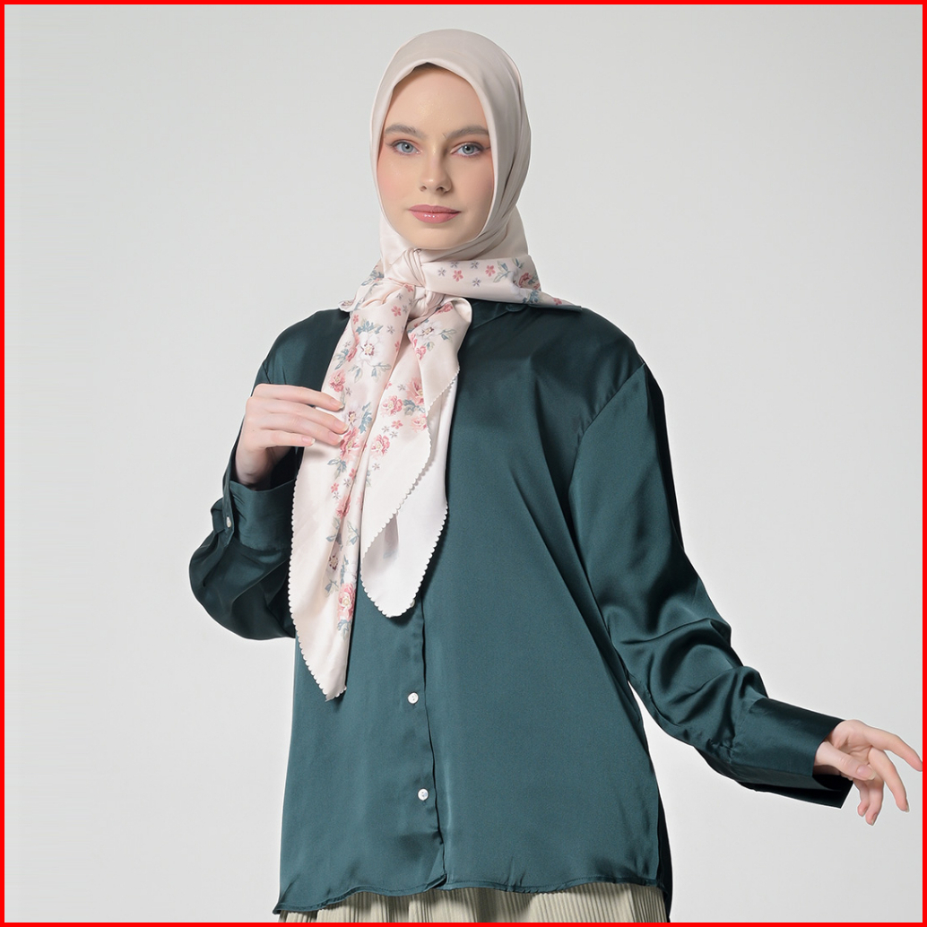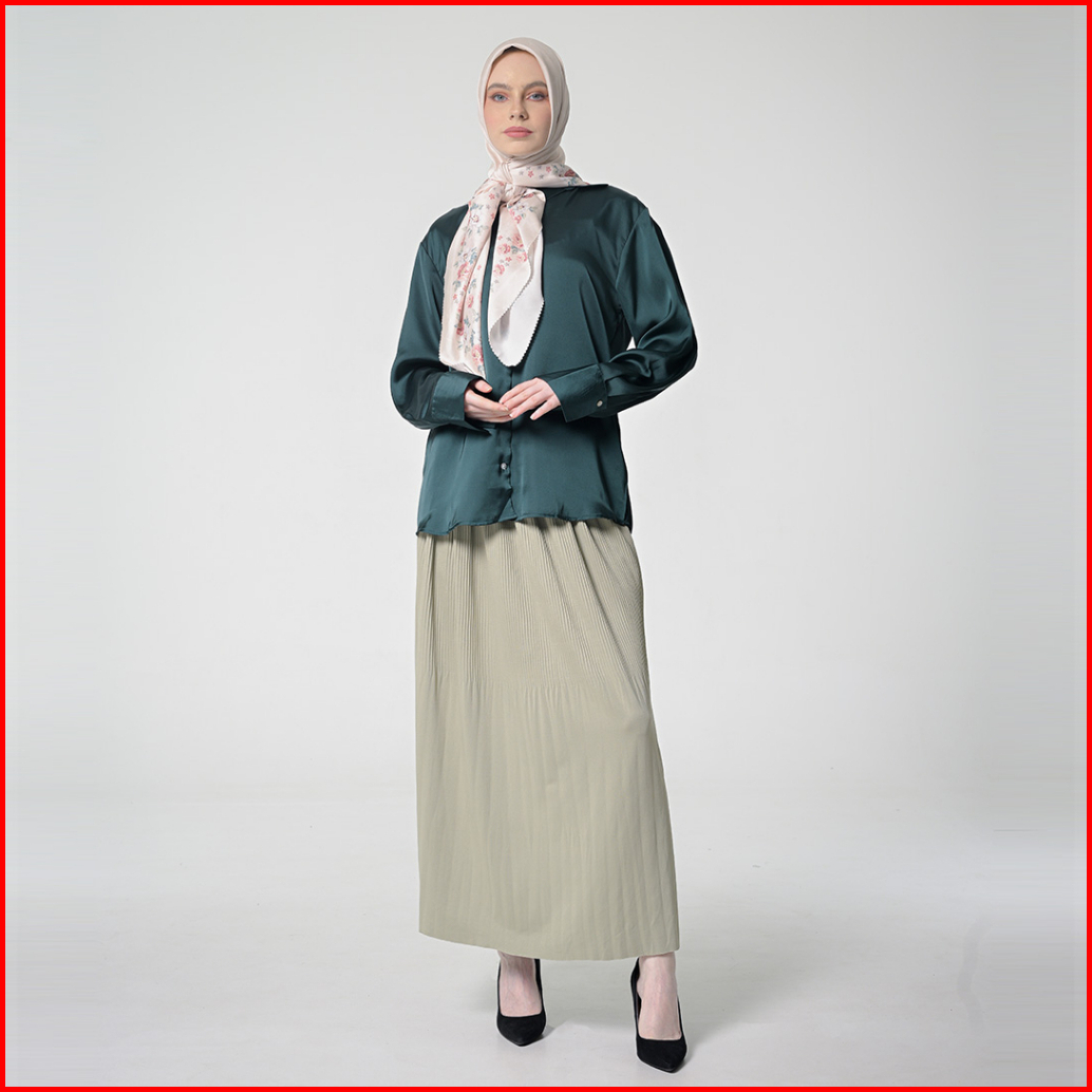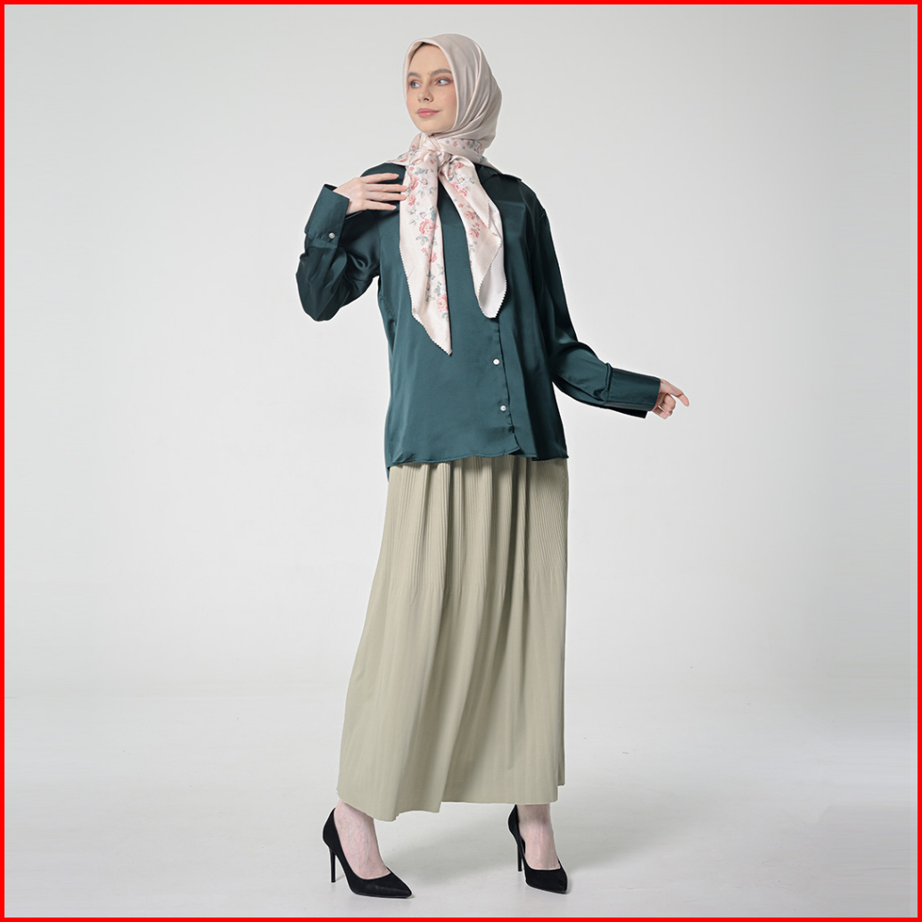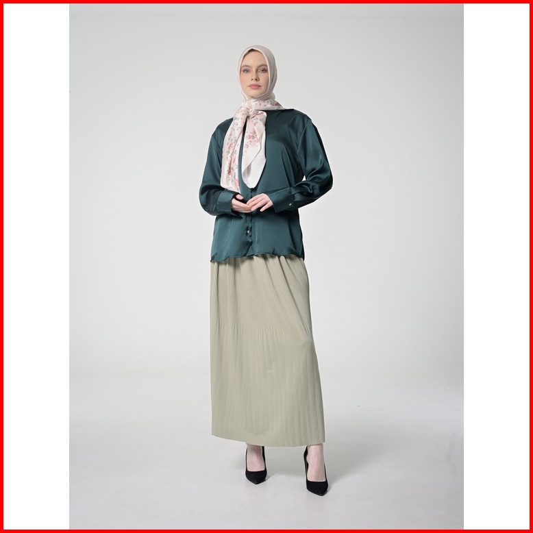 Hanna Kemeja Basic Polos Lengan Panjang Baju Atasan Wanita Shirt Long Sleeve Hijau Shandy 050323