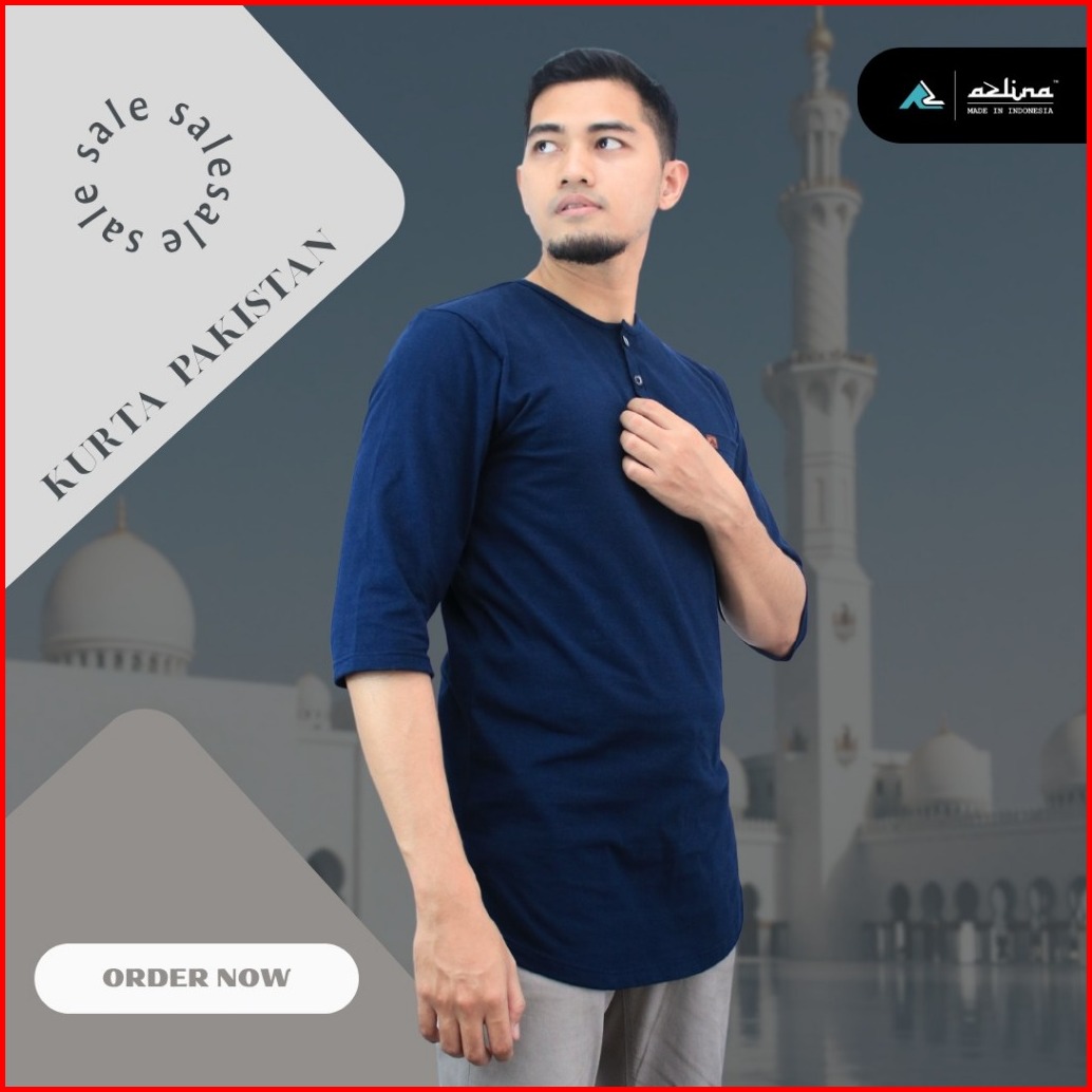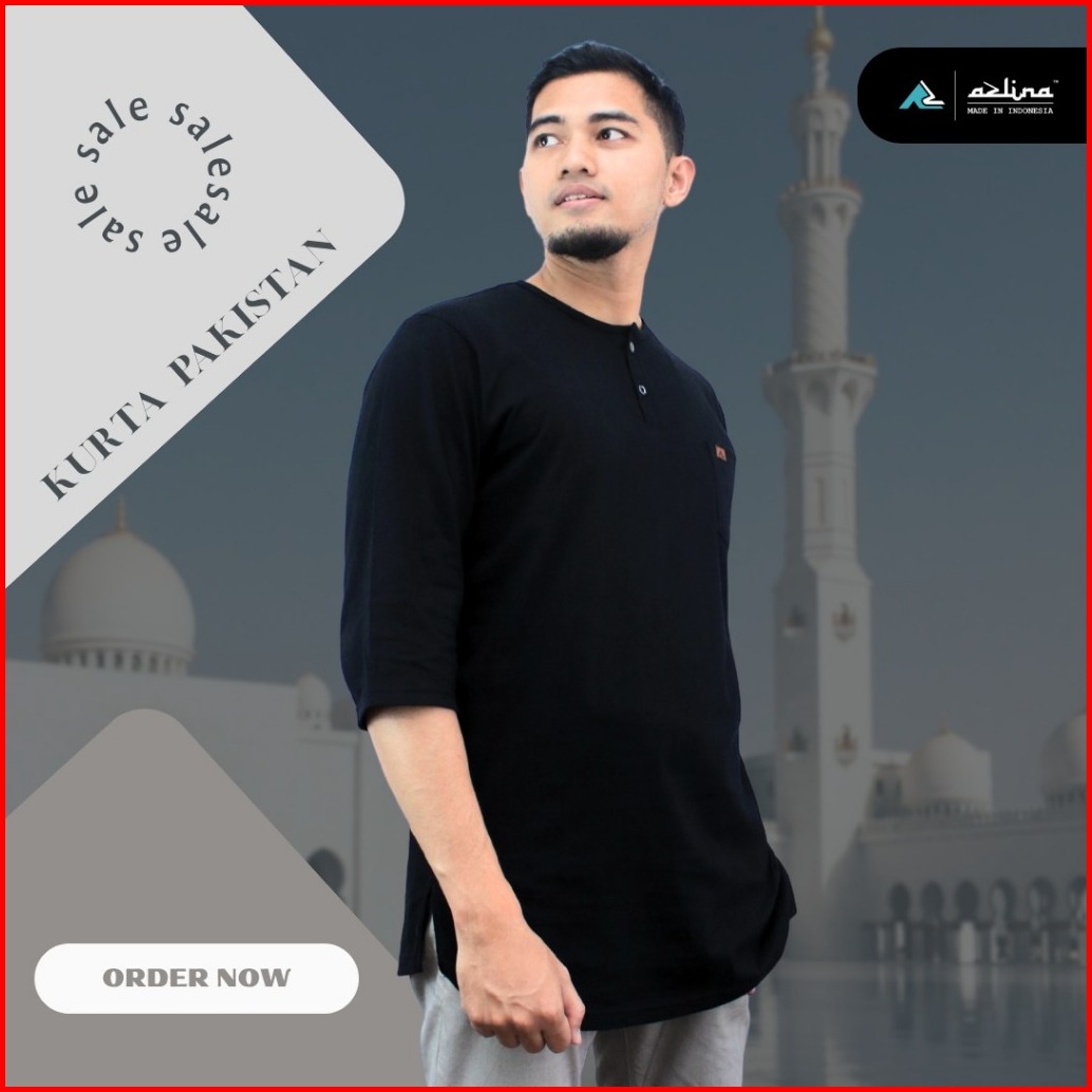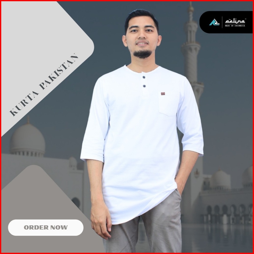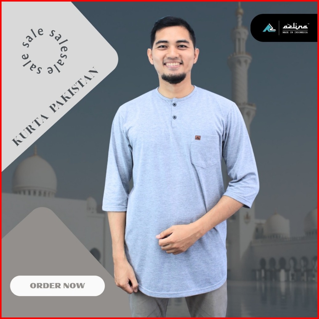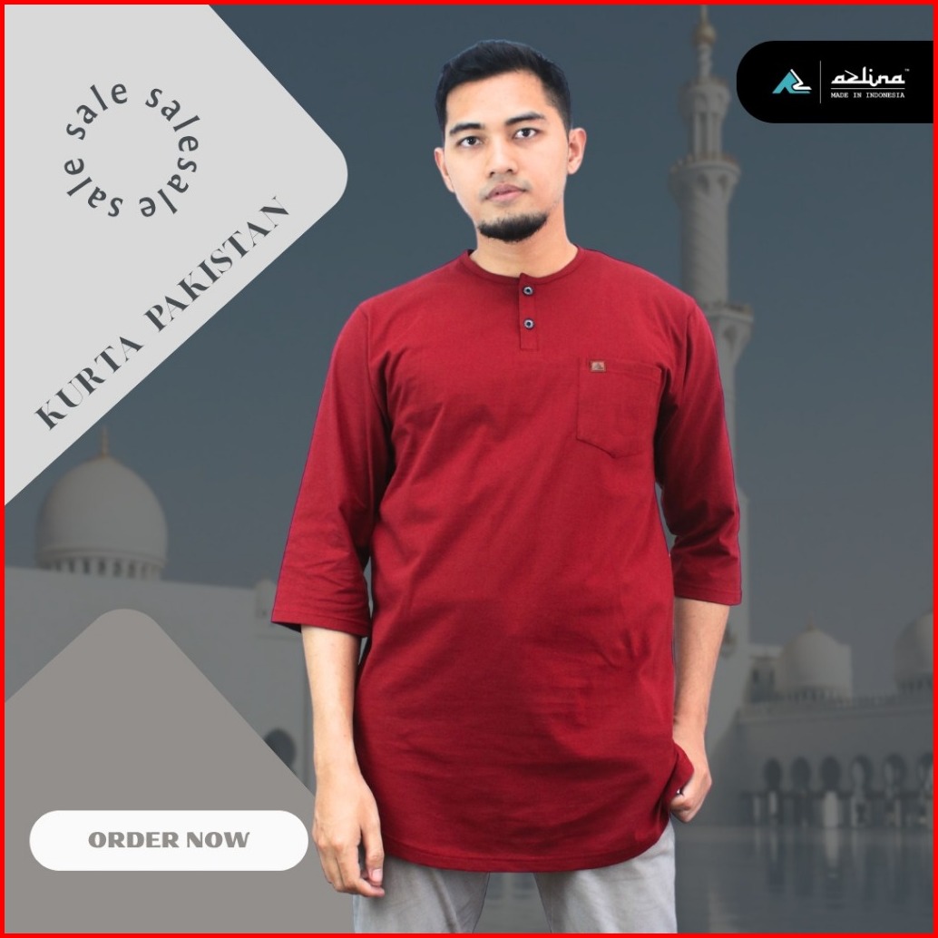 Kaos Kurta Pria Dewasa Lengan 3 4 Bahan Cotton Premium Combed 24s