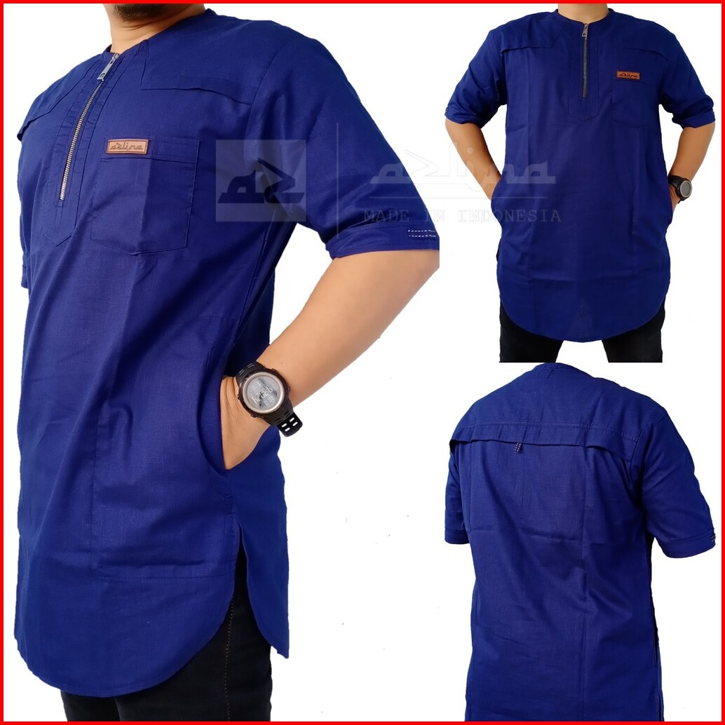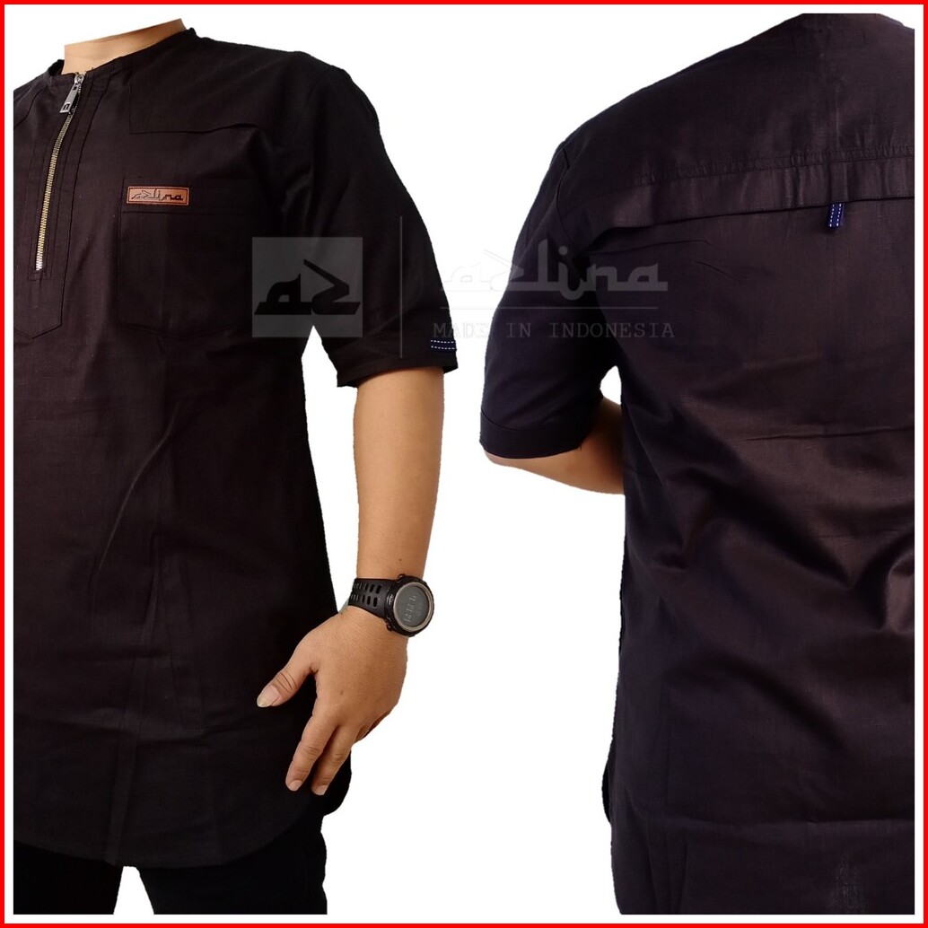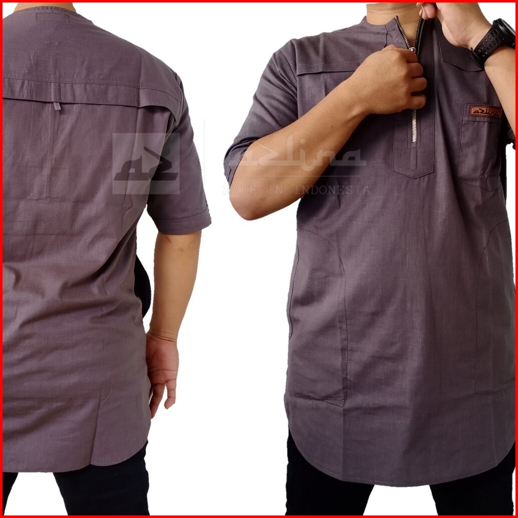 - Baju Gamis Pria Model Kurta Polos Zipper Terbaru Lengan Pendek Bahan Cotton Premium