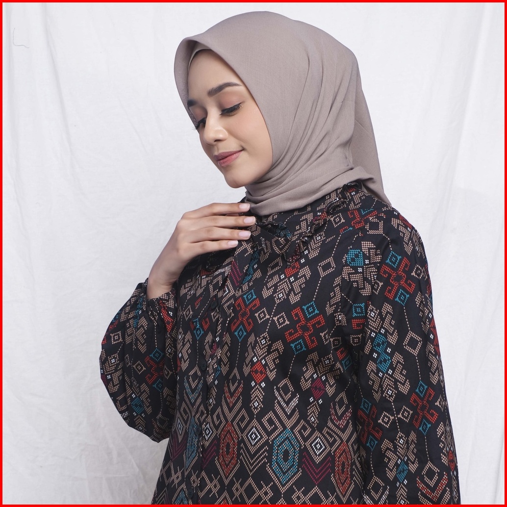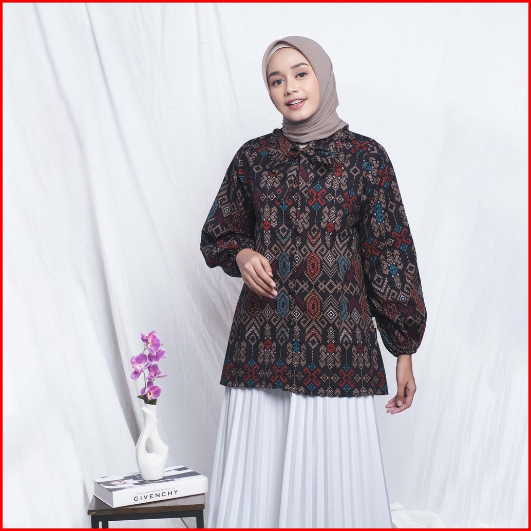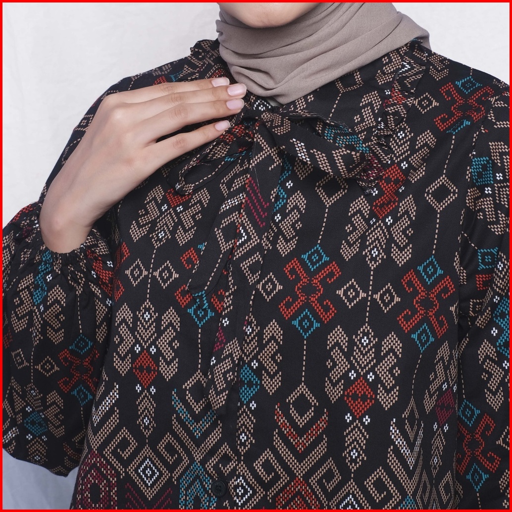 Dgm Kemeja Batik Wanita Lengan Panjang Premium Songket Black B 013