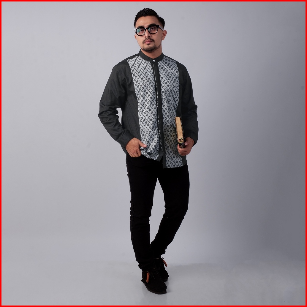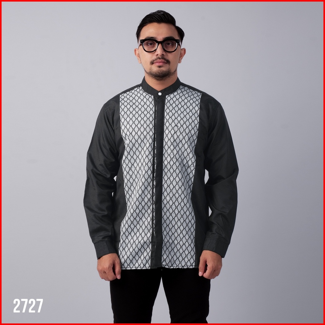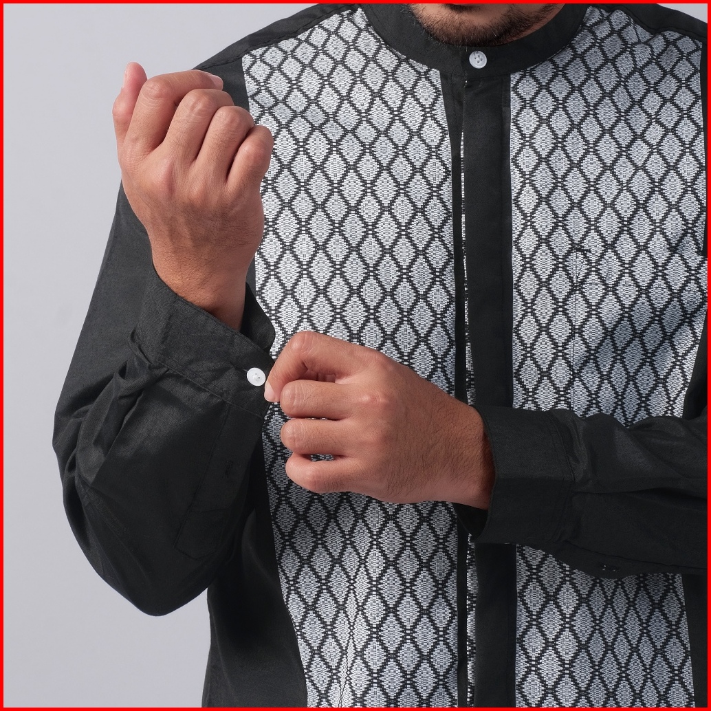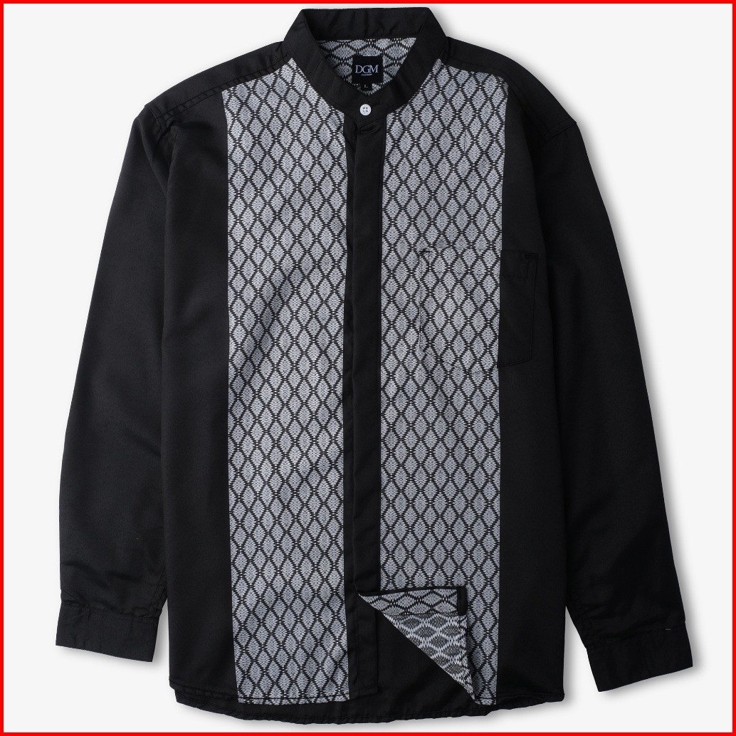 Dgm Baju Koko Pria Lengan Panjang Bordir Premium Hitam Motif Jaring Baju Koko 2727