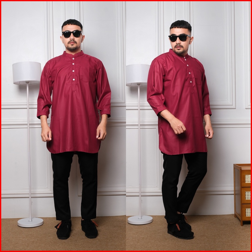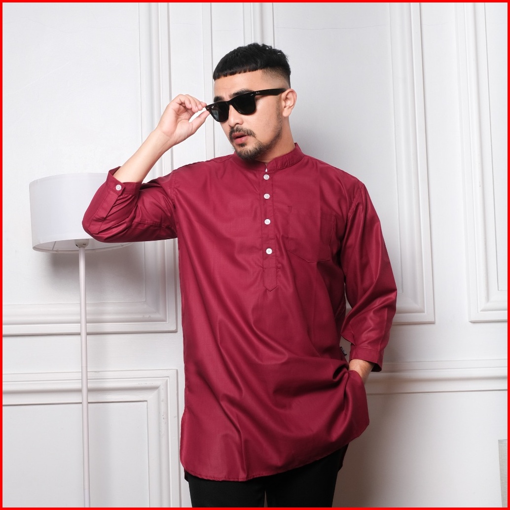 Dgm Baju Koko Pria Toyobo Polos Premium Lengan 3 4 Merah Maroon Koko Kurta 1652