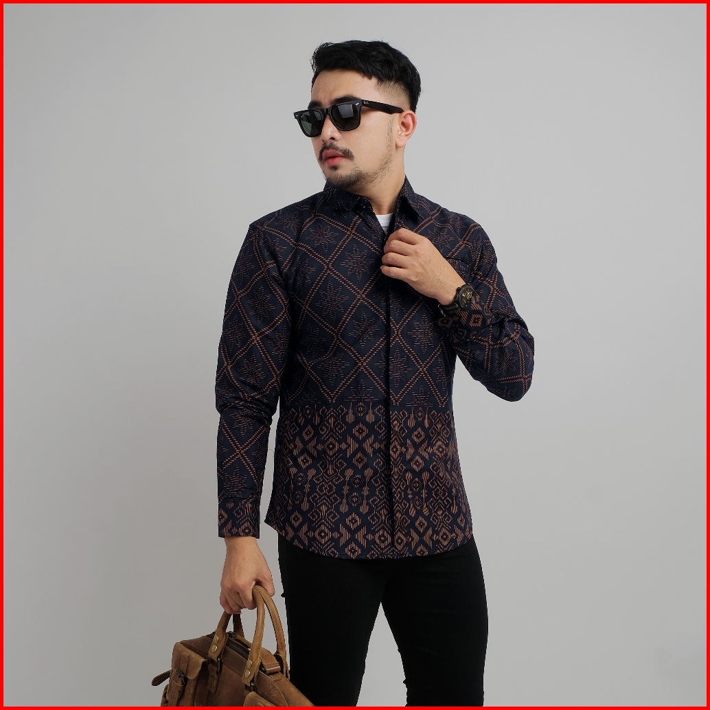 Dgm Kemeja Batik Pria Lengan Panjang Lapis Puring Premium Batik Furing Tribal Coklat-hitam 2198