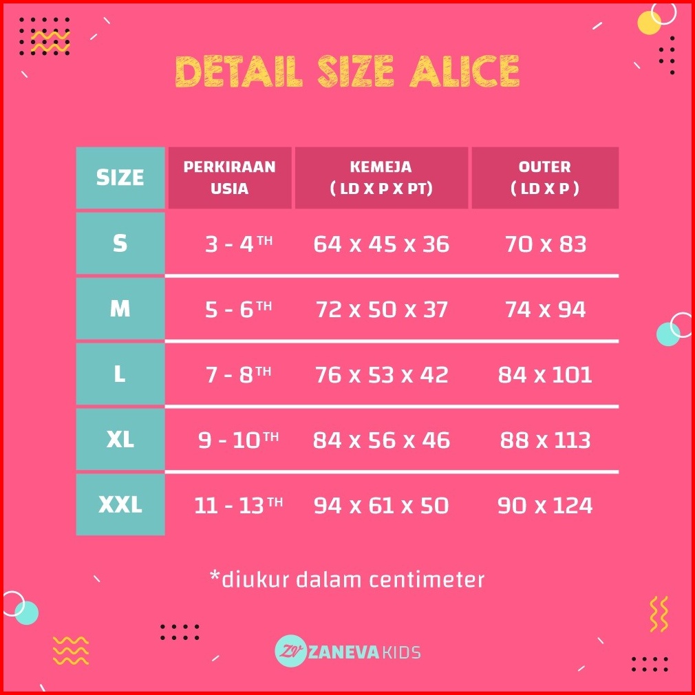 S (3 - 4 tahun), M (5 - 6 tahun), L (7 - 8 tahun), XL (9 - 10 tahun), XXL (11-13 tahun)