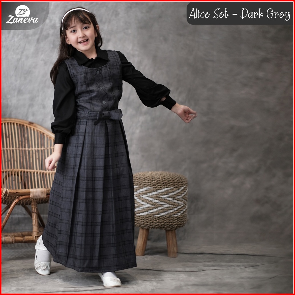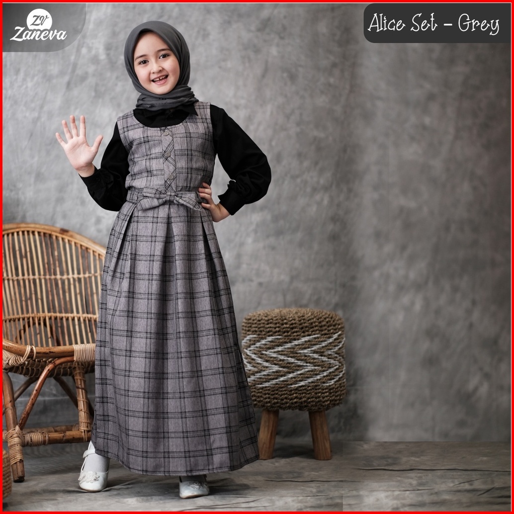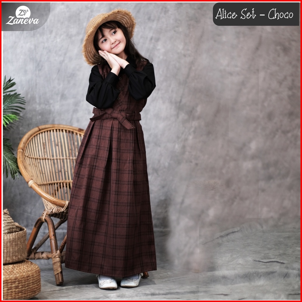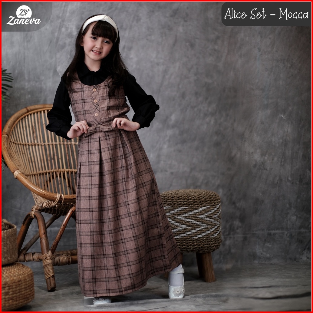 Zaneva - Alice Set Kemeja Overall Stelan Anak Para Artis