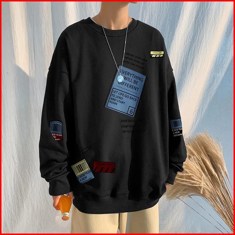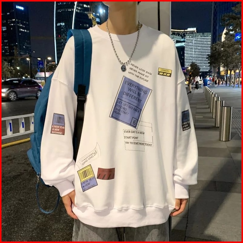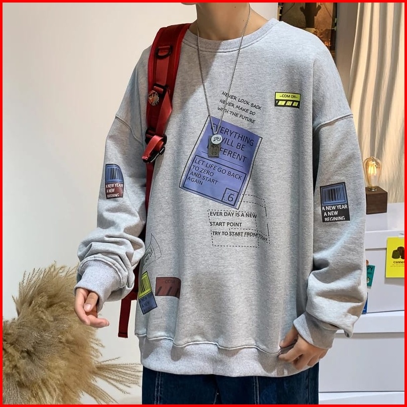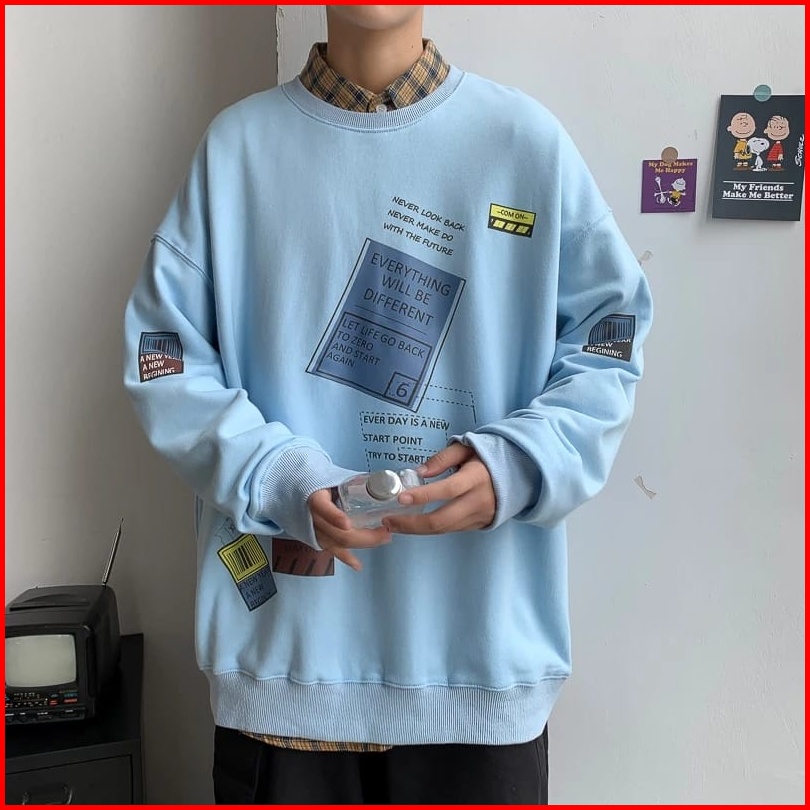 Sweater Crewneck Pria Everything Oversize Sweatshirt Basic Style Bahan Flece