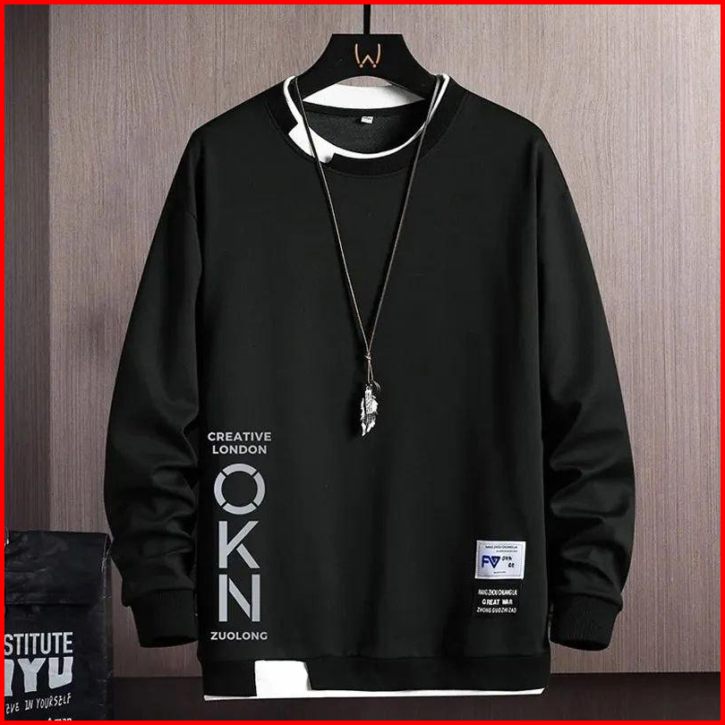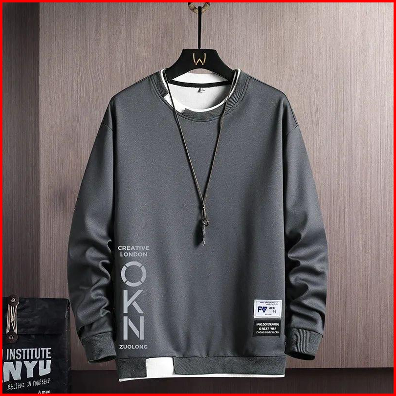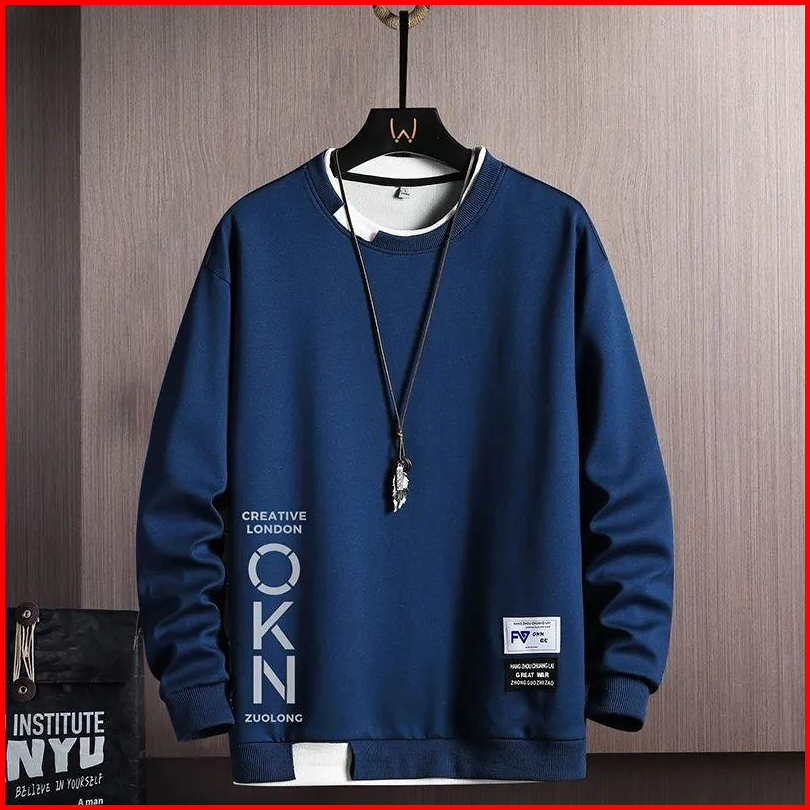 Sweater Oblong Basic Pria Sweatshirt Crewneck Bahan Flece Okn Sweater