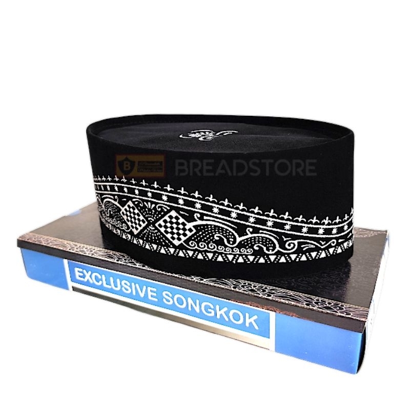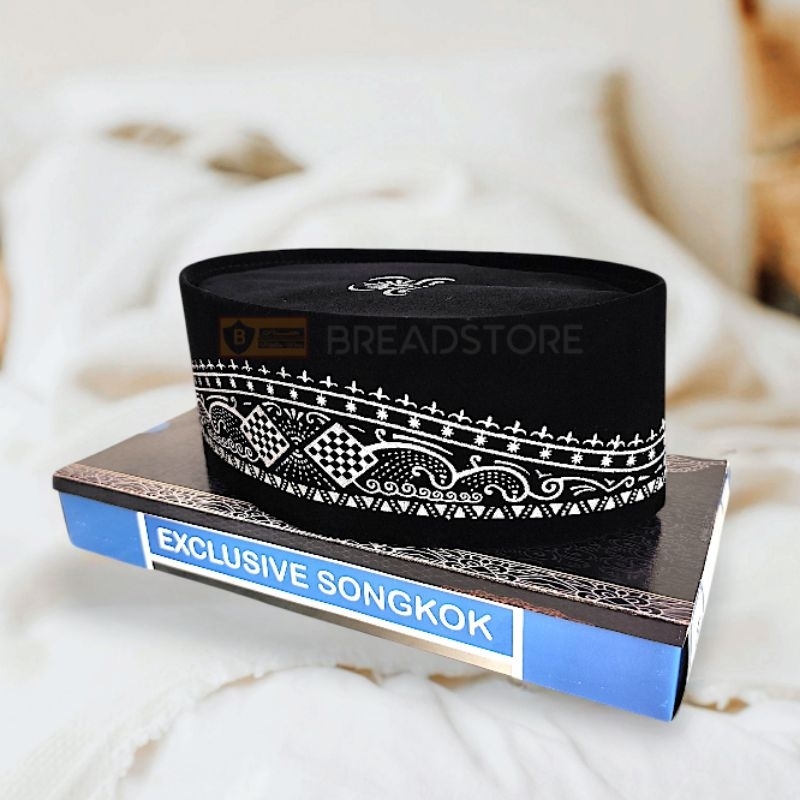 Peci Songkok Kopiah Hitam Polos Motif Batik Silver Non AC Tinggi 9 cm Ukuran Anak Sampai Dewasa Murah Bahan Beludru Peci