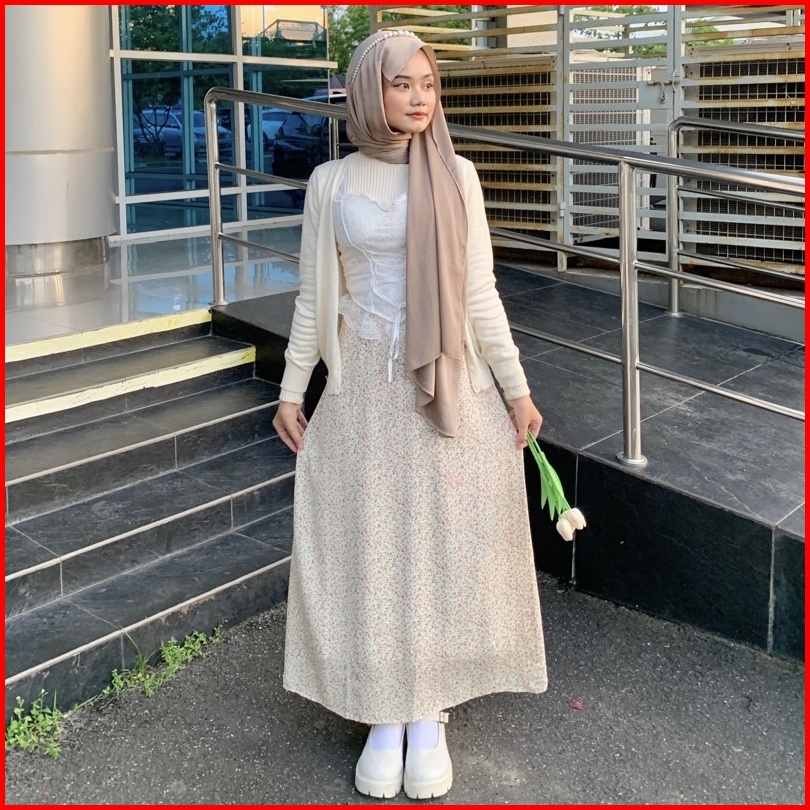 Floral Skirt Full Furing By Ottaa.id Rok Panjang Motif Bunga Korean Skirt A Line Skirt Midi Skirt