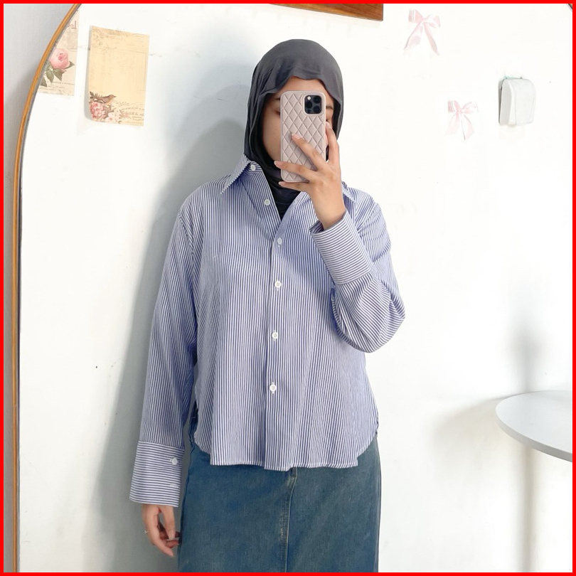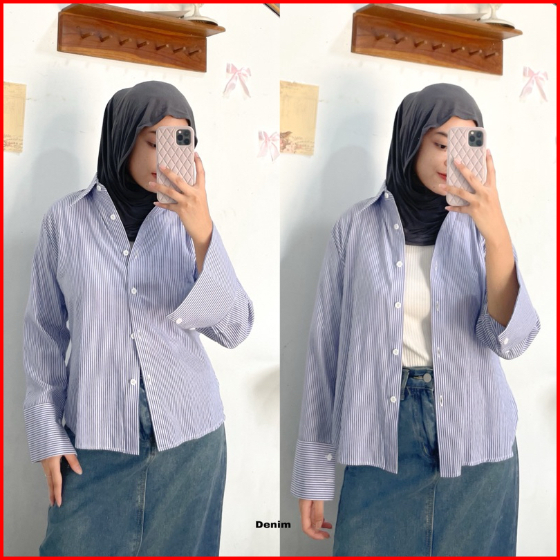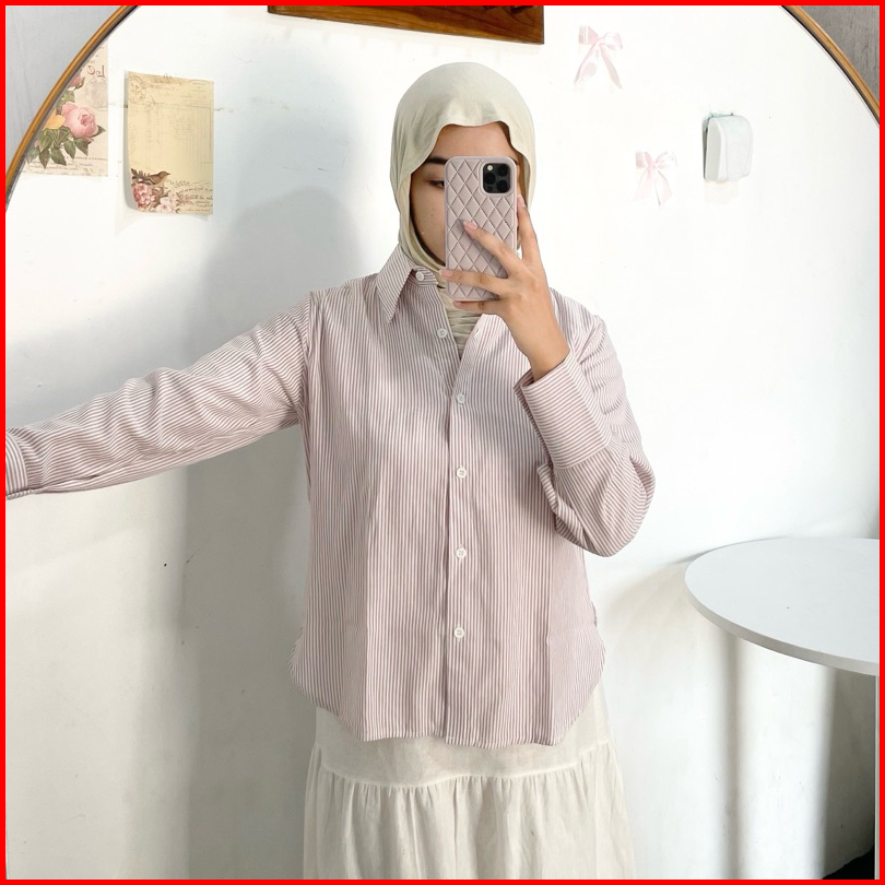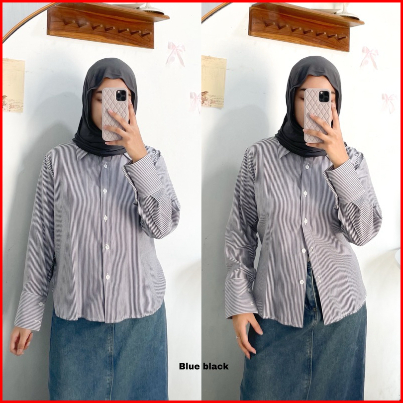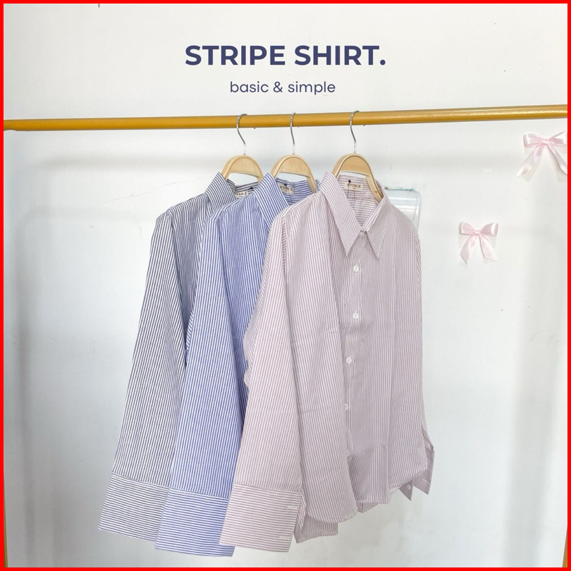 Stripe Shirt By Ottaa.id Kemeja Salur Kemeja Garis Kemeja Casual Wanita