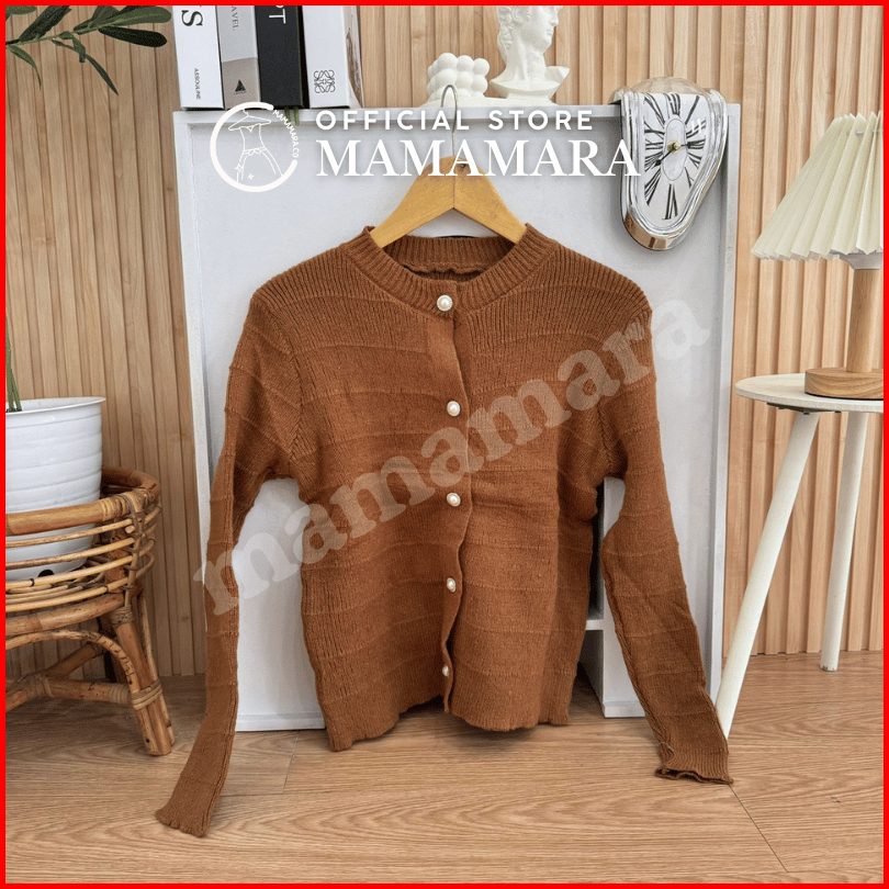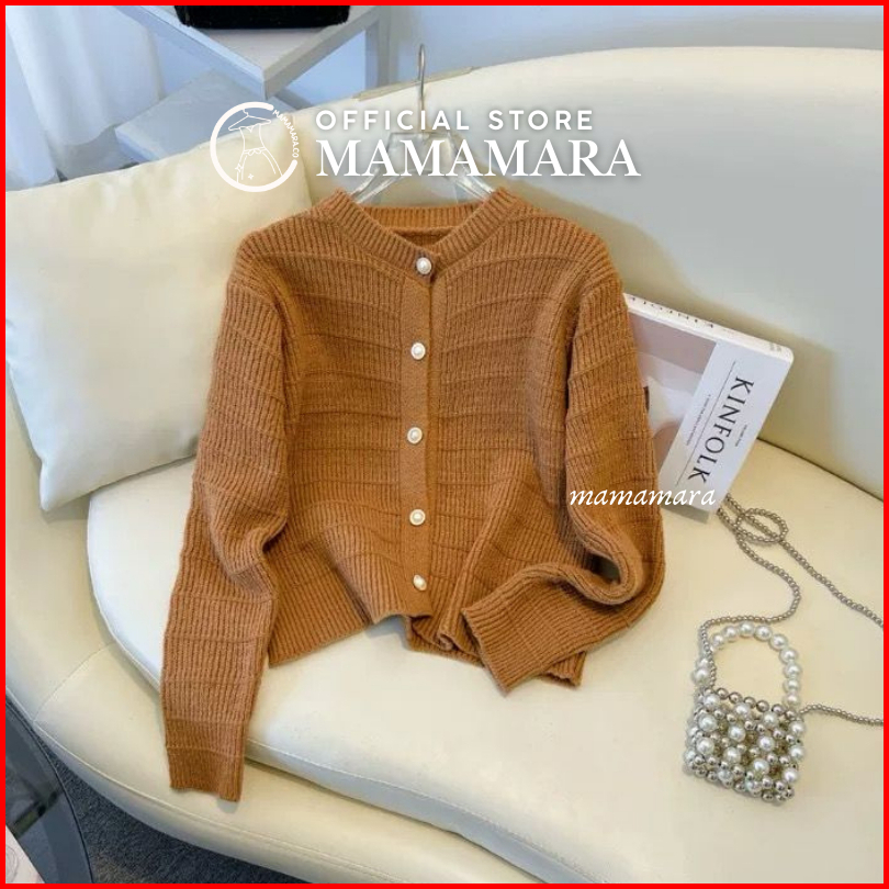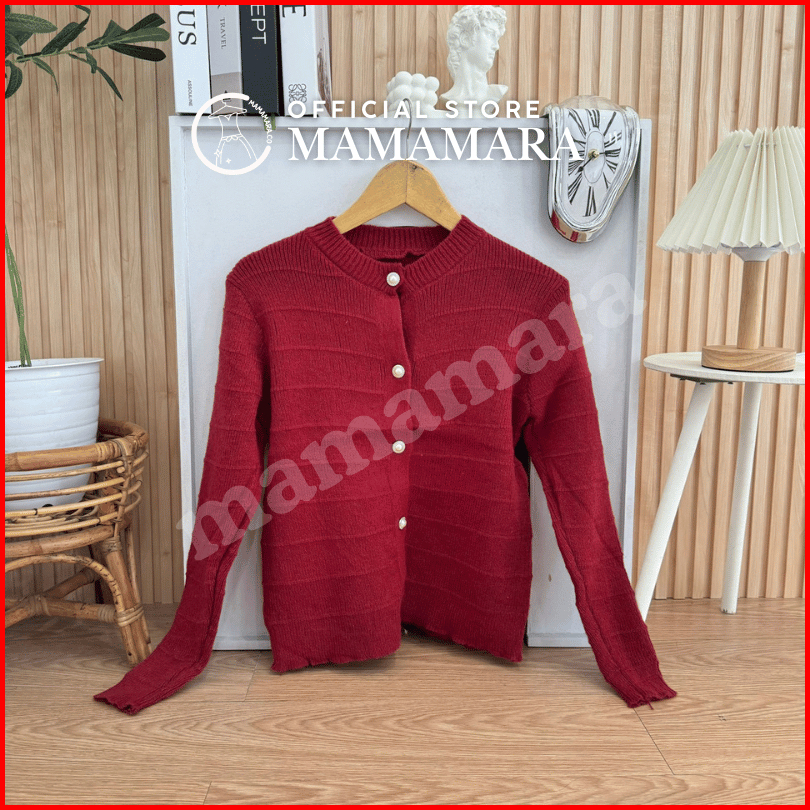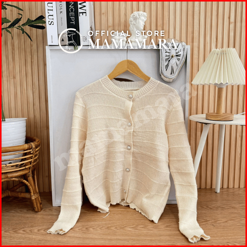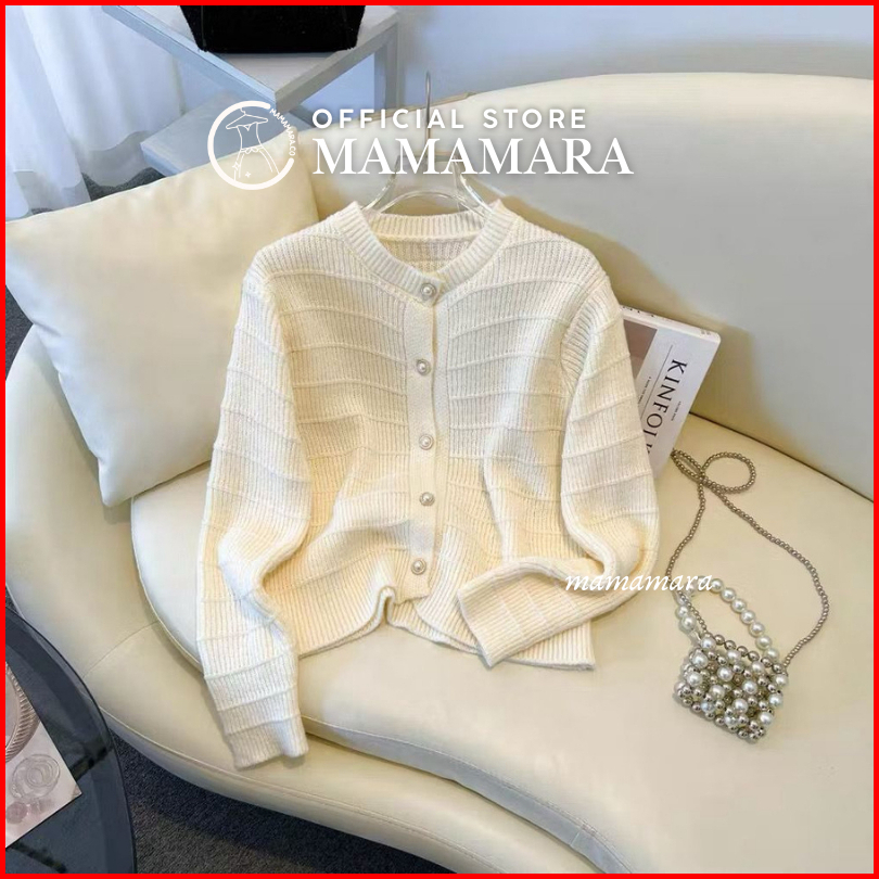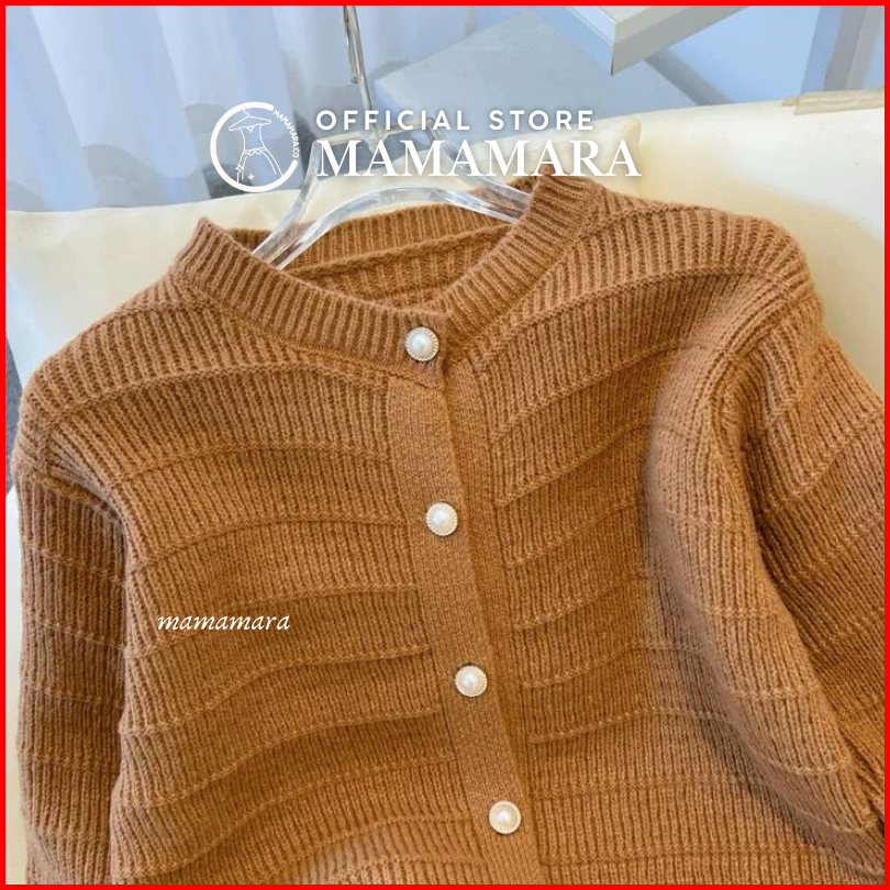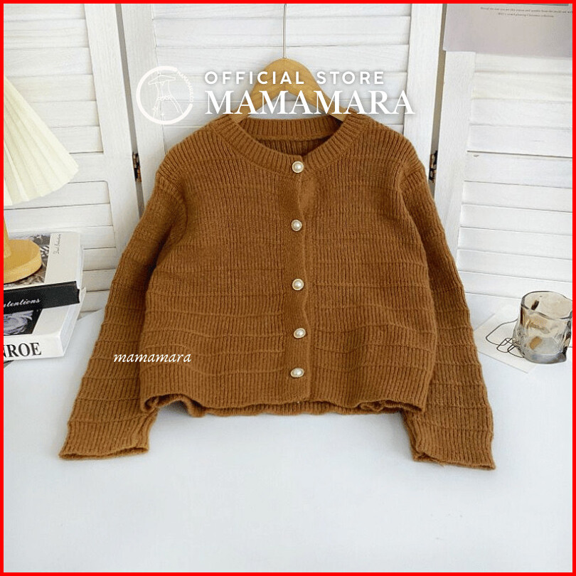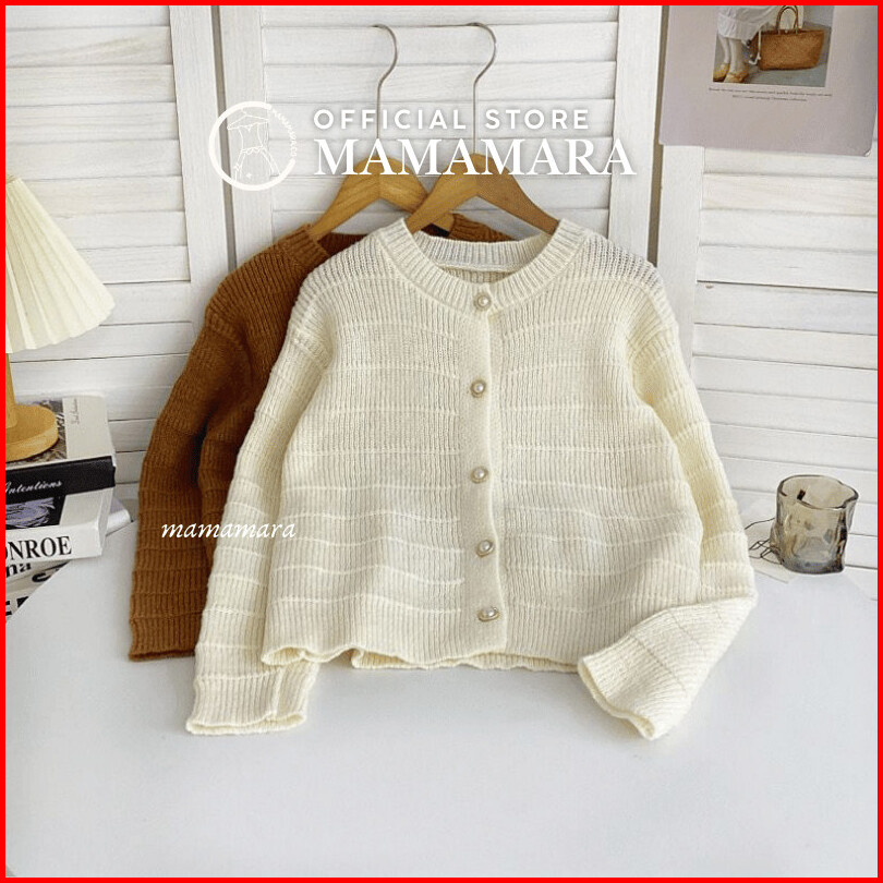 Mamamara - Cardigan Rajut Wol Simple Salur Timbul Polos Daily Knitwear Santai