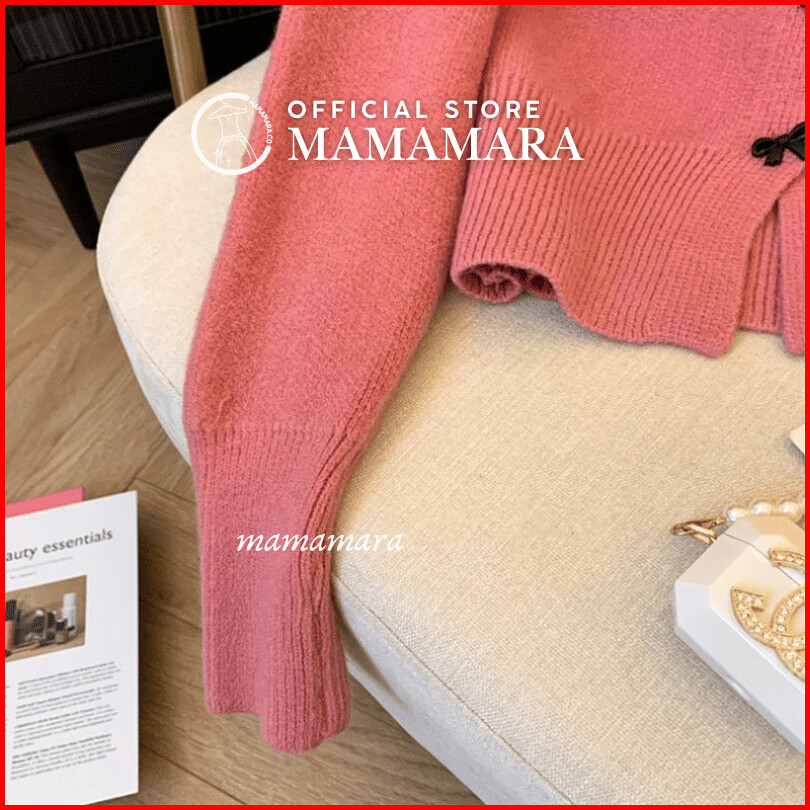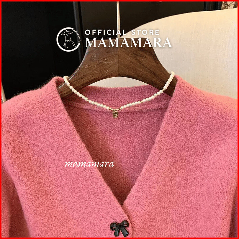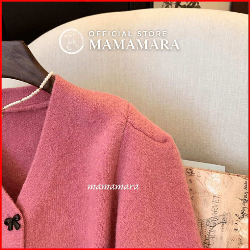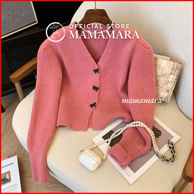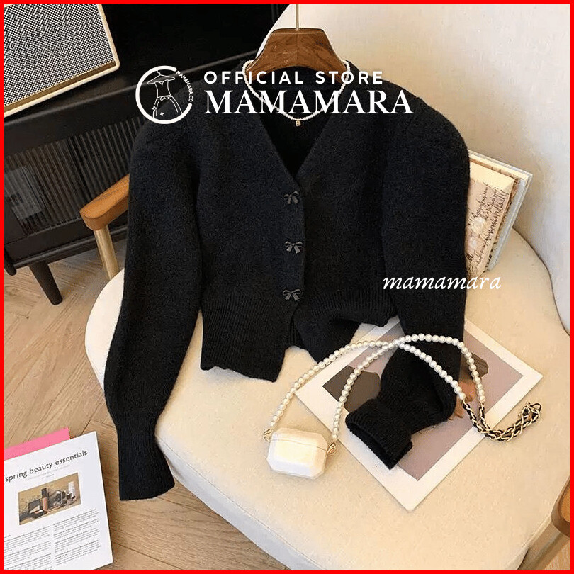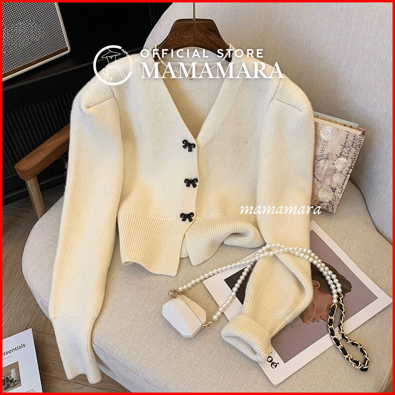 Mamamara - Cardigan Rajut Pita Coquette Imut Atasan Wanita Lembut Motif Ribbon Girly Knitwear Crop Outer