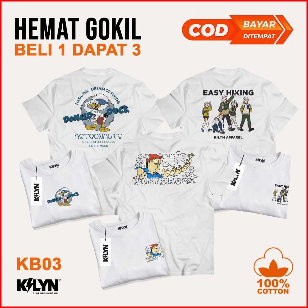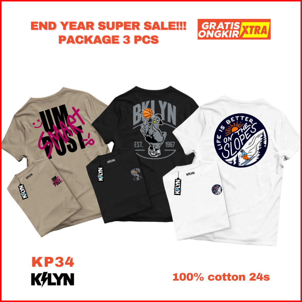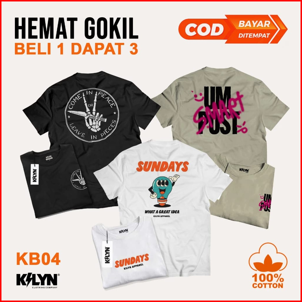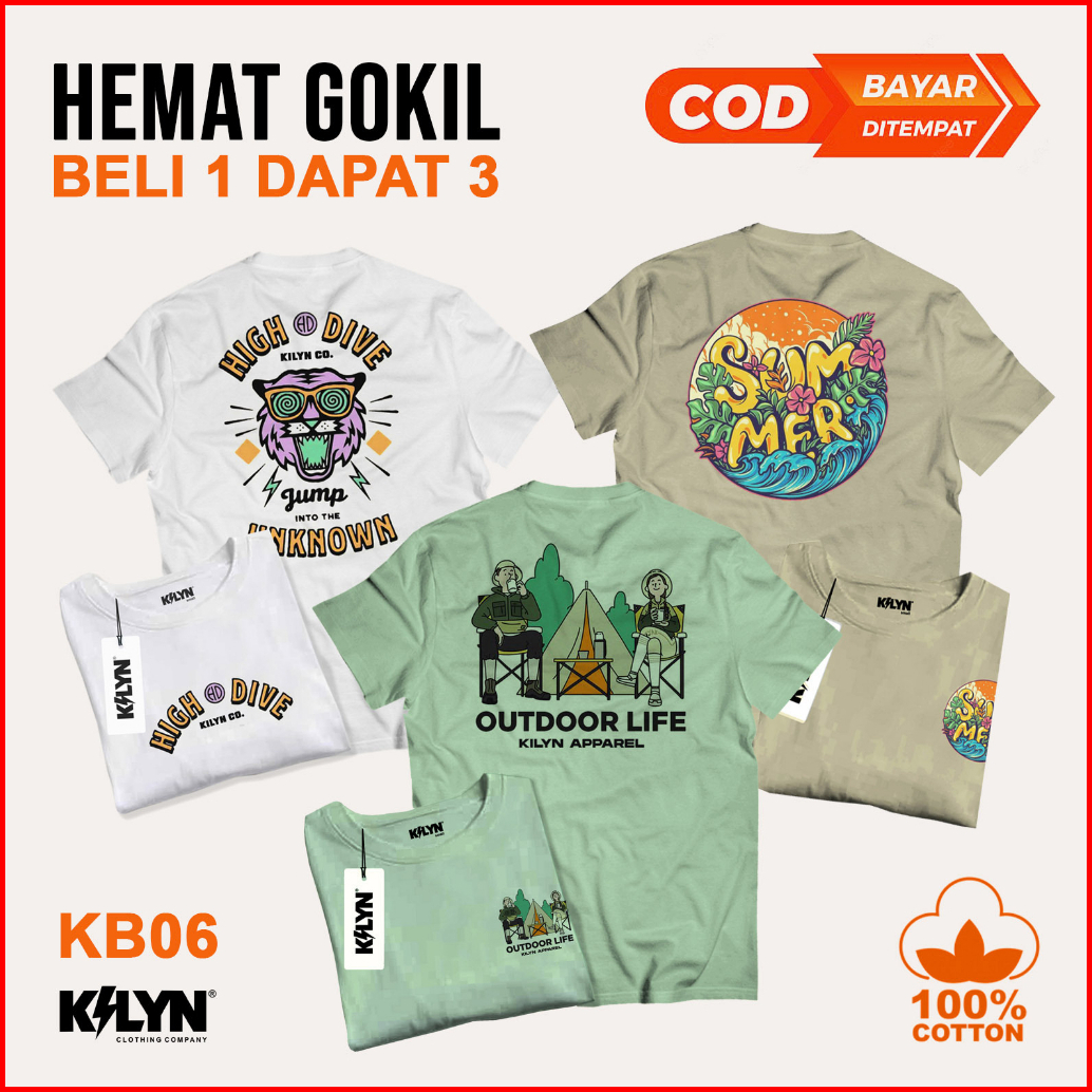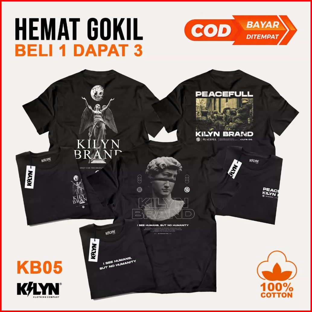 Paket 3 Pcs Kaos Distro Kilyn Store Ready Semua Ukuran S M L Xl Cotton Combed Bahan Tebal Nyaman Dipakai