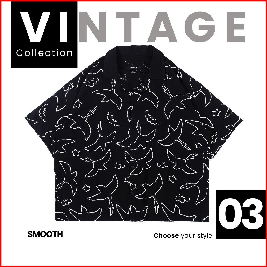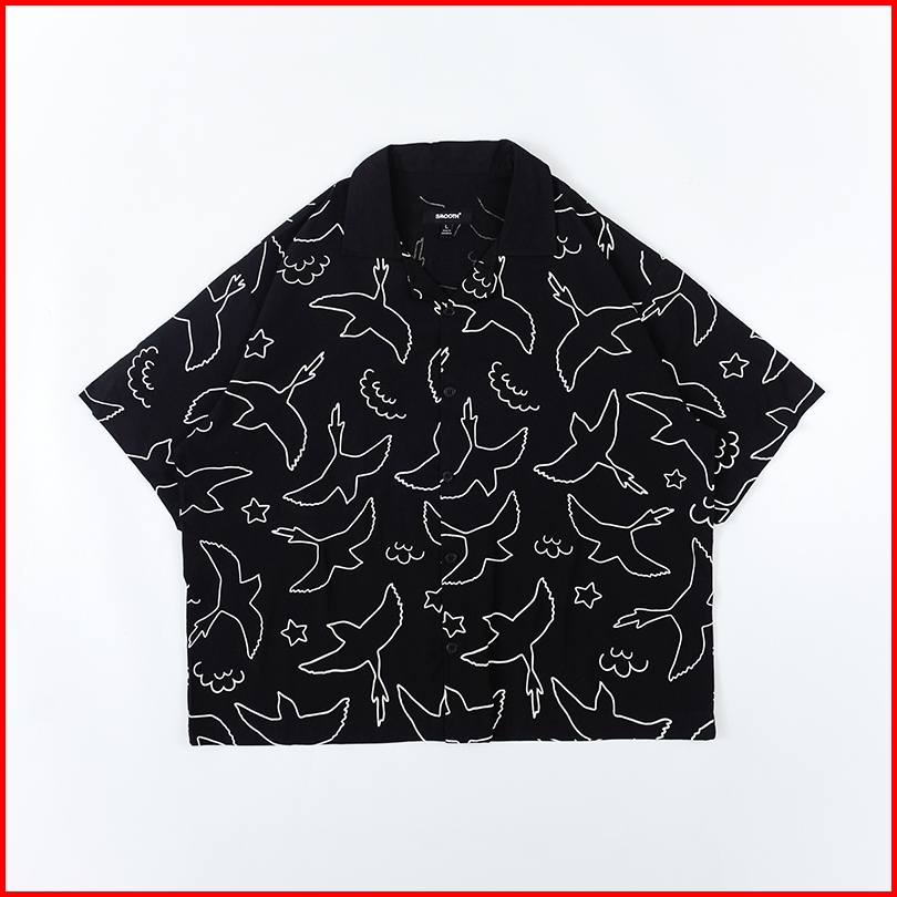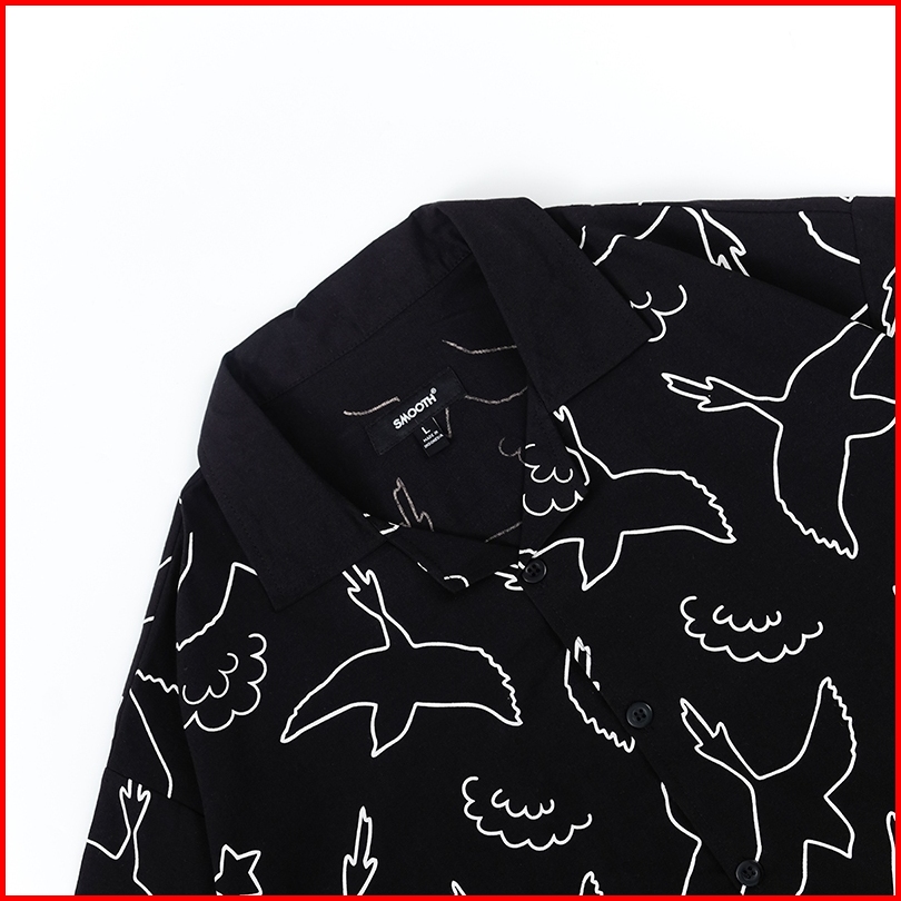 Smooth Basic New Larvik Pouli Full Print Black Vintage Boxy Shirts