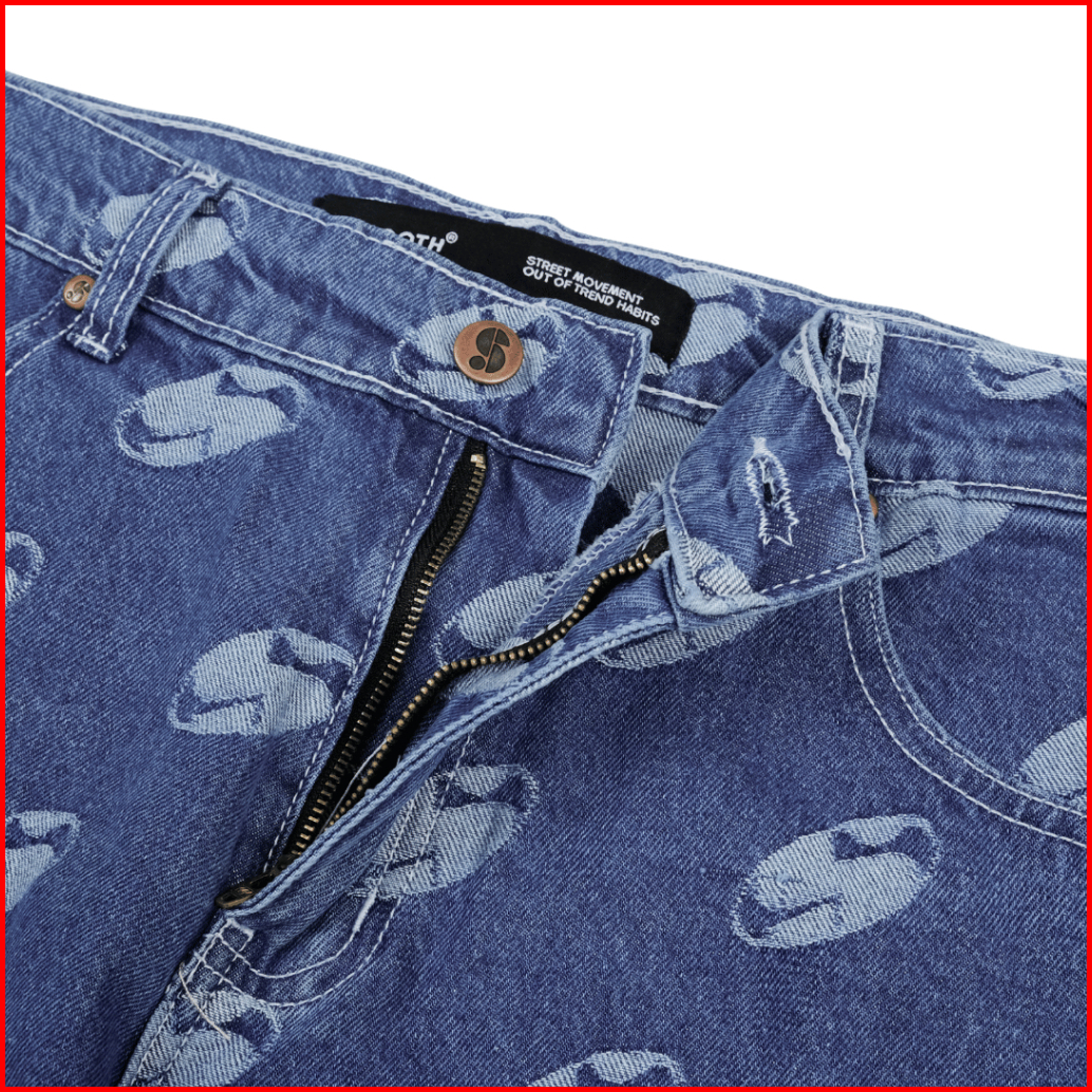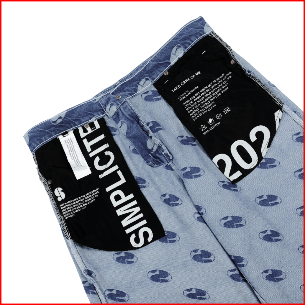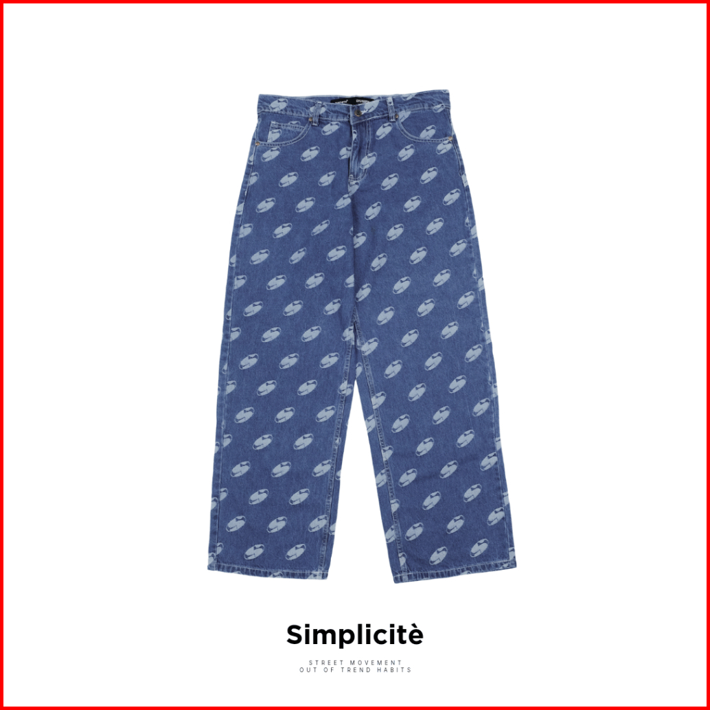 Smooth Basic Denim Clement Long Baggy Pants Wash Blue Simplicite Series