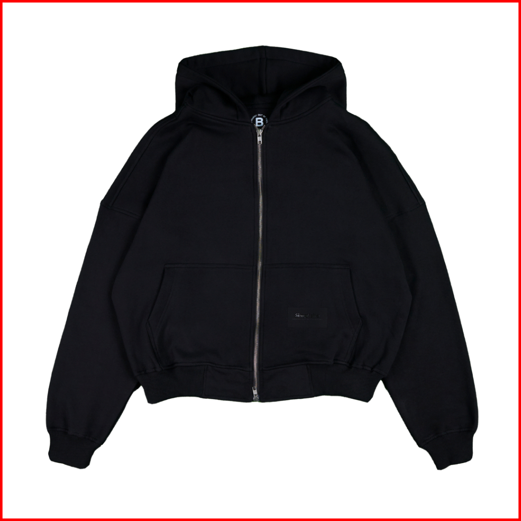 Smooth Basic Jacket Cotton Fleece Boxy Double Zip Hoodie Black Simplicite Series