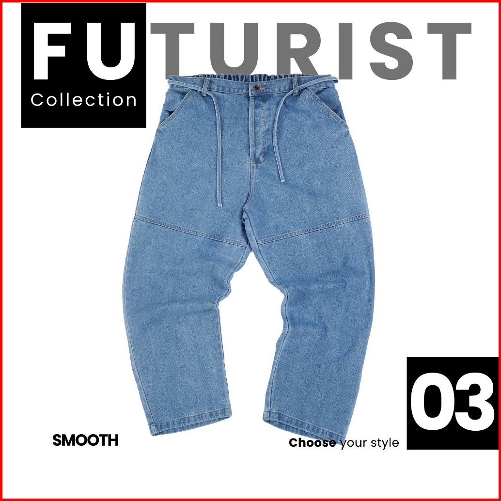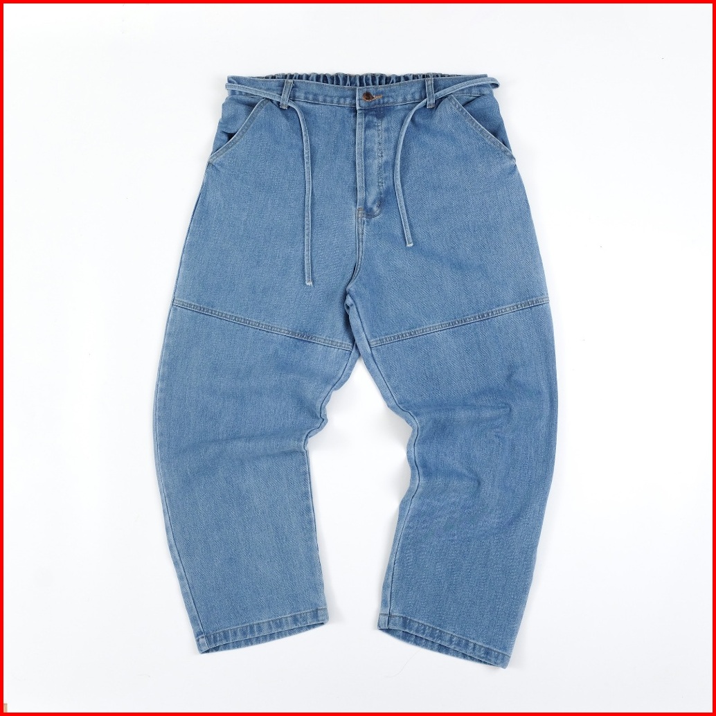 Smooth Basic Pleated Lose Pant Beagie Denim Blue