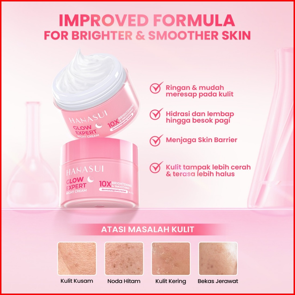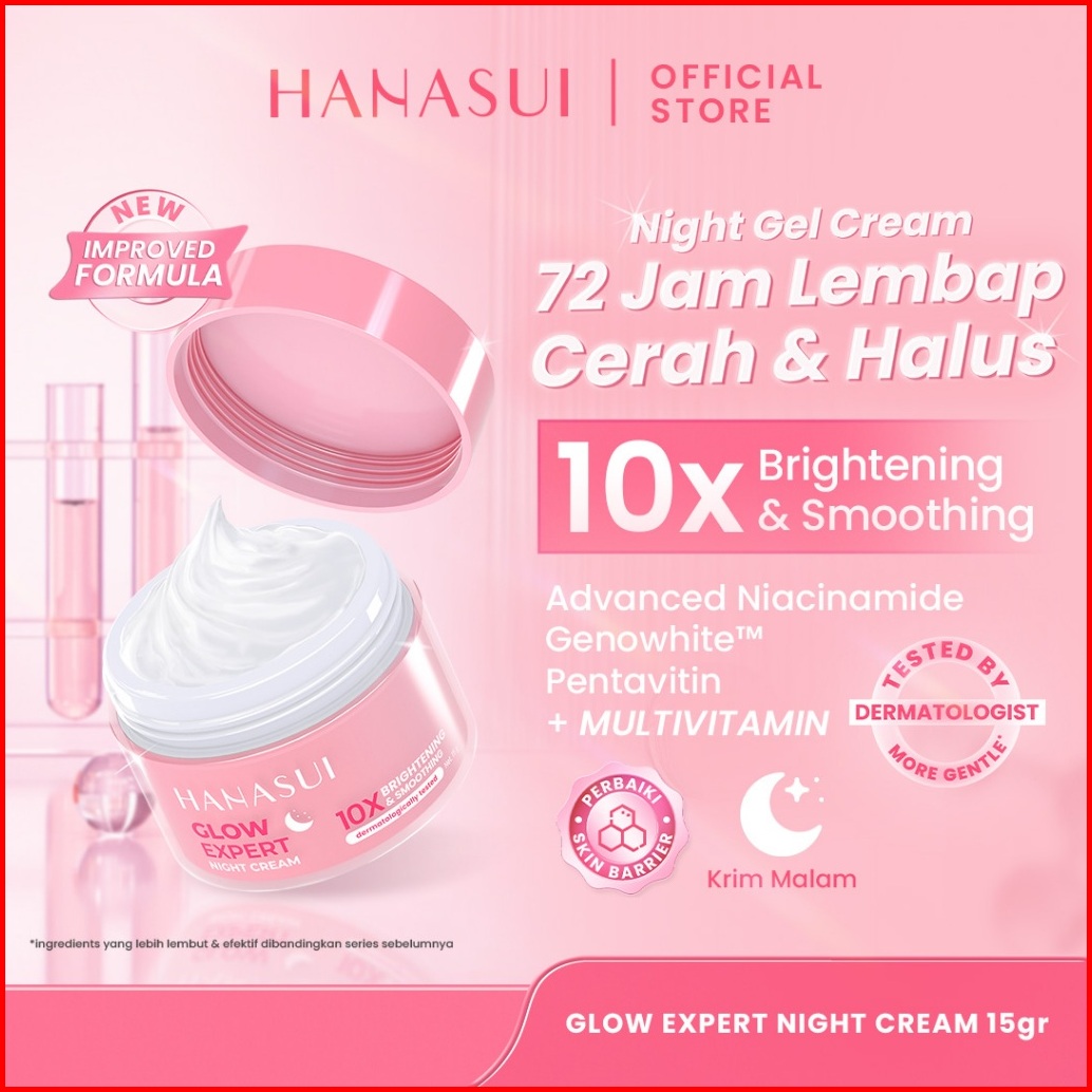 Hanasui Glow Expert Night Cream New Improved Formula - Gel Cream Ringan Kunci Kelembaban Mencerahkan Menghaluskan - Niac