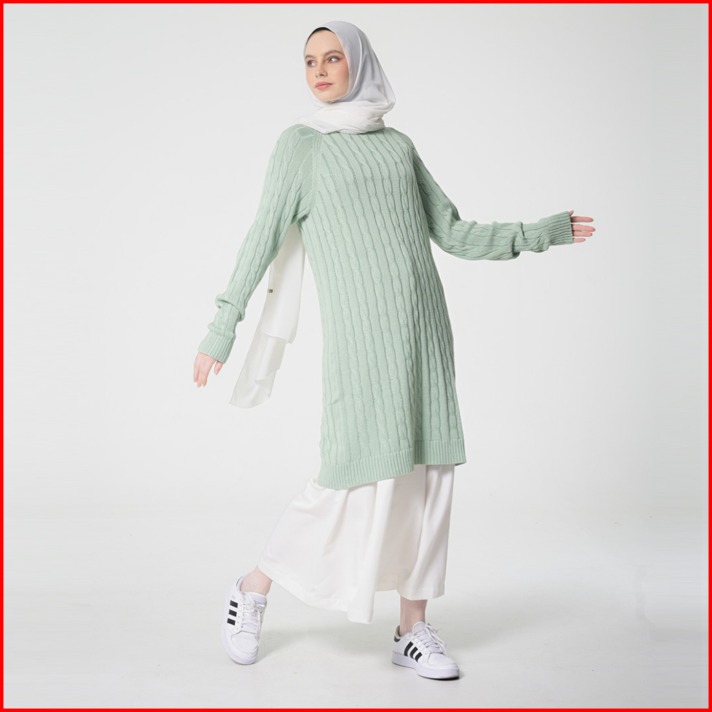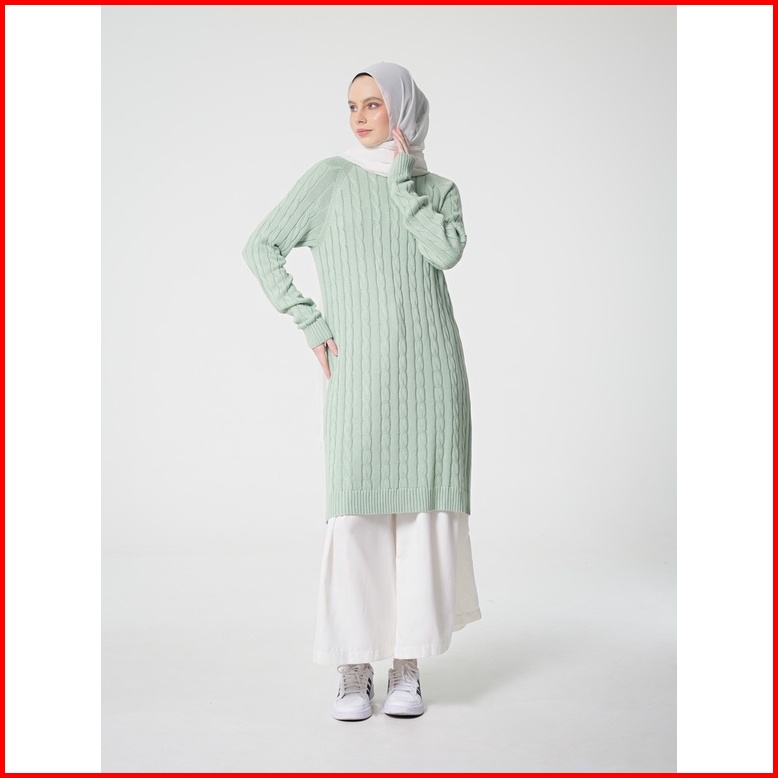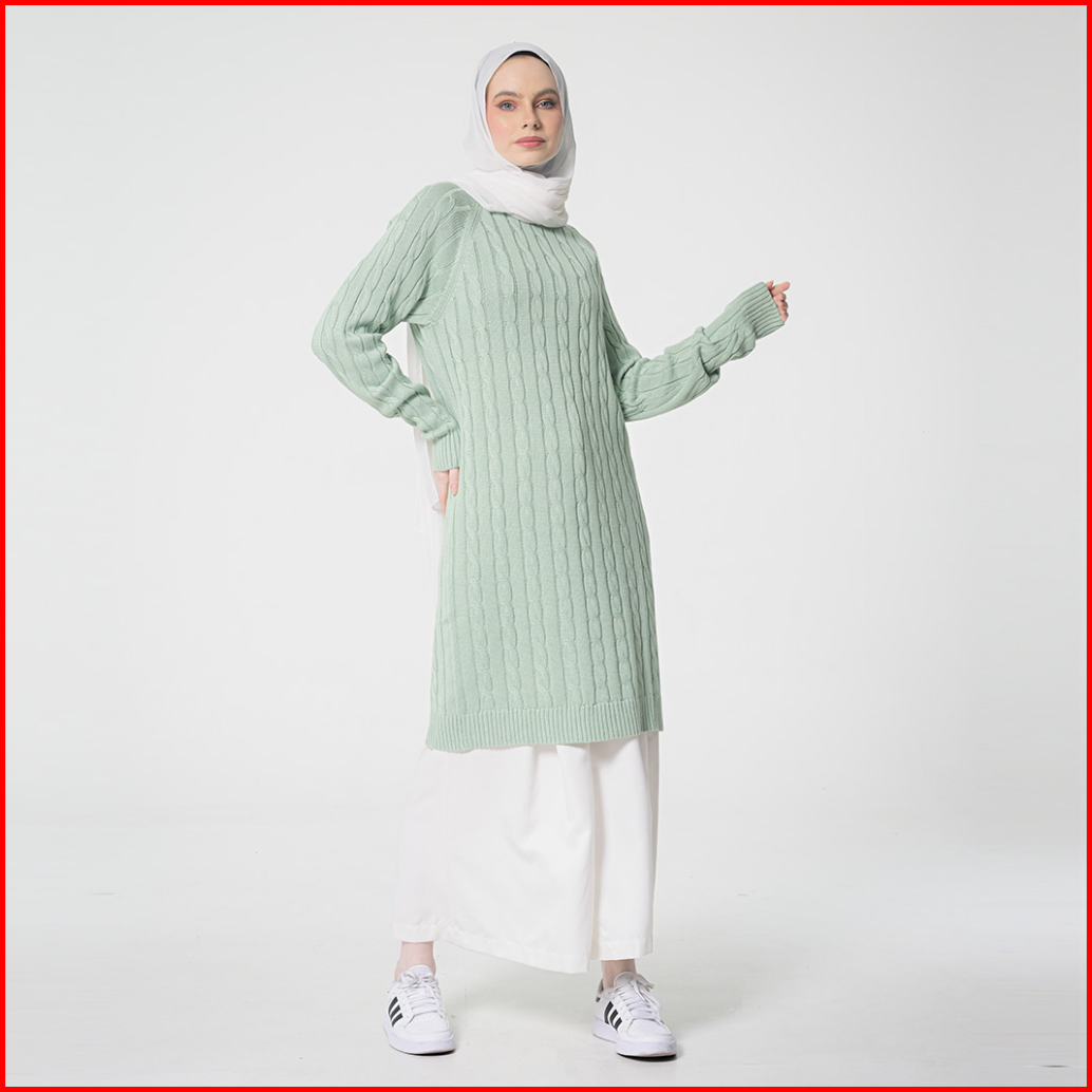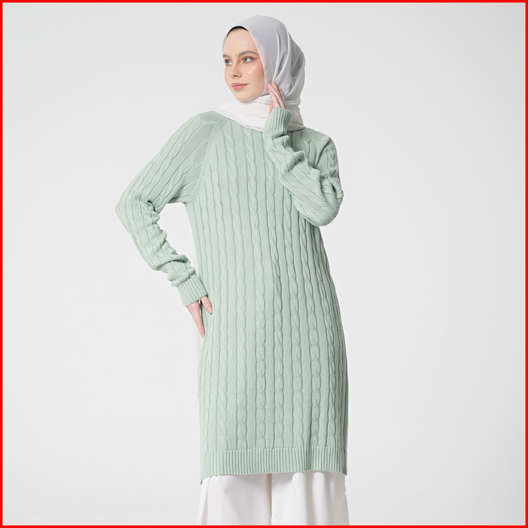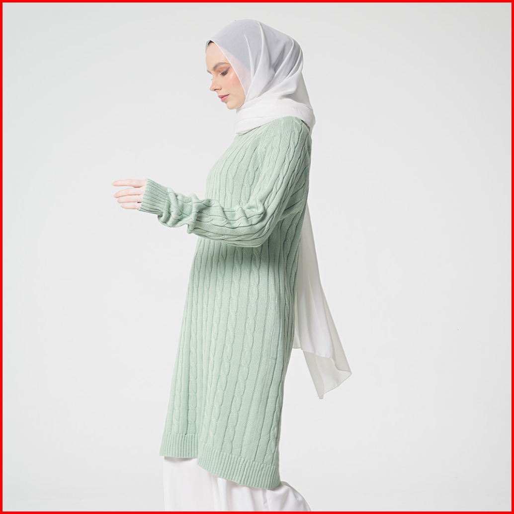 Hanna Knit Midi Dress Rajut Viscose Cotton Baju Terusan Knitwear Formal Casual Hijau Sabrina 010323