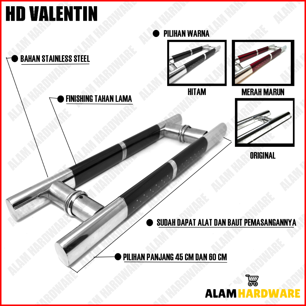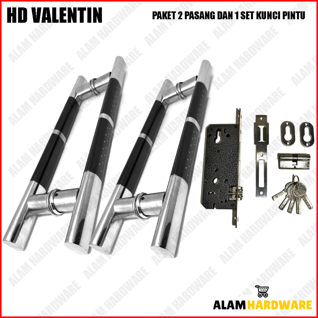 Paket 2 Pasang Gagang Pintu Type Valentin Panjang 45 Cm Dan 60 Cm Dengan 1 Set Bodykunci Pintu Rumah Handle Pintu Rumah