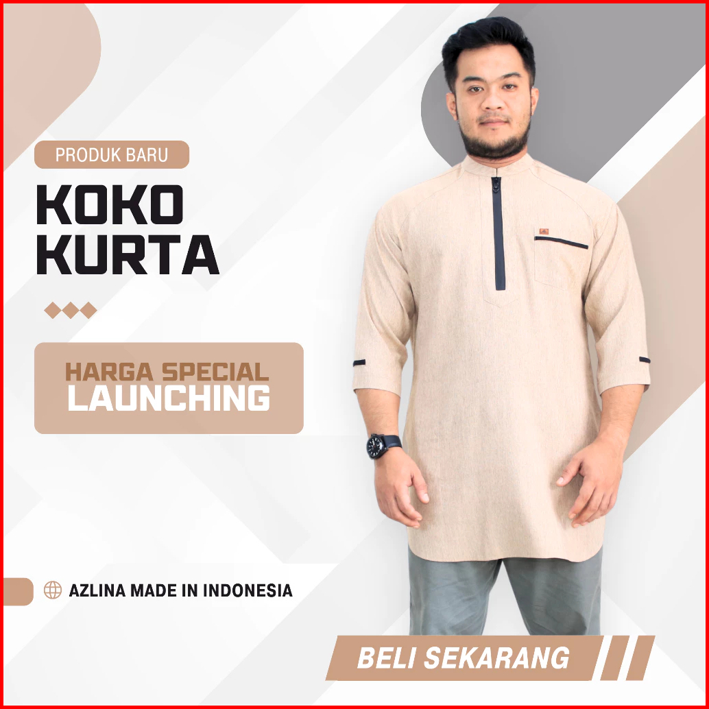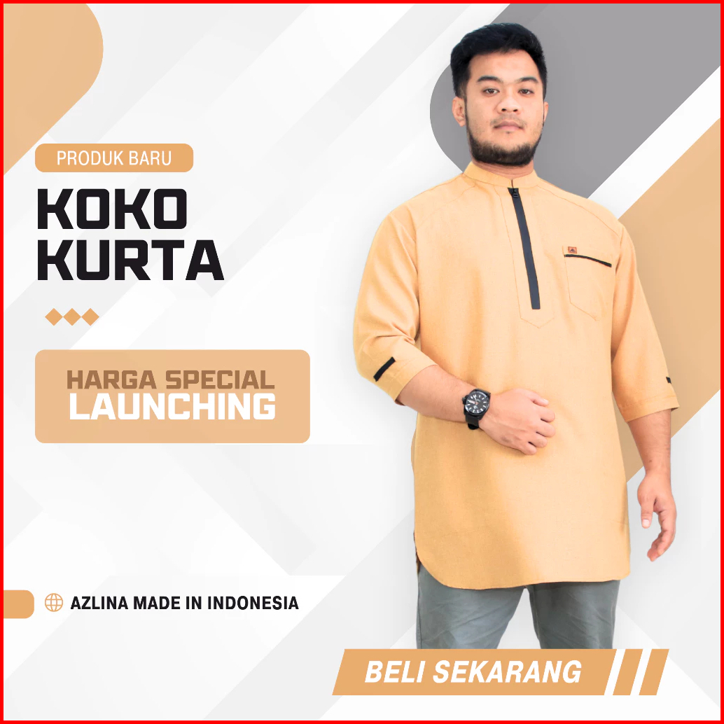 Koko Kurta Pria Dewasa Lengan 3 4 Bahan Katun Madinah Model Kurta Terbaru