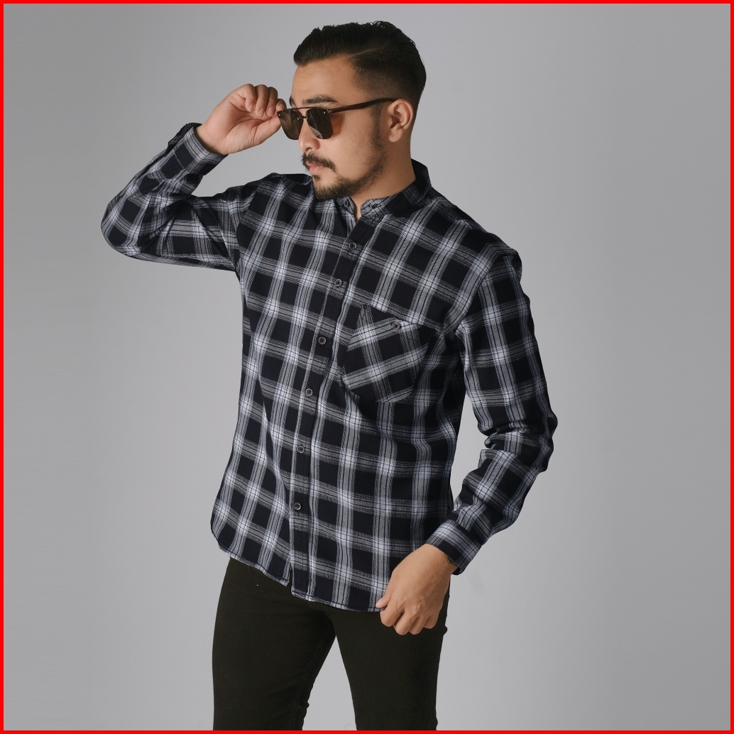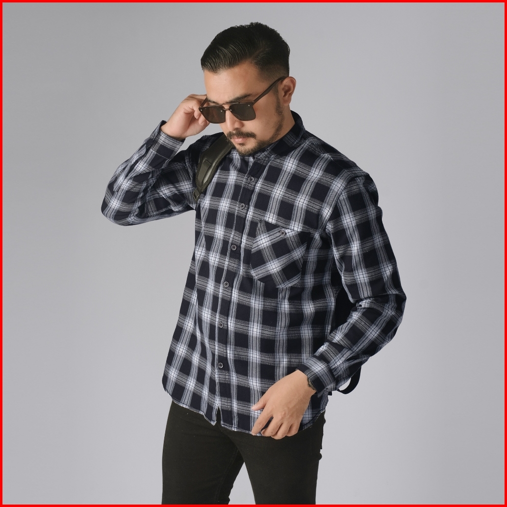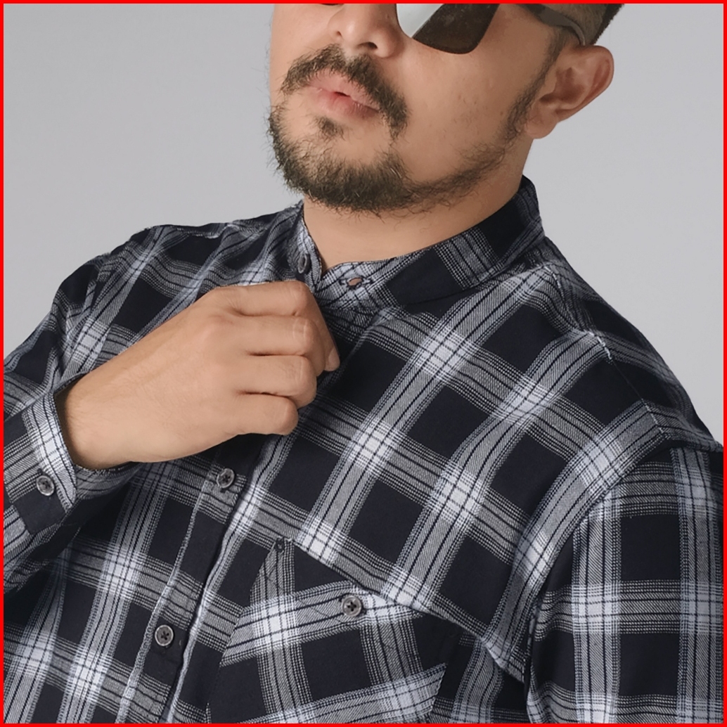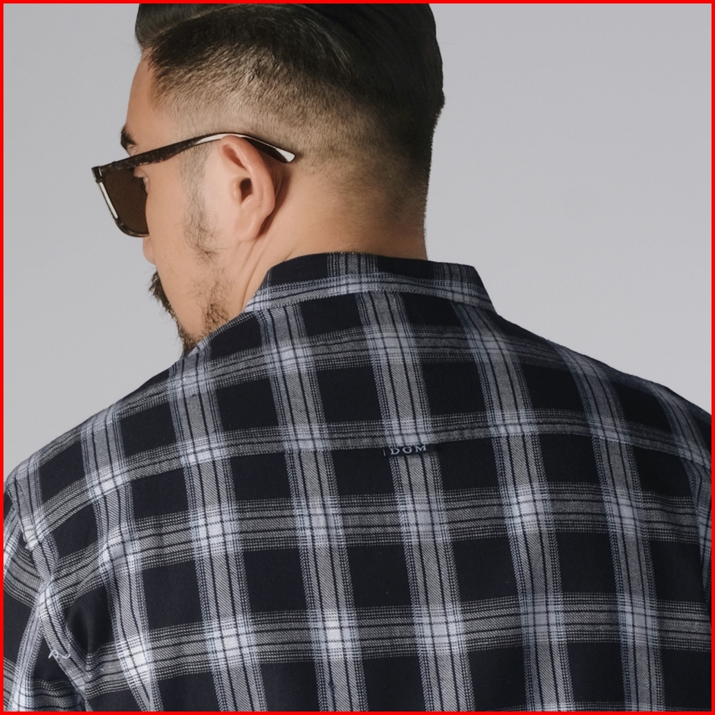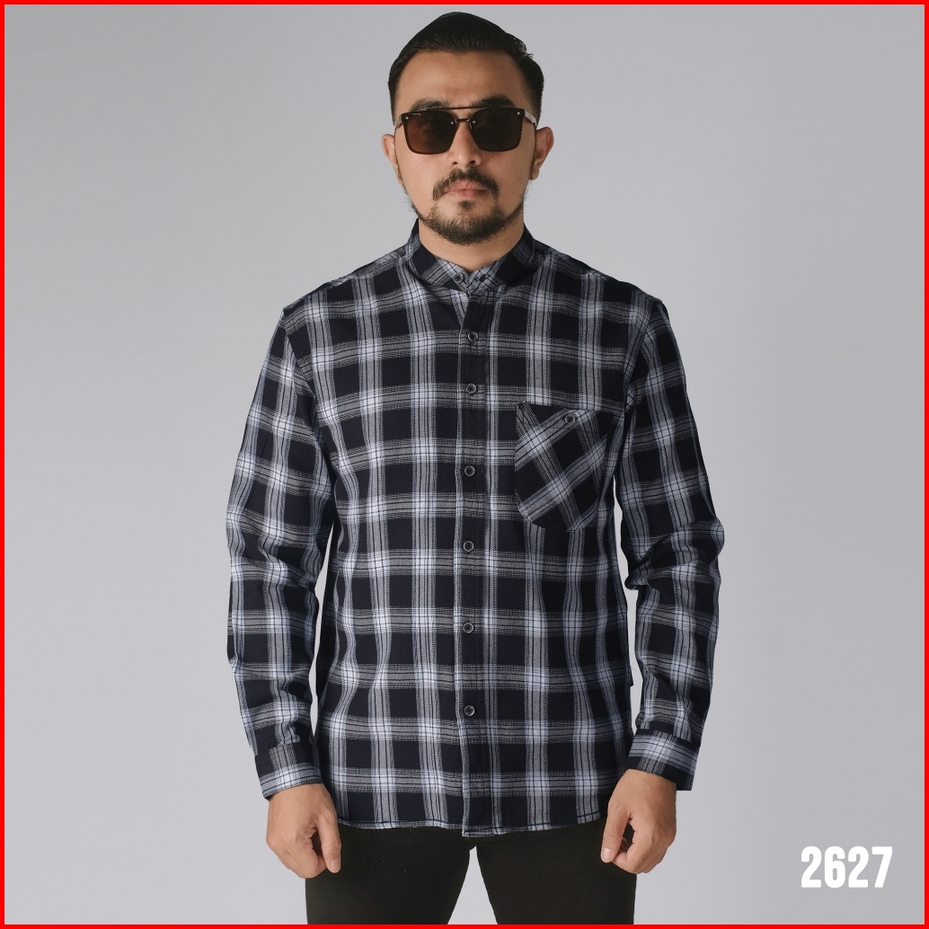 Dgm Kemeja Pria Flanel Kerah Sanghai Koko Lengan Panjang Premium Kemeja Koko Hitam Abu 2627