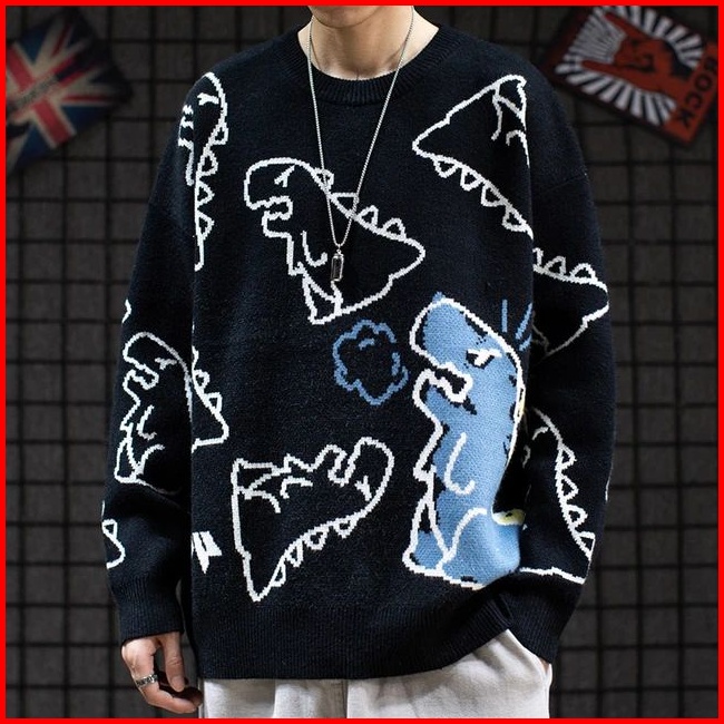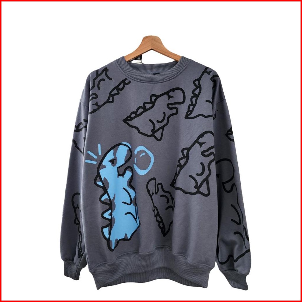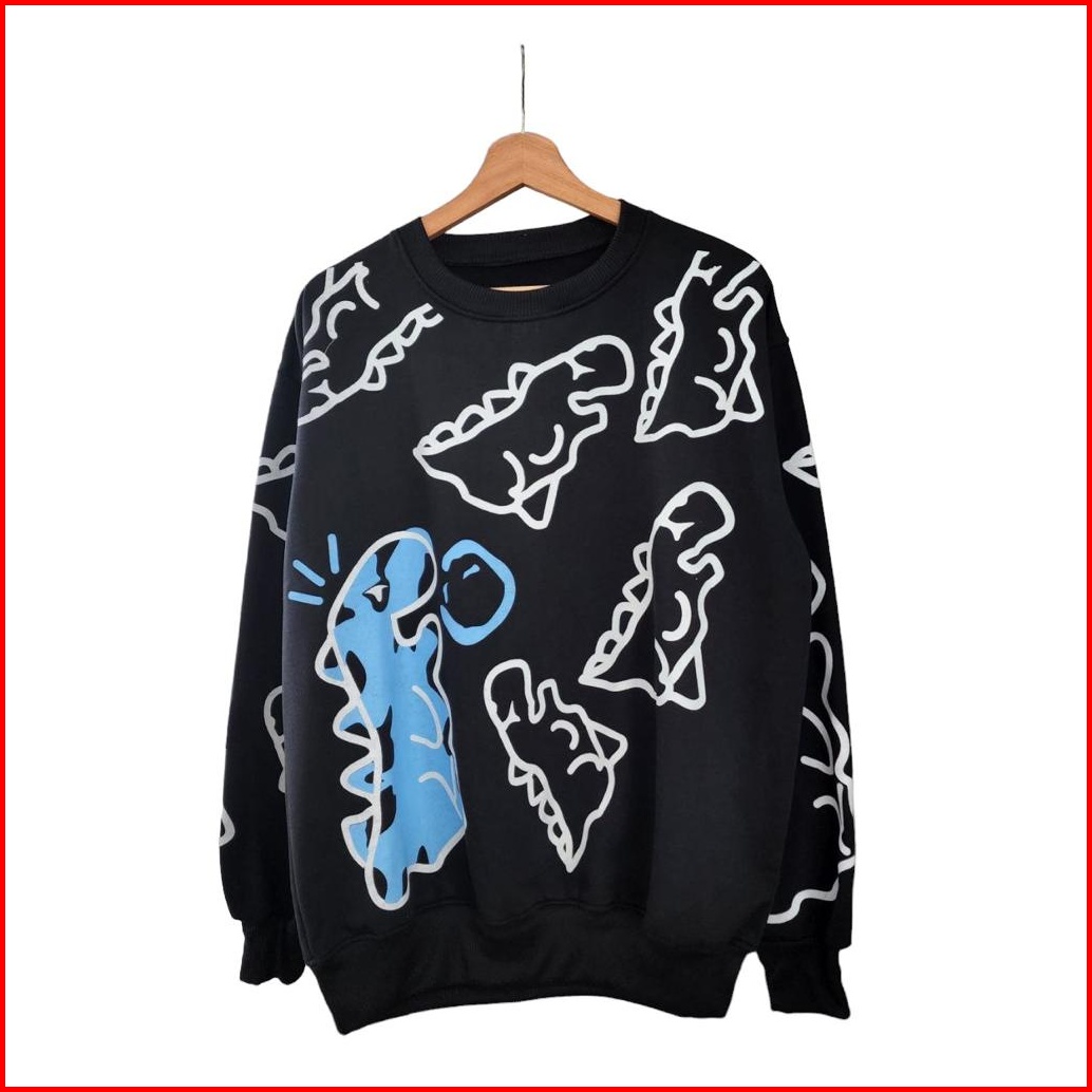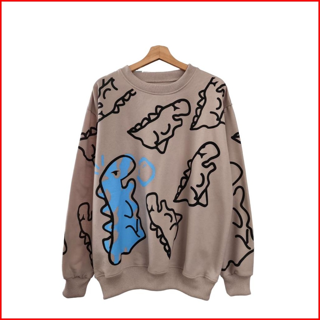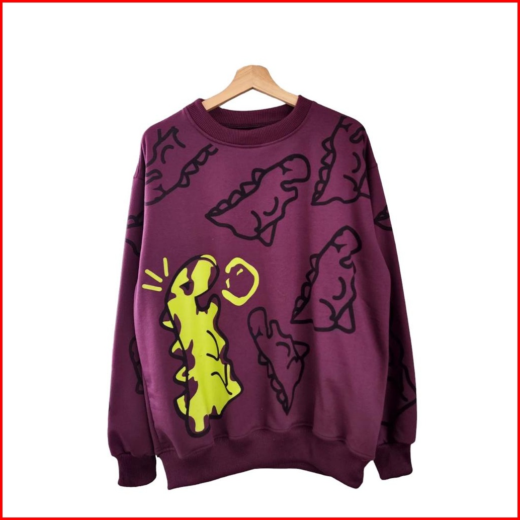 Sweatshirt Oversize Unisex Crayon Dino - Sweater Karakter Lucu Ukuran Oversize