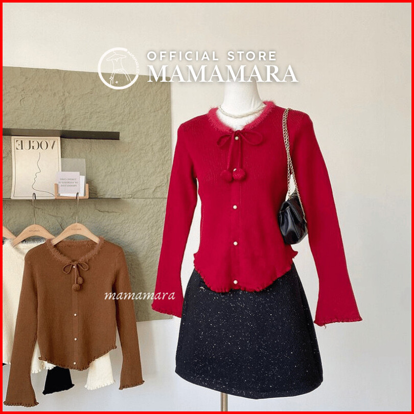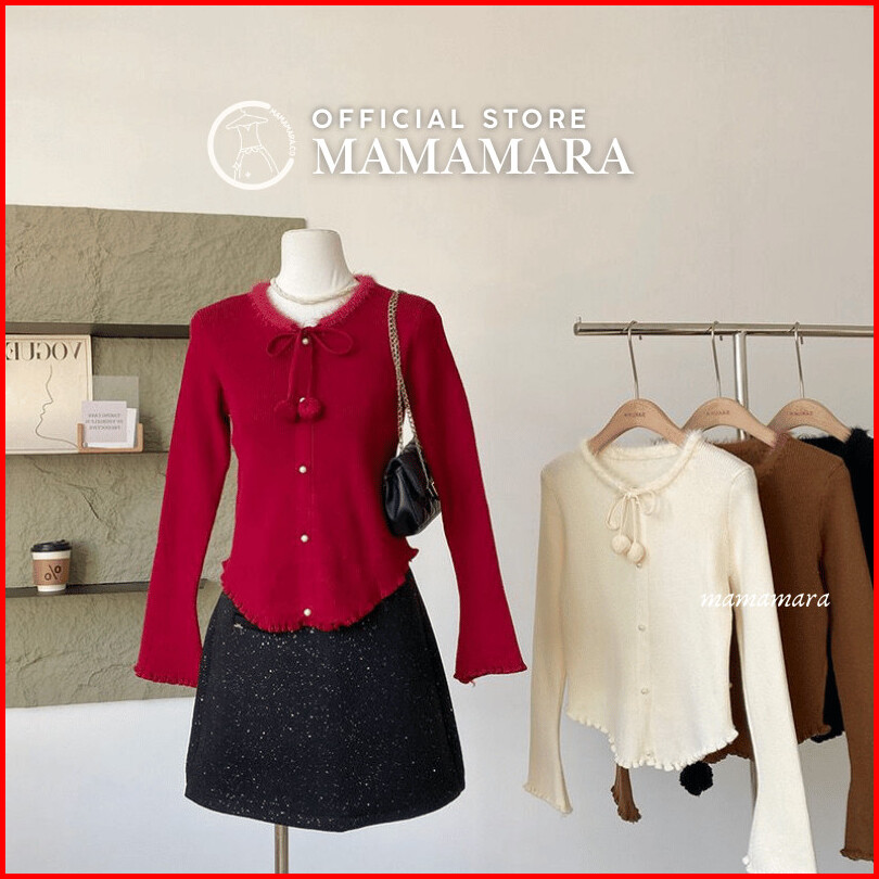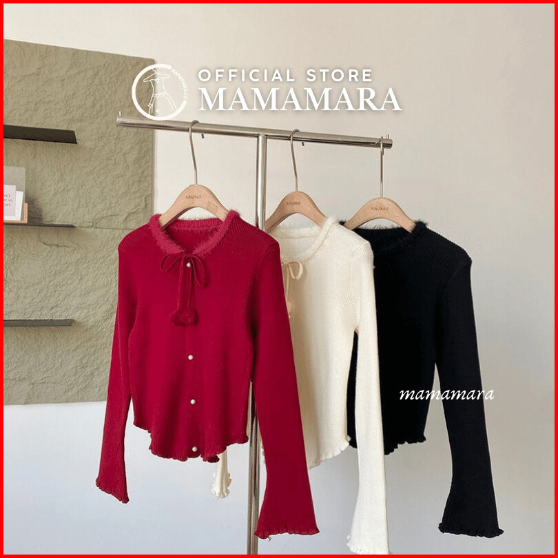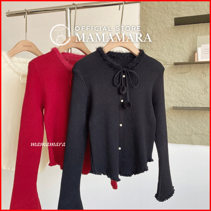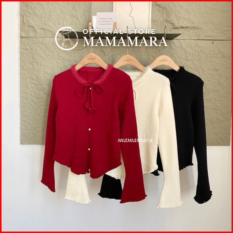Mamamara - Atasan Wanita Blouse Rajut Knitwear Adem Simple Imut Tali Bola Cute