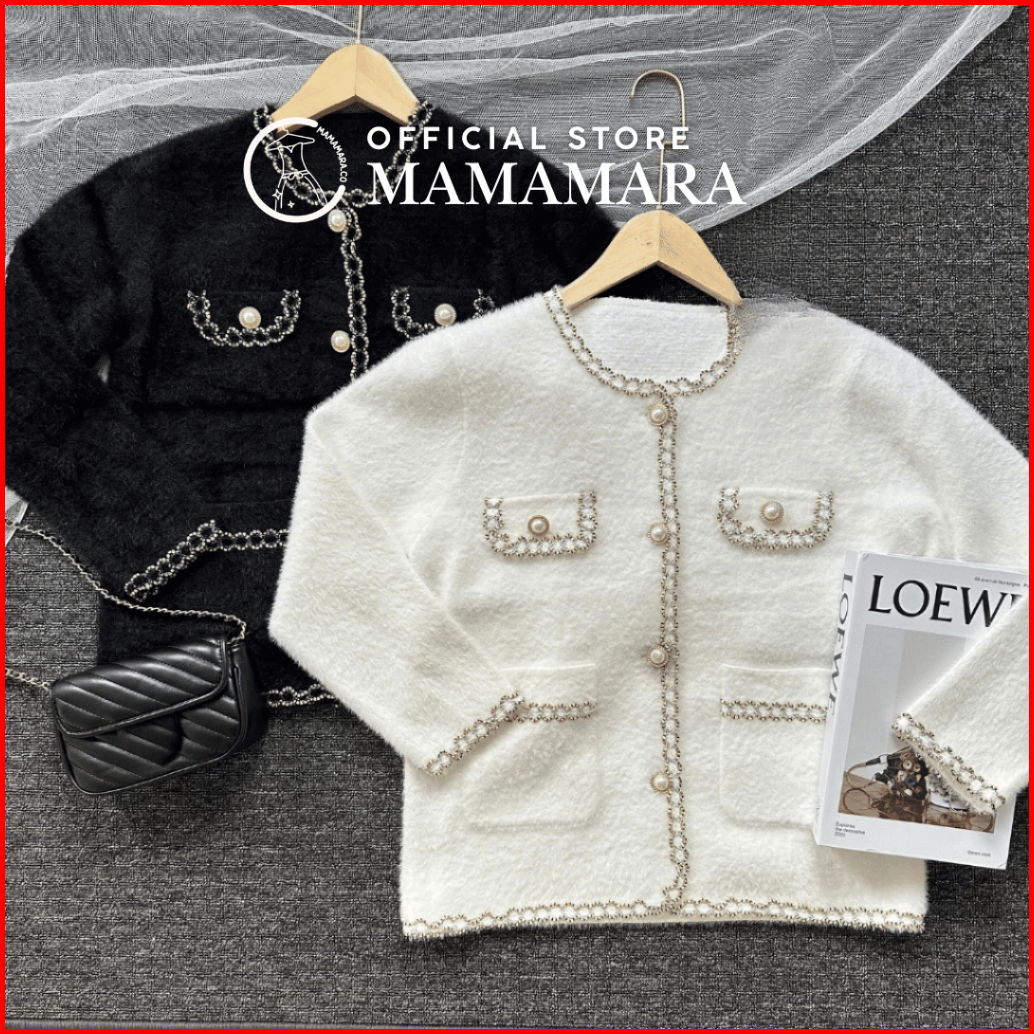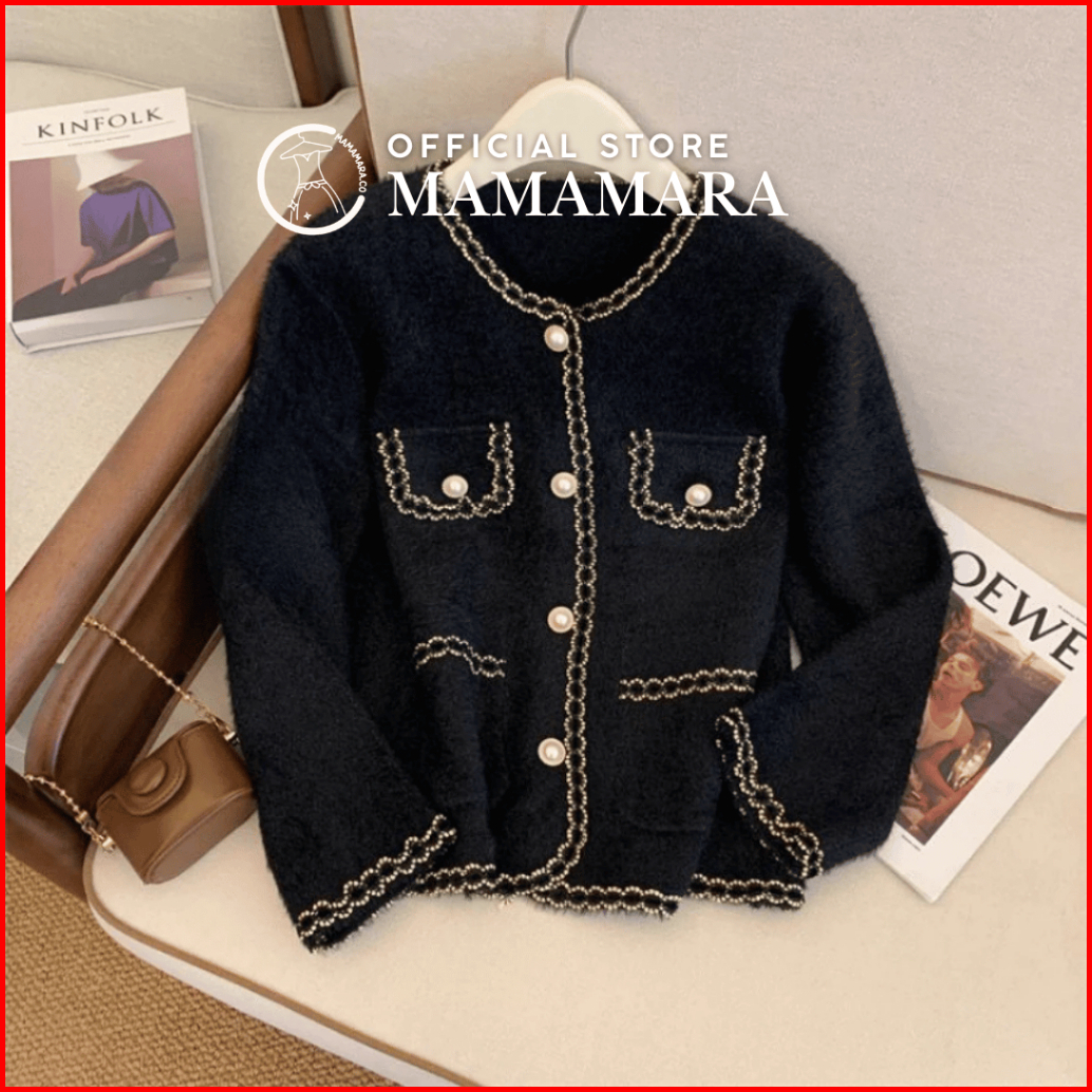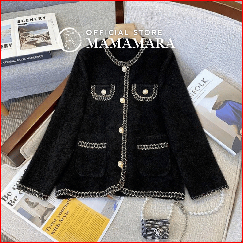 Mamamara - Blazer Tweed Bkk Polos Garis Santai Wol Setrip Hitam Putih Katun