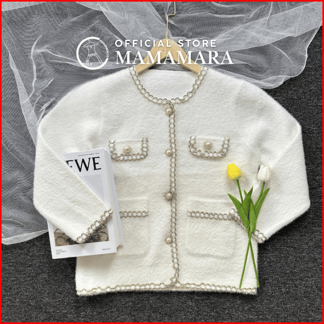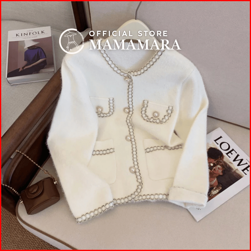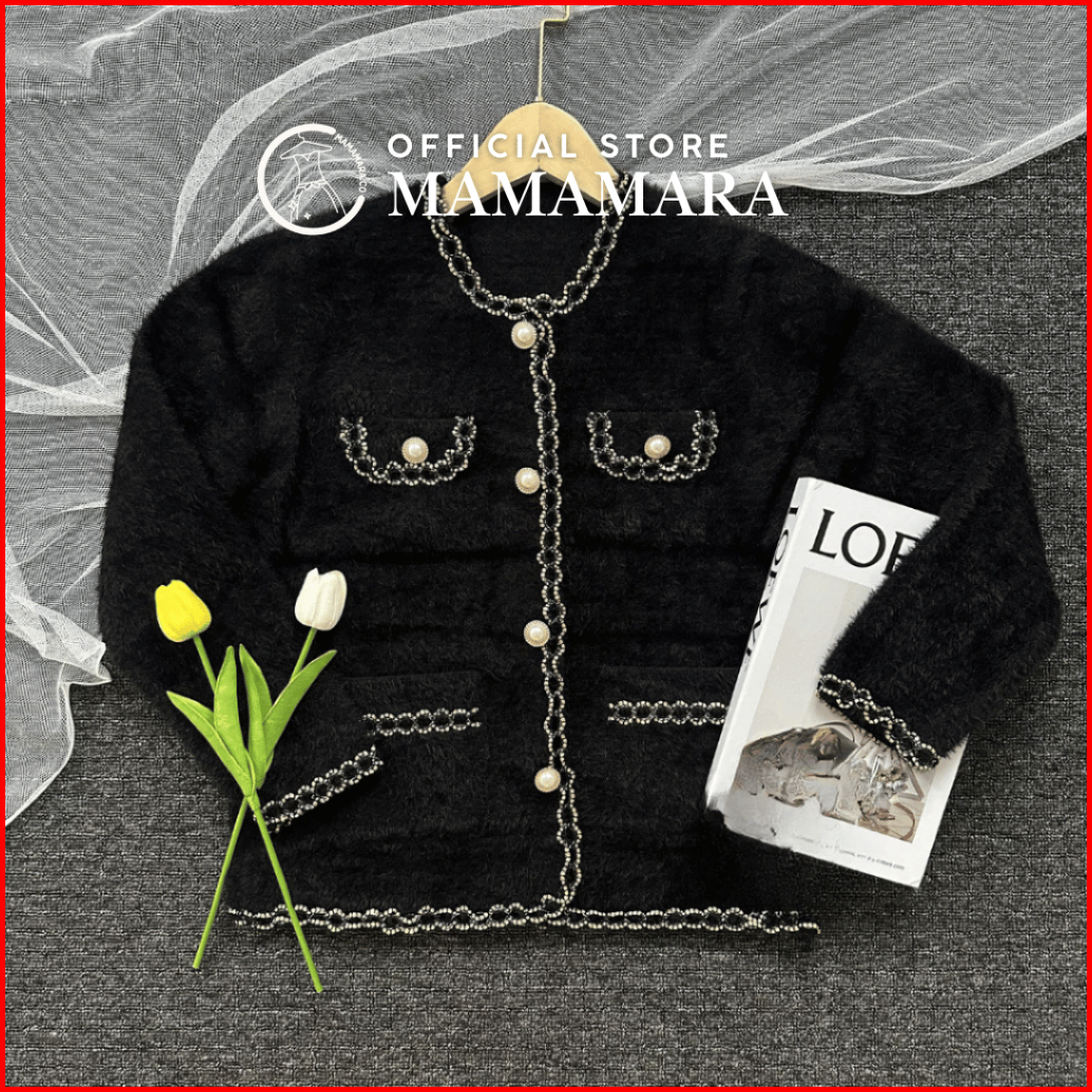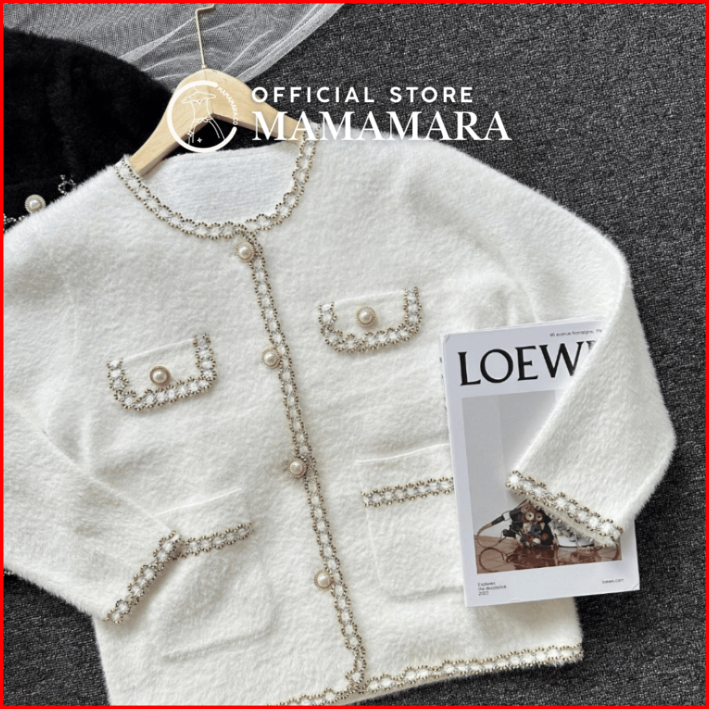 Mamamara - Blazer Tweed Bkk Polos Garis Santai Wol Setrip Hitam Putih Katun