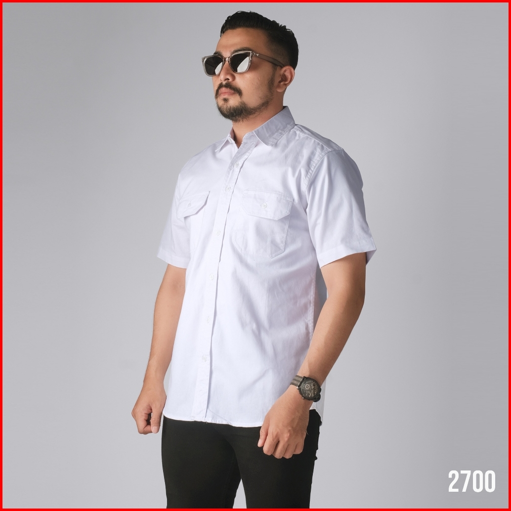 Dgm Kemeja Pria Polos Double Pocket Lengan Pendek Katun Twill 30s Premium Workshirt Kemeja Kerja Putih 2700
