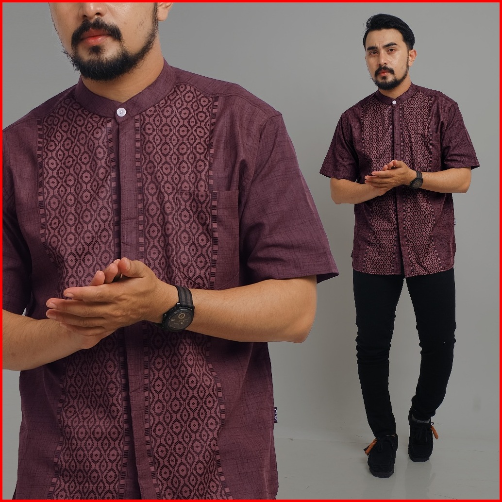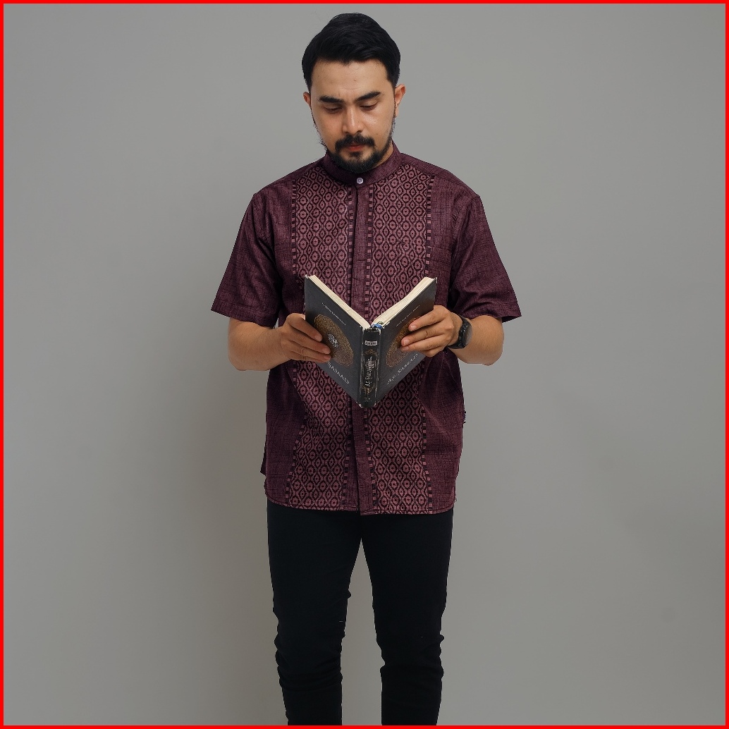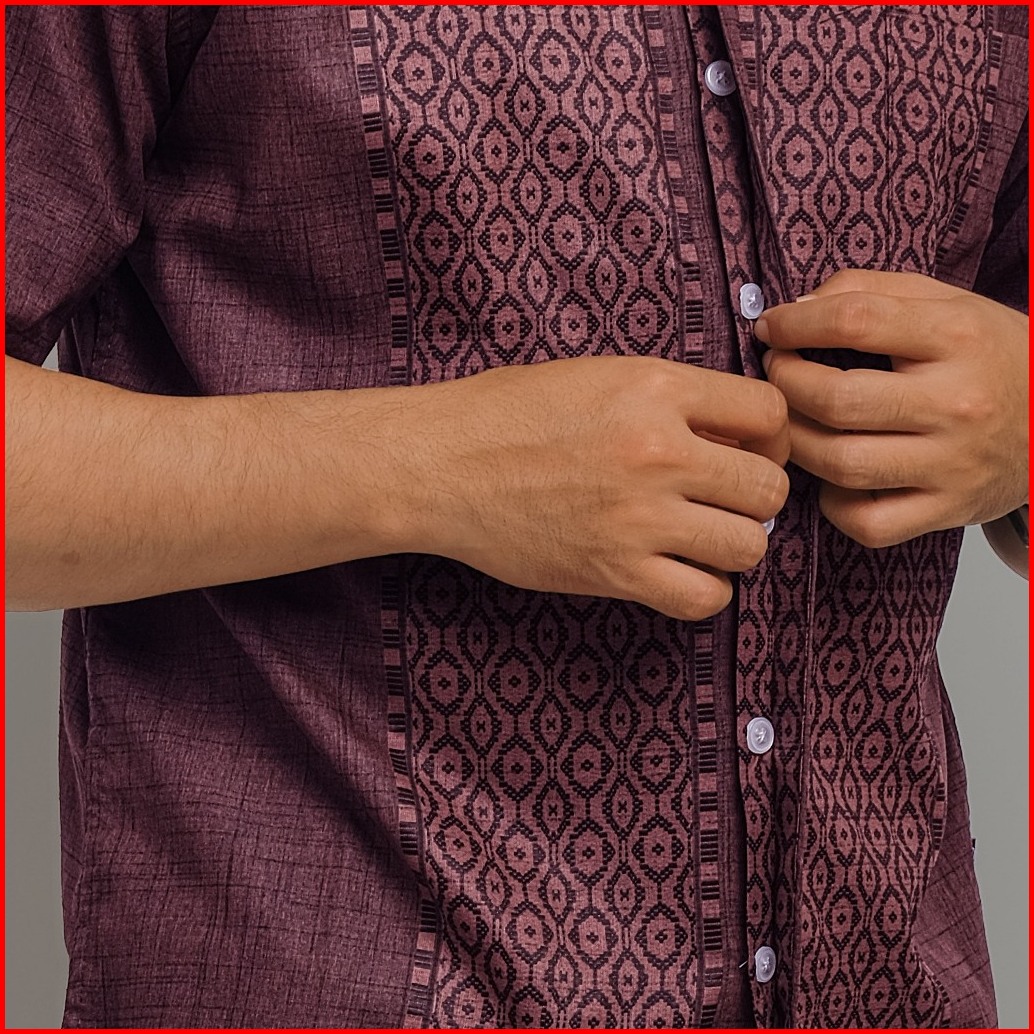 Dgm Kemeja Pria Koko Plum Bordir Lengan Pendek Motif Argyle Lingkaran 2391