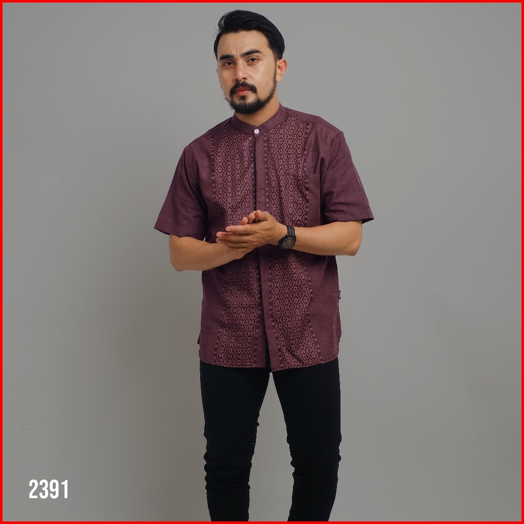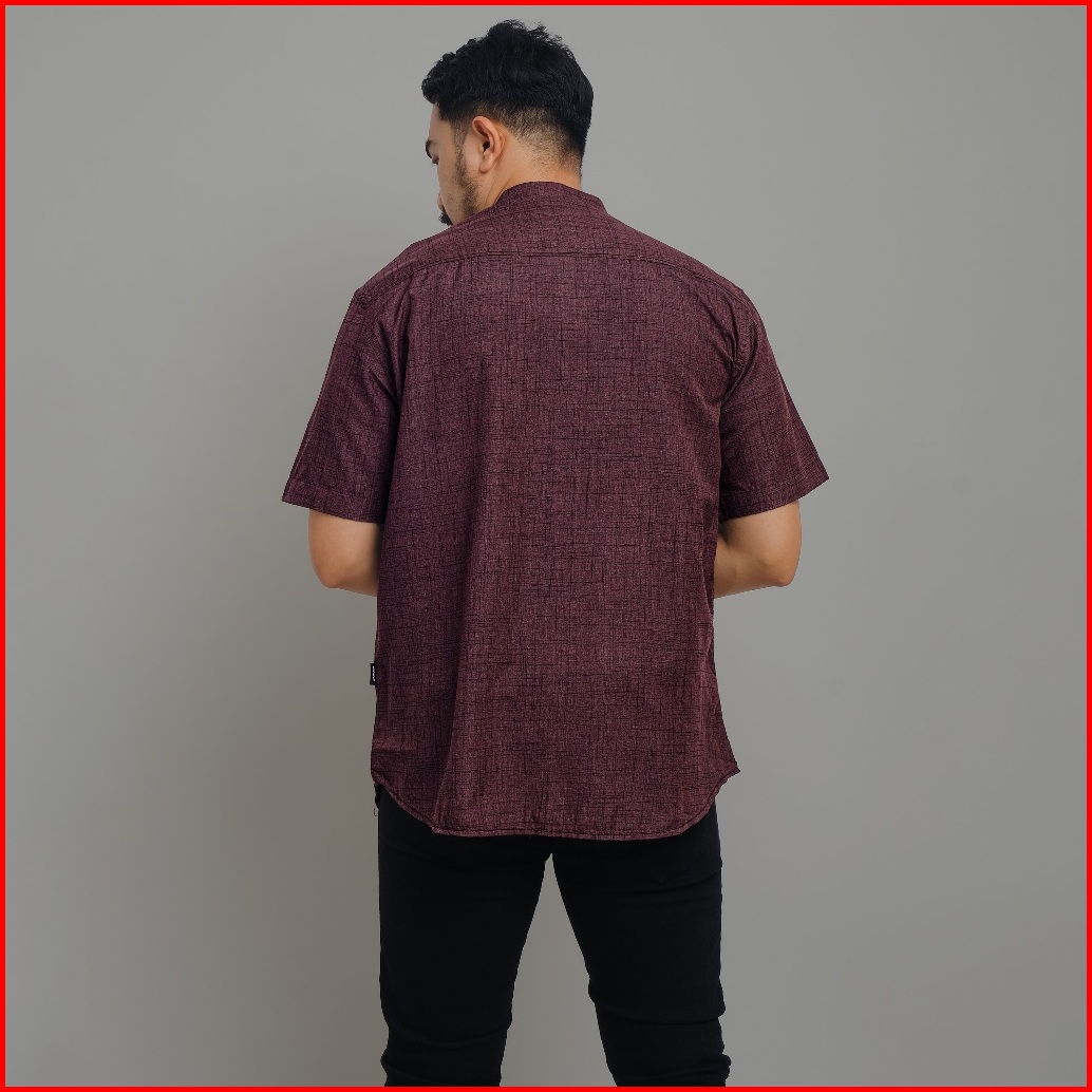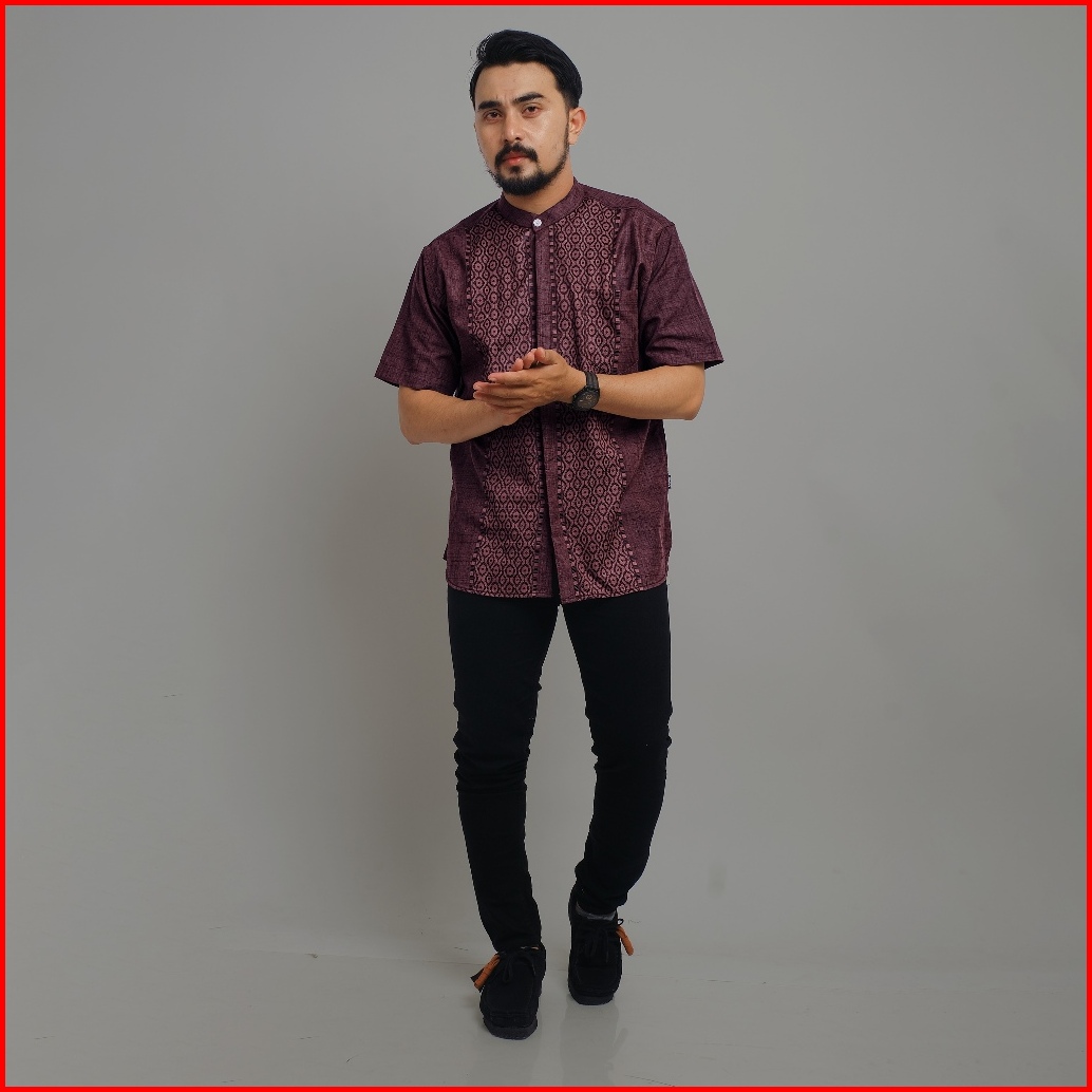 Dgm Kemeja Pria Koko Plum Bordir Lengan Pendek Motif Argyle Lingkaran 2391