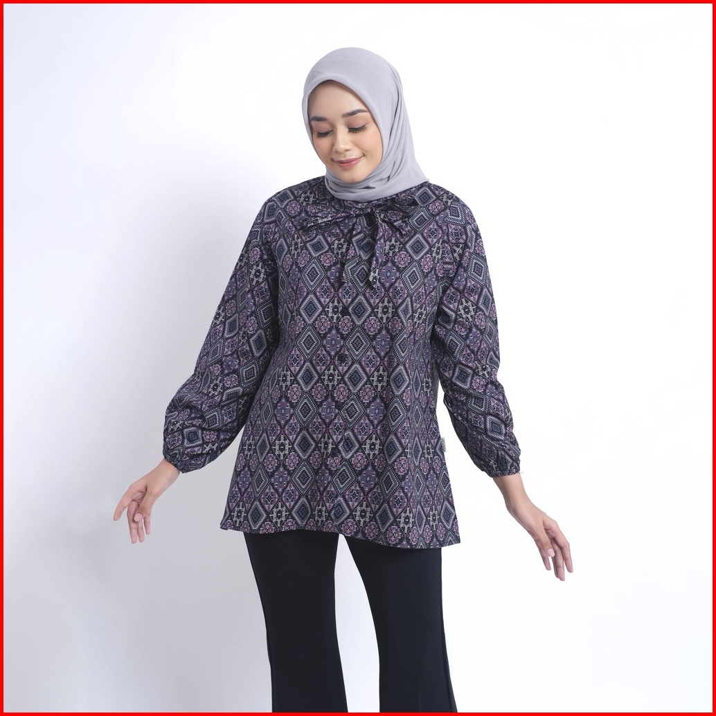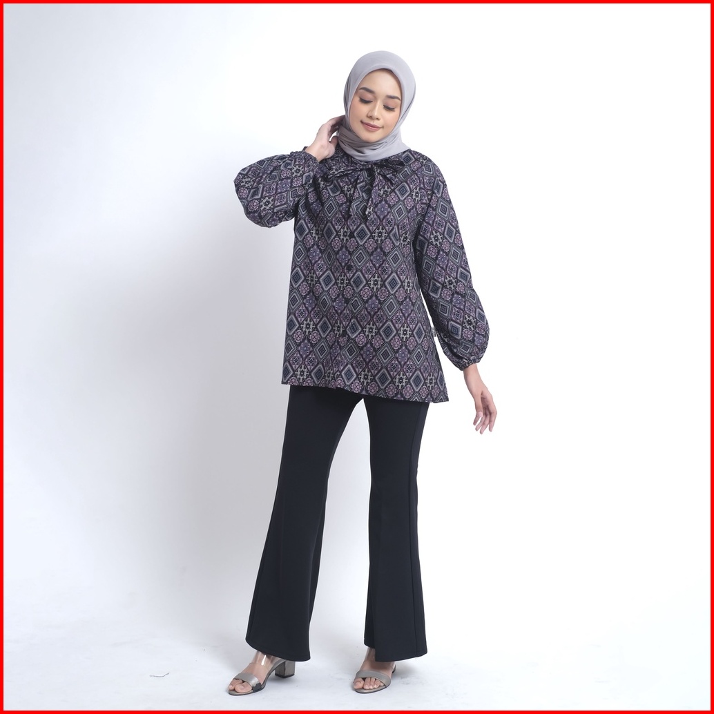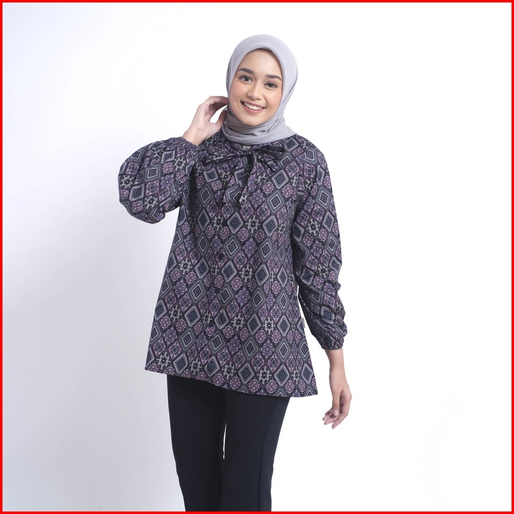 Dgm Kemeja Batik Wanita Lengan Panjang Casual Diamond Hitam B 001