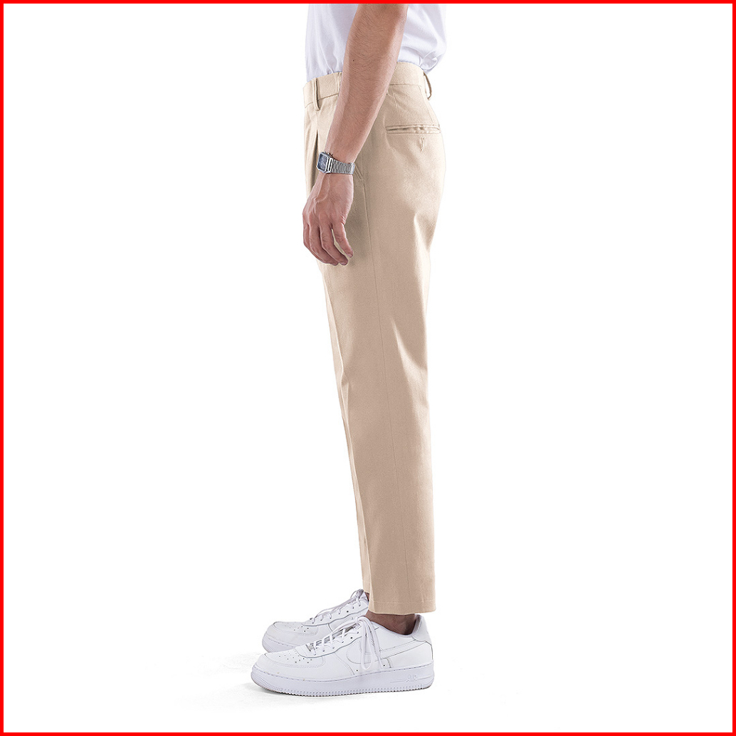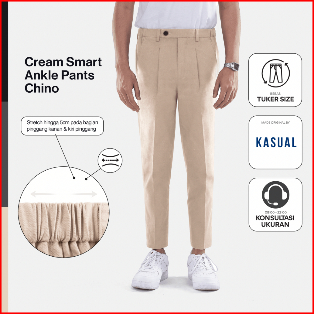 Kasual Celana Cream Smart Waist Ankle Chinos Stretch Pria