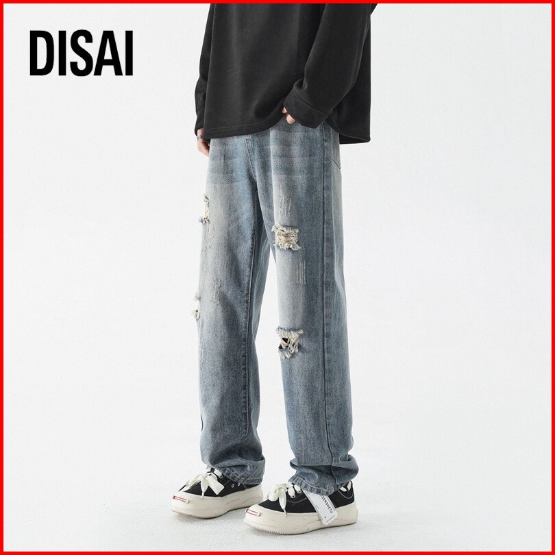 Disai - Celana Jeans Sobek Pria Celana Denim Panjang Robek Ripped Cowok Versi Korea Pants K501a