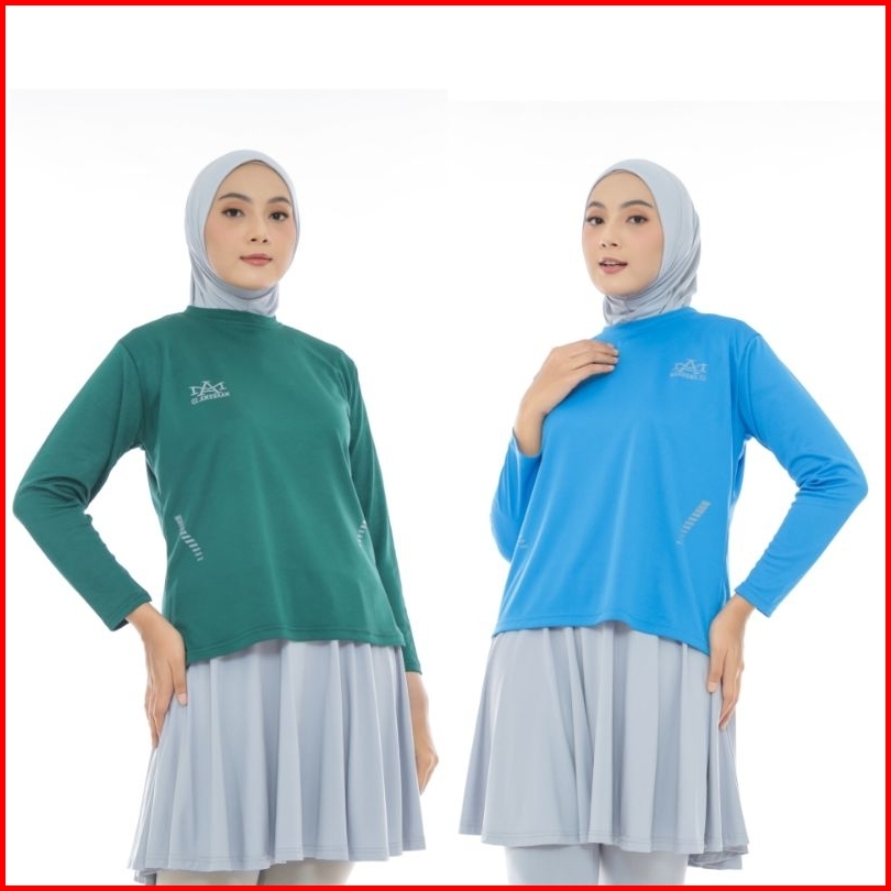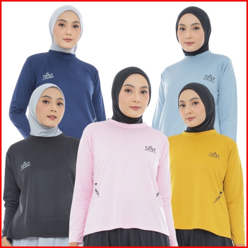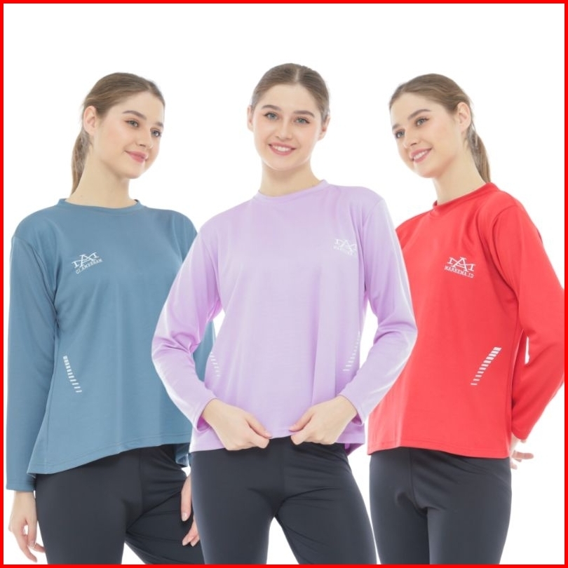 Atasan Baju Olahraga Wanita Lengan Panjang Kaos Dryfit Muslimah Lari Gym Bulutangkis Bersepeda