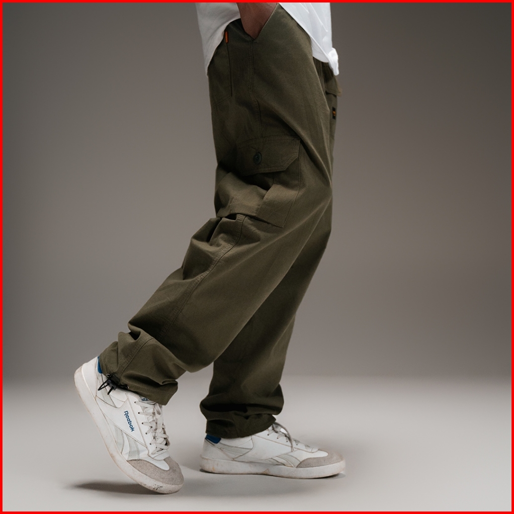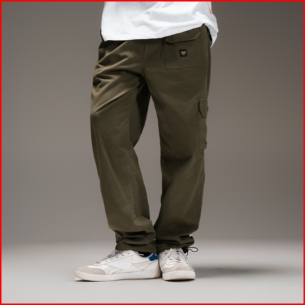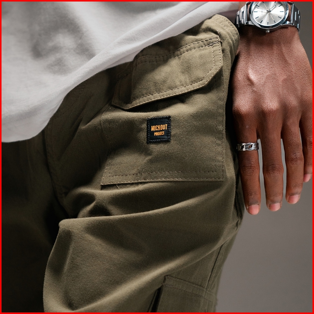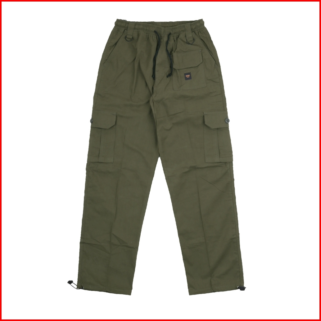 Mickout Hodge Cargo Pants - Celana Panjang Canvas Cotton Relaxed Fit Pria Unisex - Army