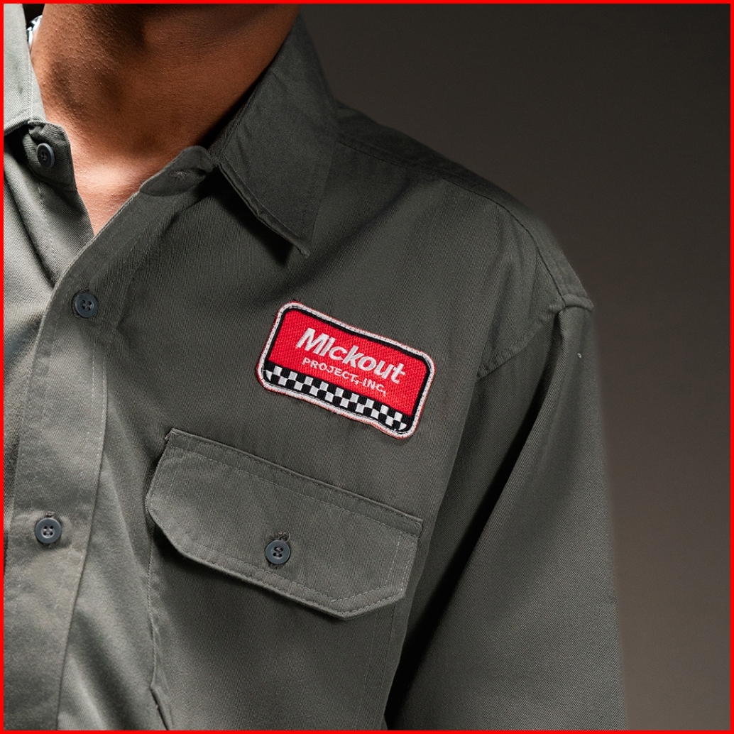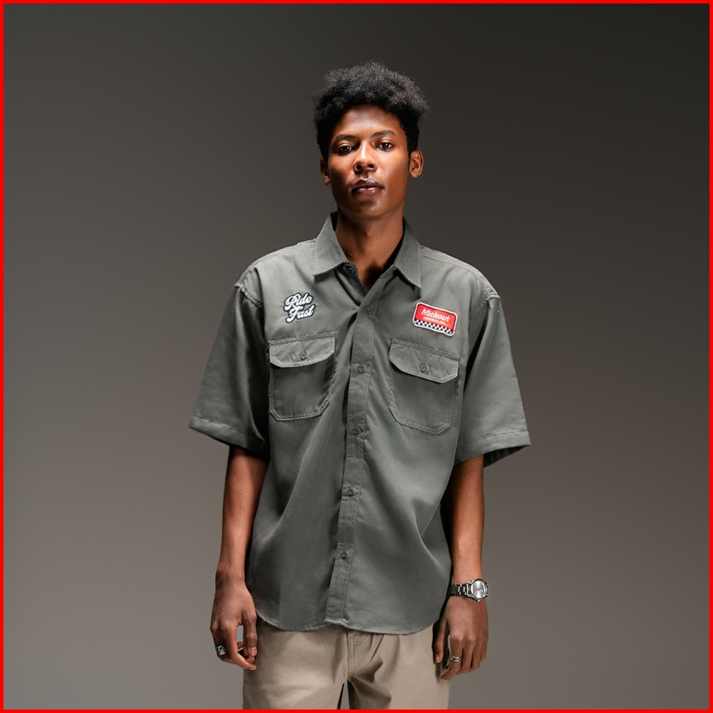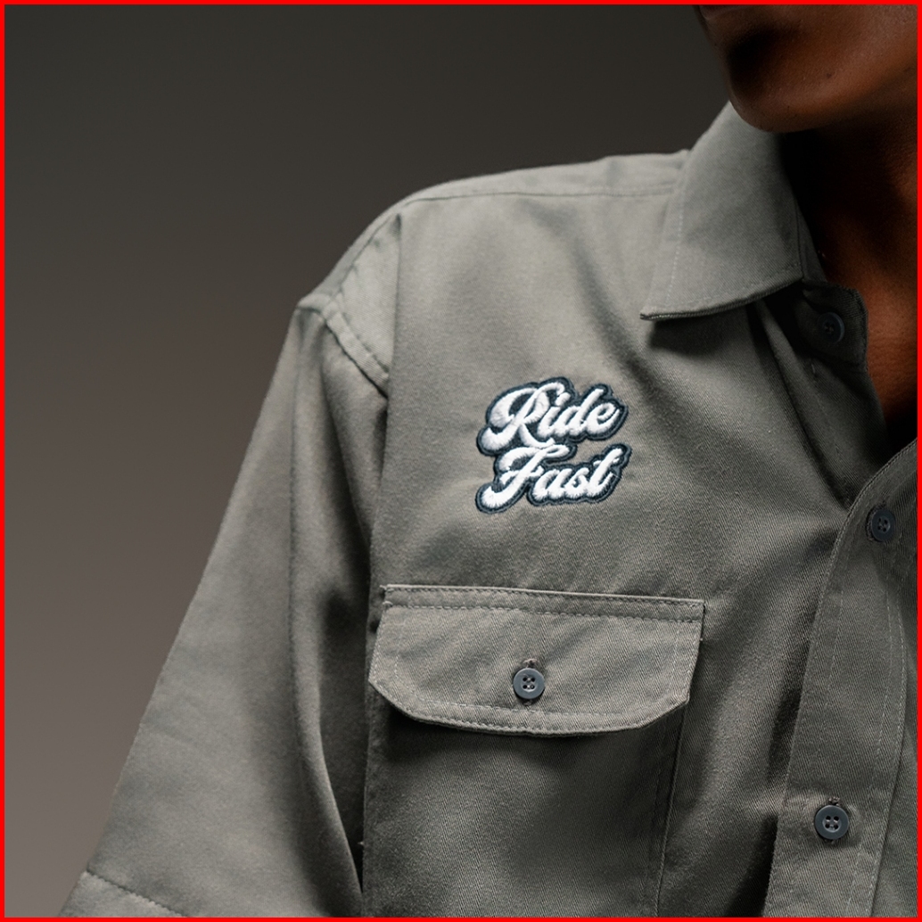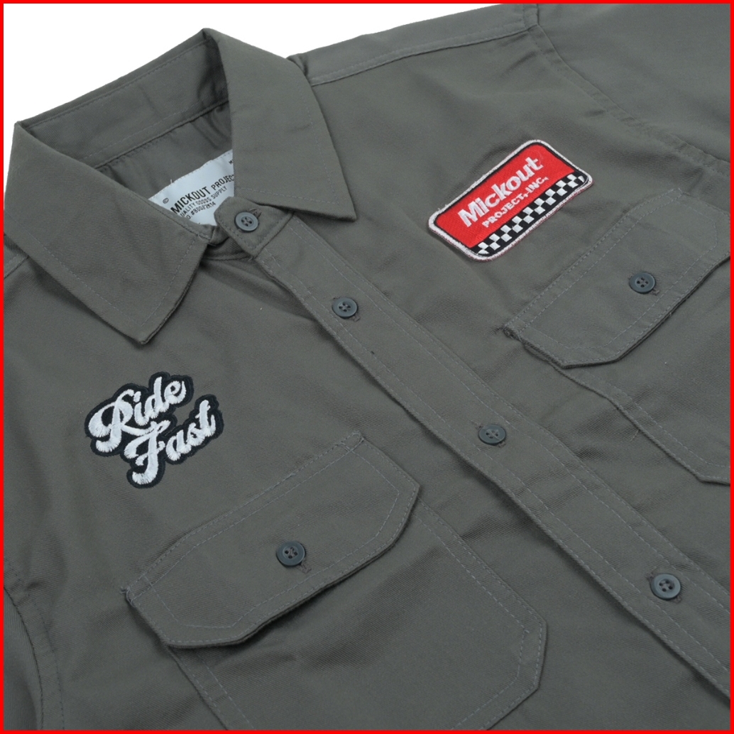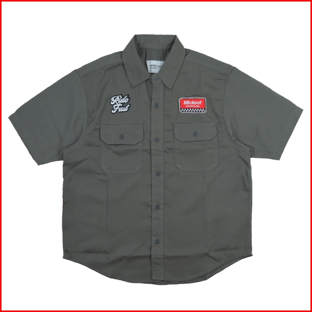 Mickout Ride Fast Workshirt - Kemeja Kerja Bordir Pria Katun Drill Relaxed Fit Lengan Pendek - Grey