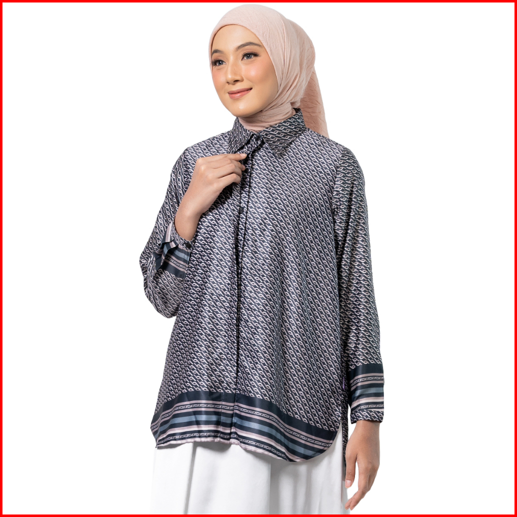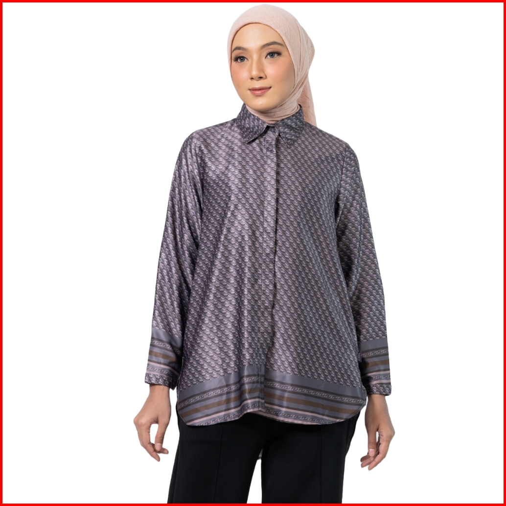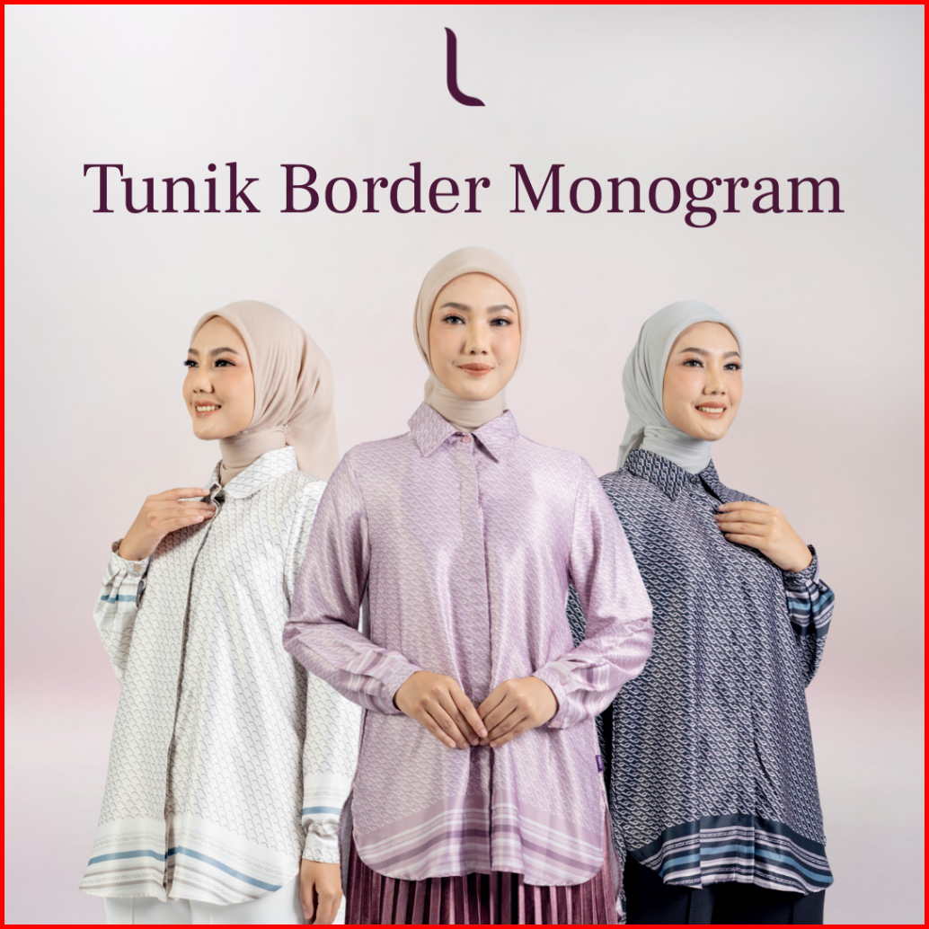 Elzatta Atasan Wanita Tunik Motif Border Monogram