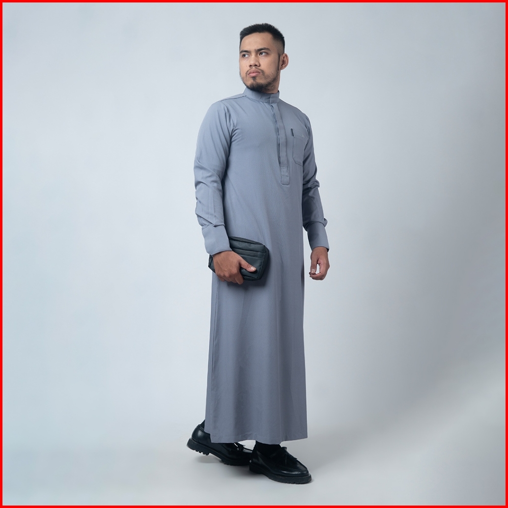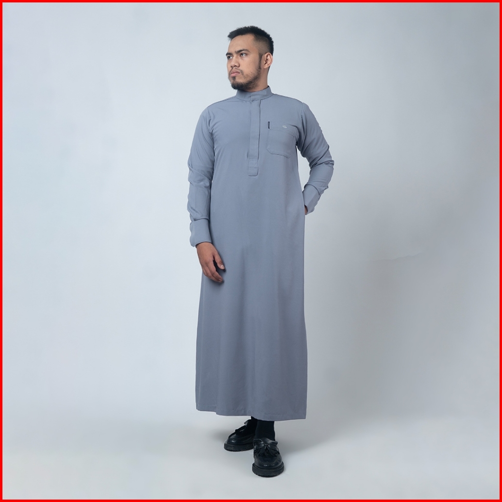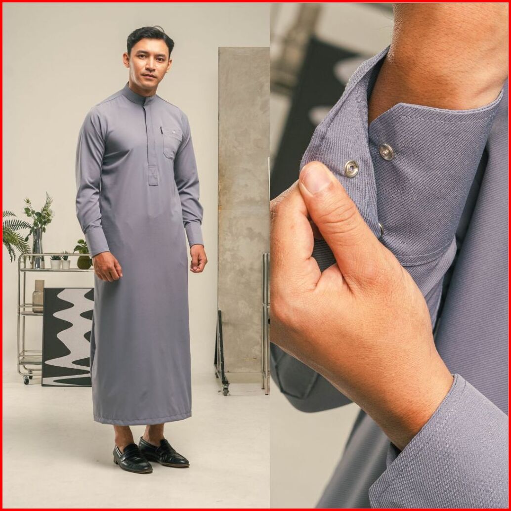 Khoirummah Jubah Sultan Jubah Polos Sultan Gamis Pria Dewasa Lengan Panjang Light Grey