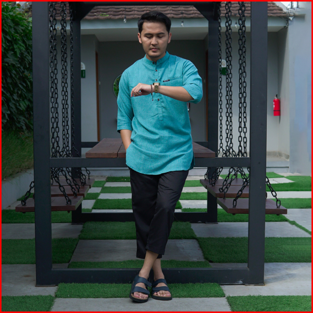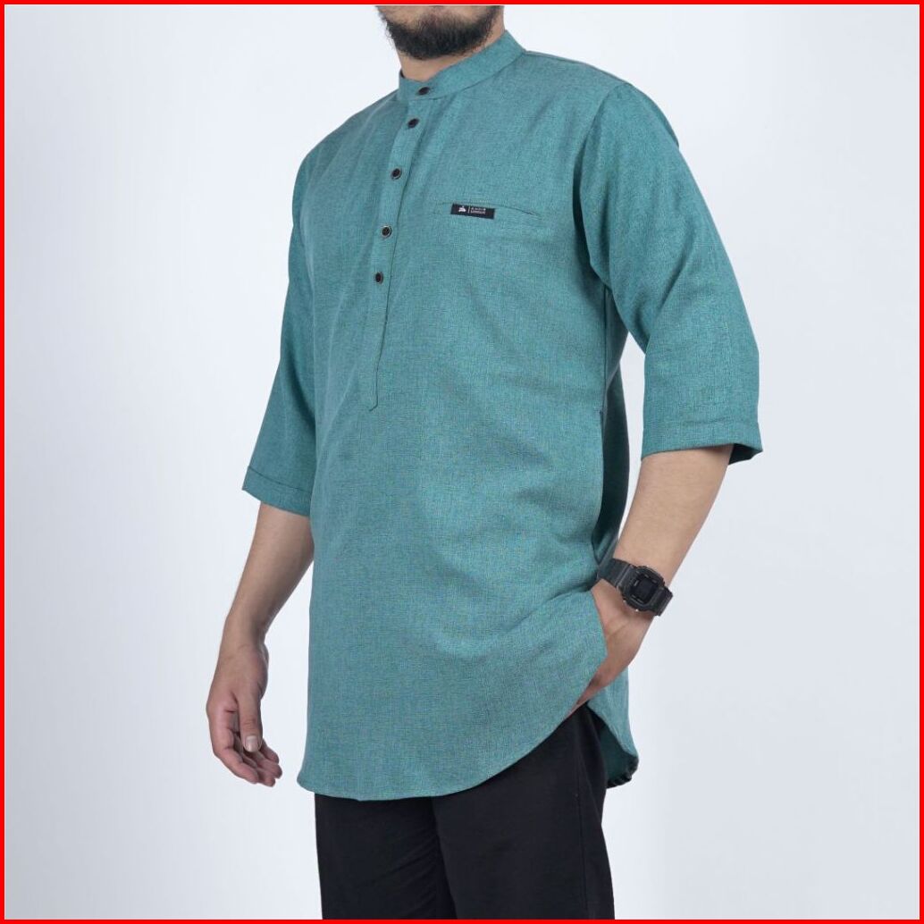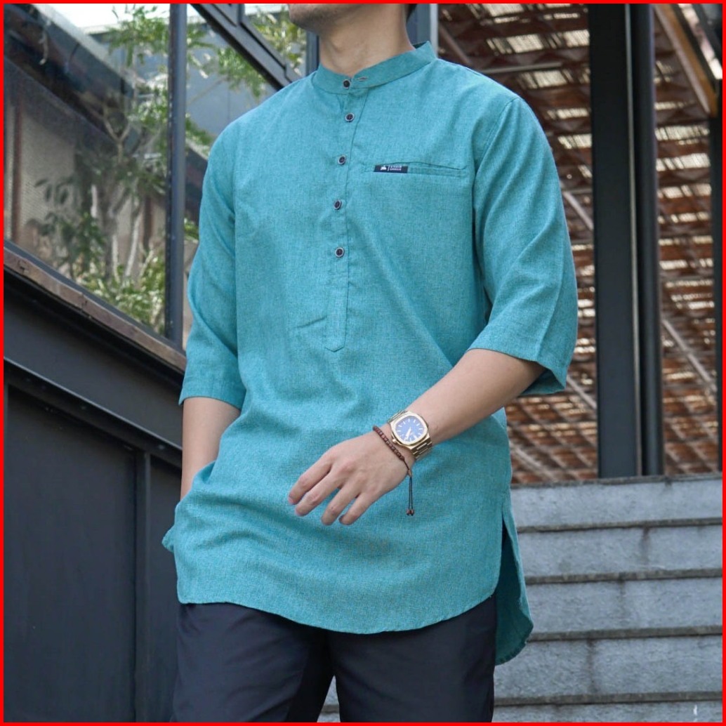 Khoirummah Kurta Madinah Dewasa Baju Muslim Pria Koko Kurta Polos Lengan 3 4 Tosca