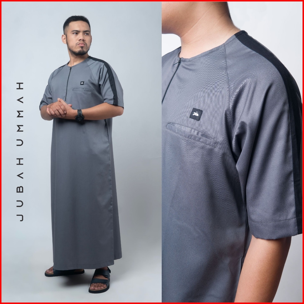 Khoirummah Jubah Ummah Dewasa Gamis Polos Dewasa Tangan Pendek Dark Grey