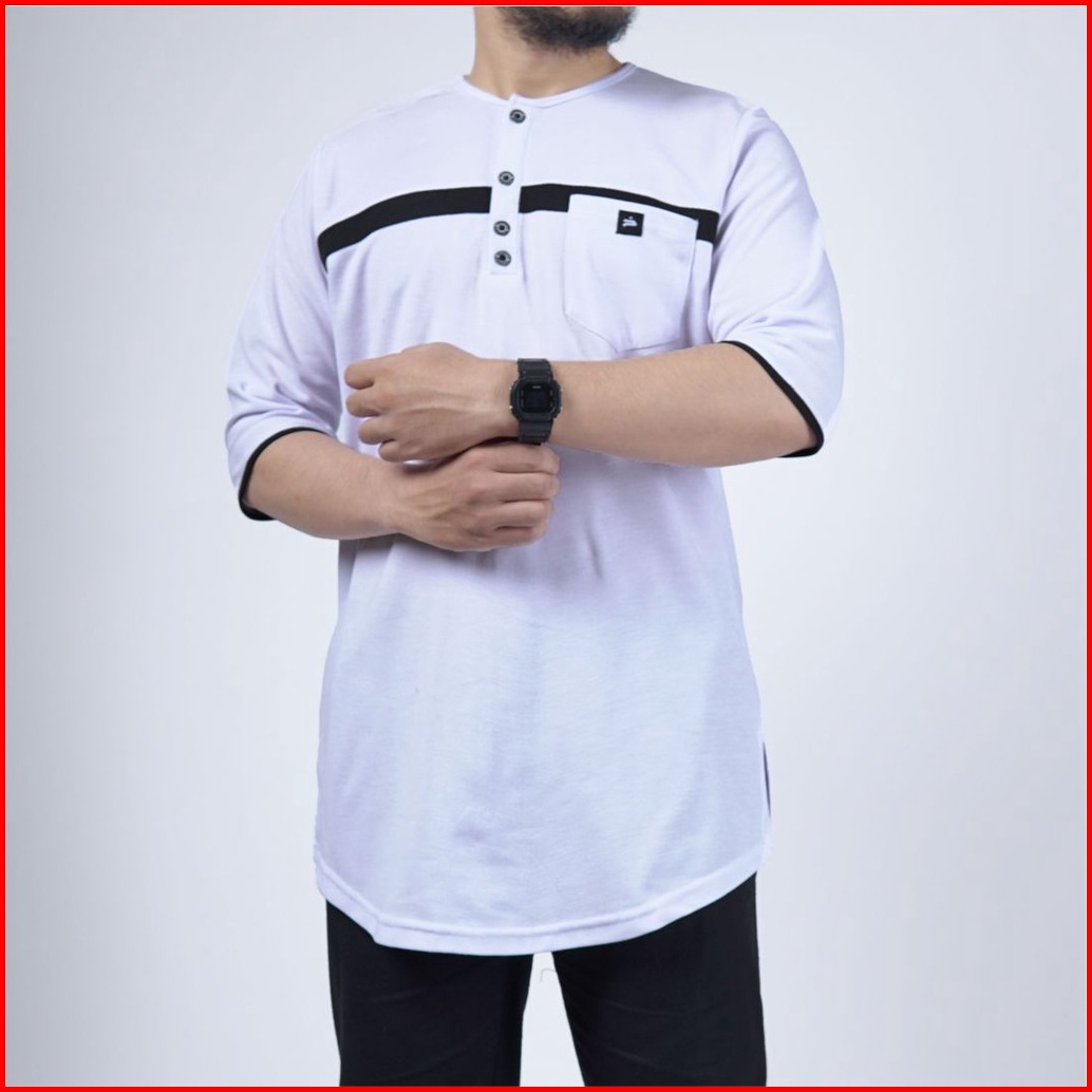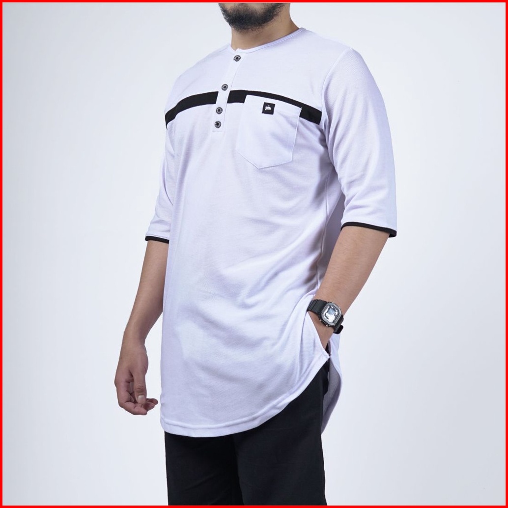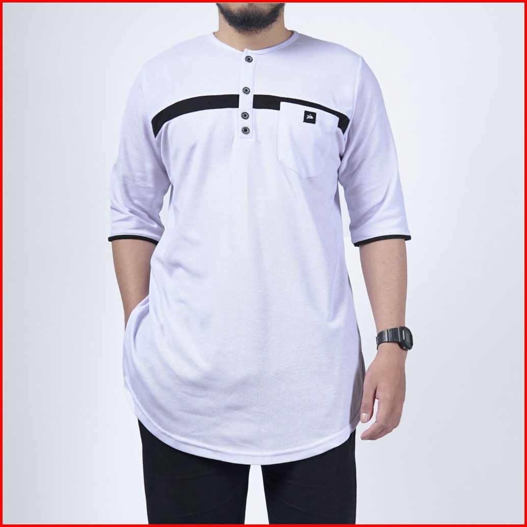 Khoirummah Kurta Umair Dewasa Koko Pria Dewasa Kurta Pakistan Polos Lengan 3 4 White