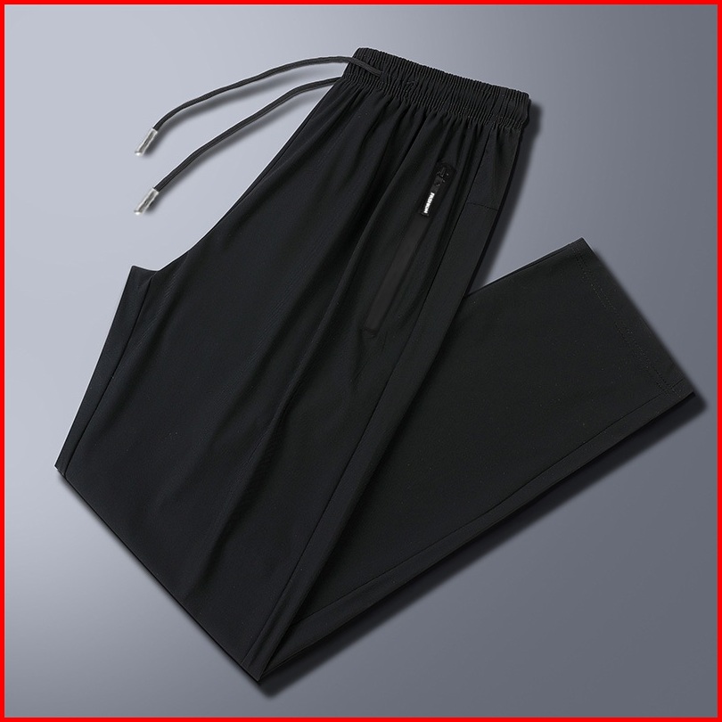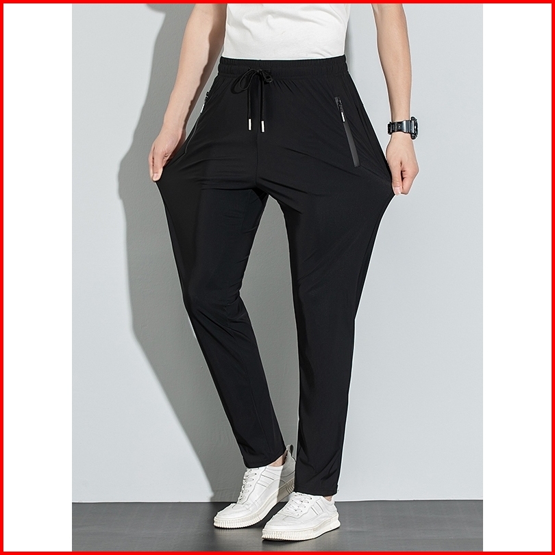 Disai - Celana Pria Saku Ritsleting Unisex Joggers Cepat Kering Panjang Ice Silk Elastisitas K9001